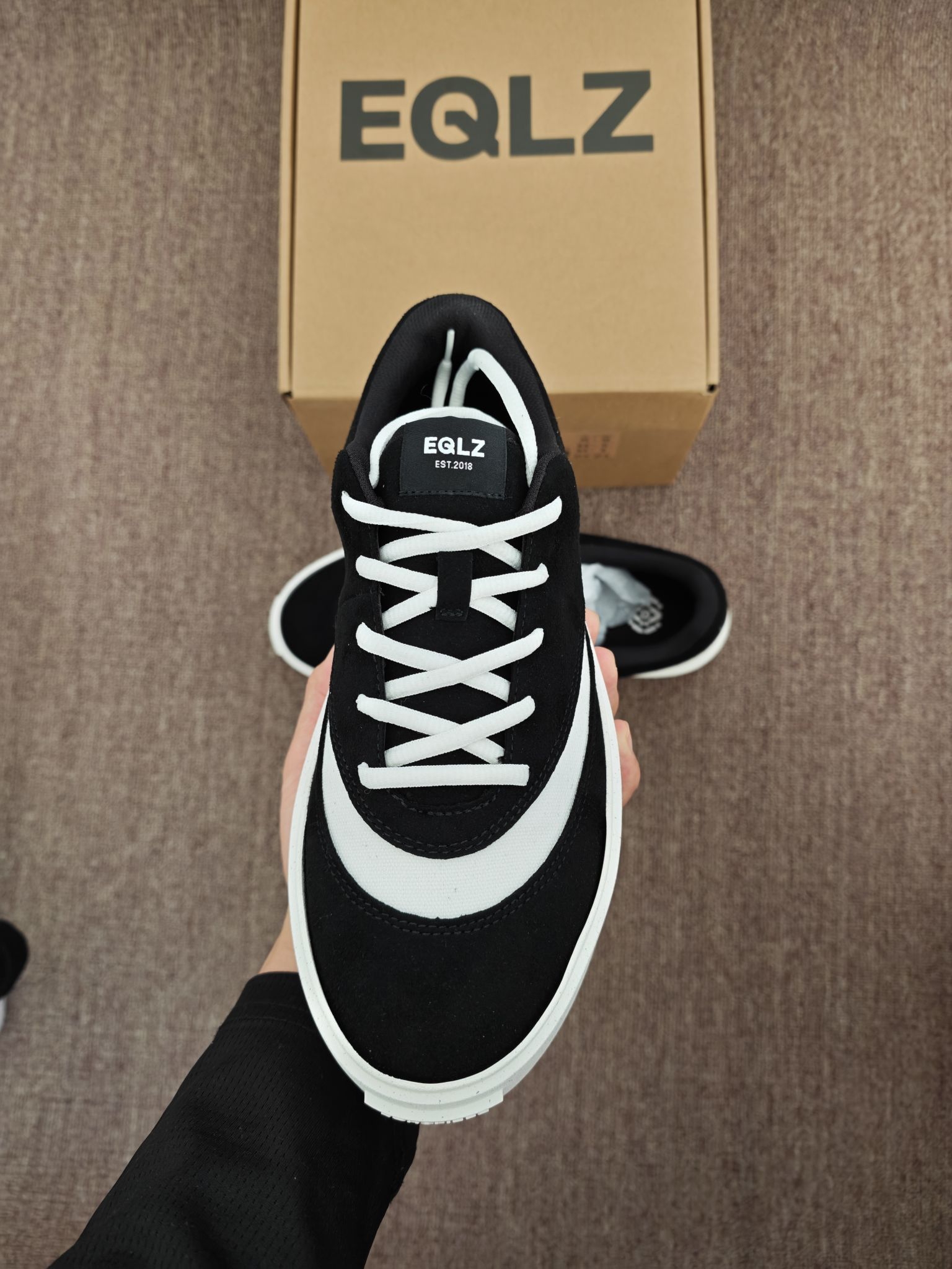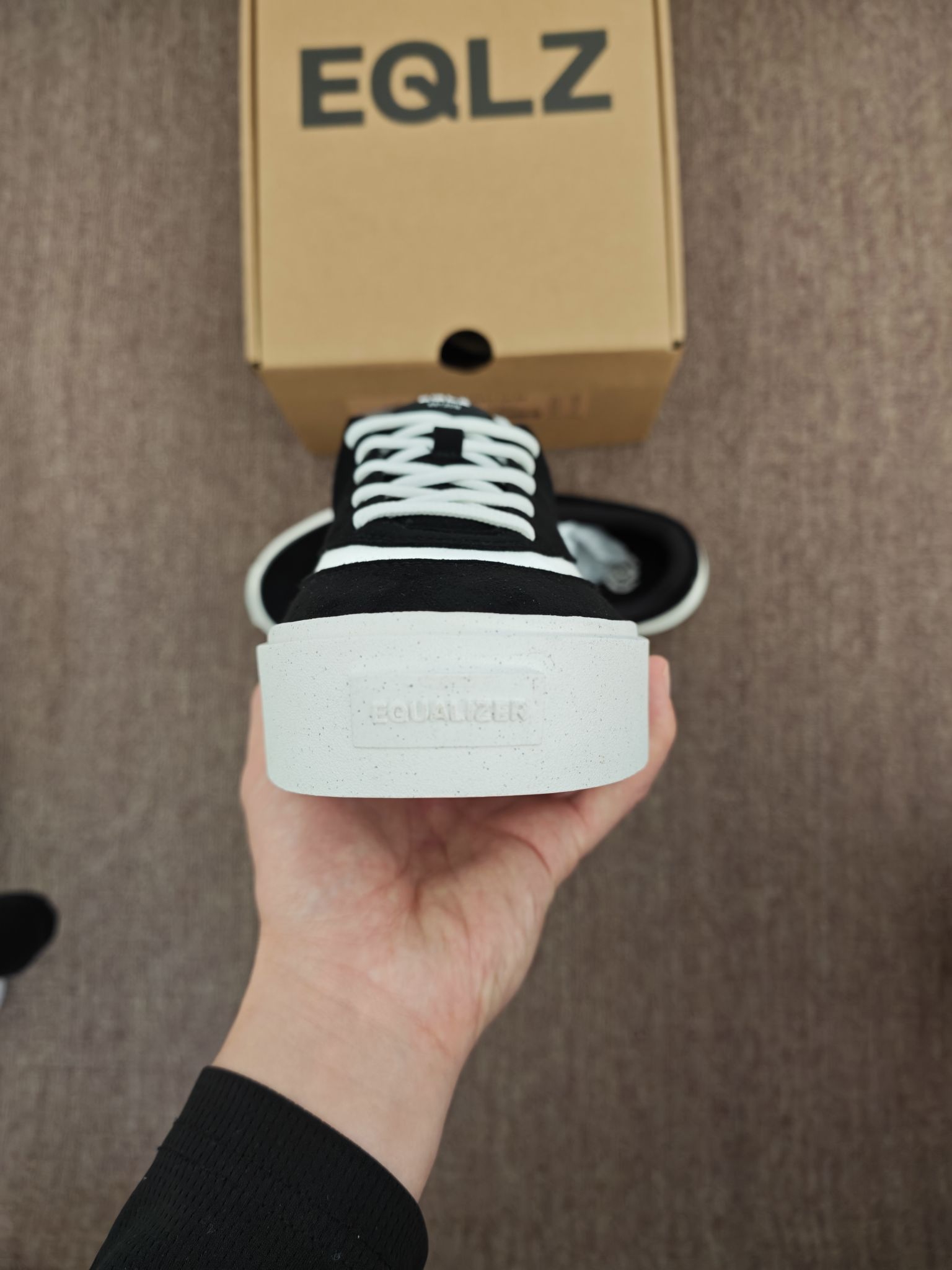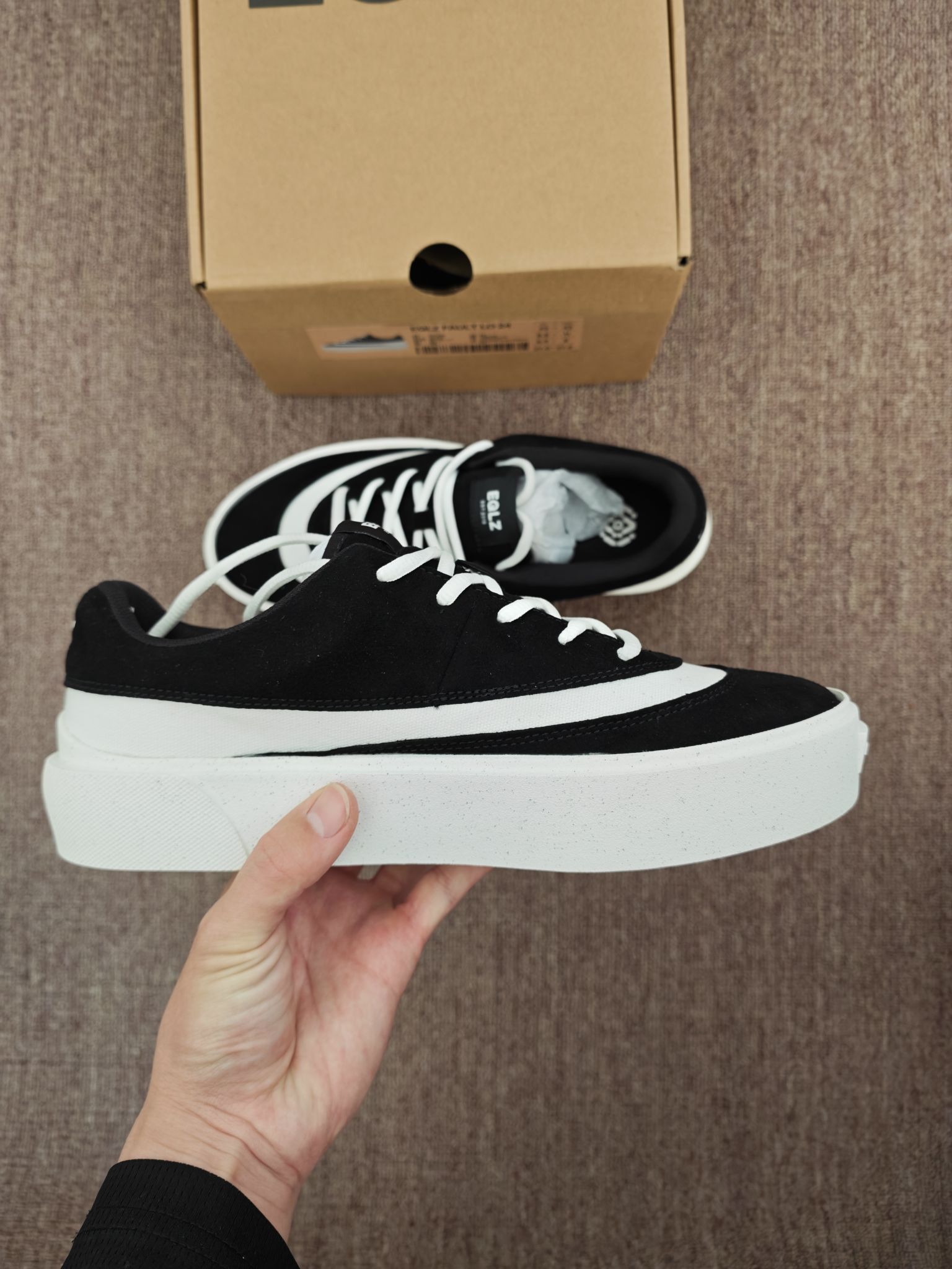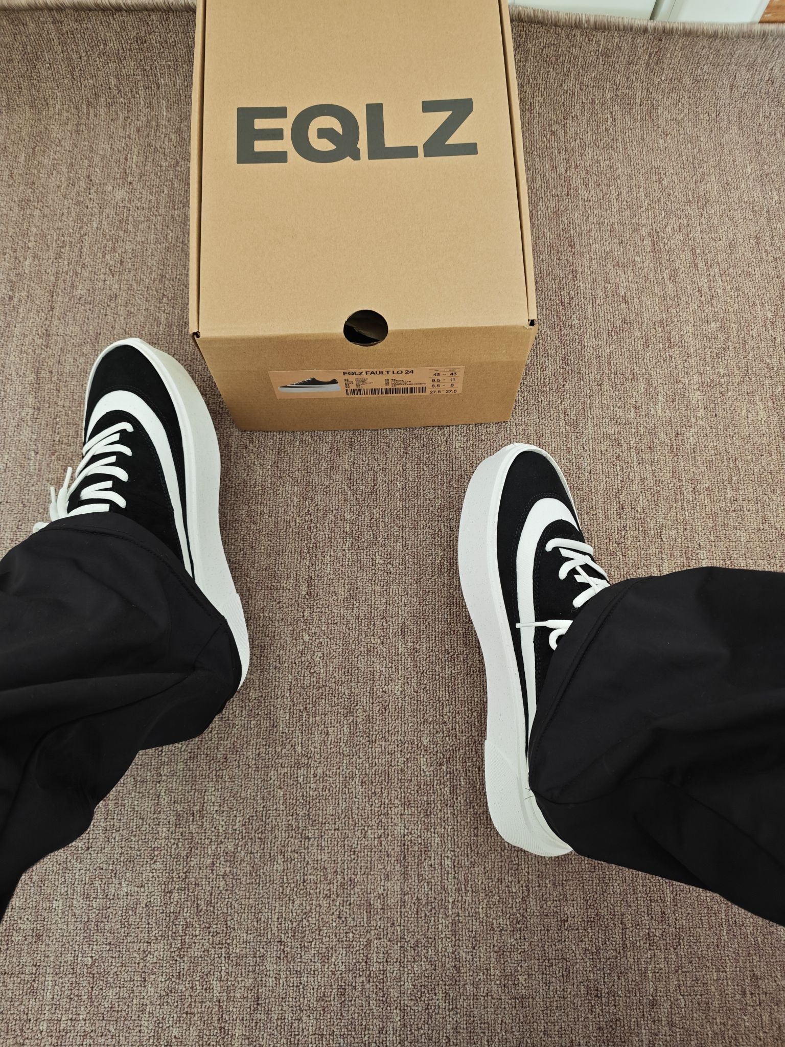 EQLZ Fault 24这双错版板鞋,上脚很舒服。麂皮和皮革拼接质感在线,后跟填充够软,久穿不磨脚。中底有轻微增高,走路稳、不累脚。日常配卫裤、牛仔裤、休闲裙都好看,上学、通勤、逛街、拍照都能穿。黑白配色耐脏耐看,后标前置辨识度高,做工扎实,细节到位。不管是日常出门还是轻度穿搭出镜,都很合适,百搭不挑人👌
