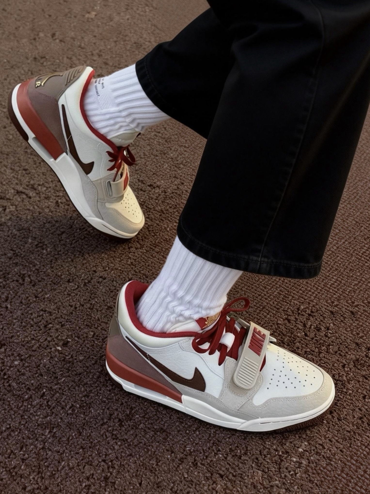 🌟配色:暖调大地色系为主,米白皮革、浅卡其麂皮、酒红细节与深棕点缀交织,既呼应春节的喜庆氛围,又自带复古质感,低调中透着高级,完全不挑穿搭场景。 🌟鞋型:融合AJ1、AJ3与Air Force 1的经典元素,魔术贴绑带+后跟可视Air气垫的标志性设计,复古轮廓利落不臃肿,完美修饰脚型,不管是日常出街还是新年聚会都能hold住。 🌟细节:鞋舌红色标签、后跟金色纹样(暗藏马年元素)、麂皮与皮革的拼接纹...