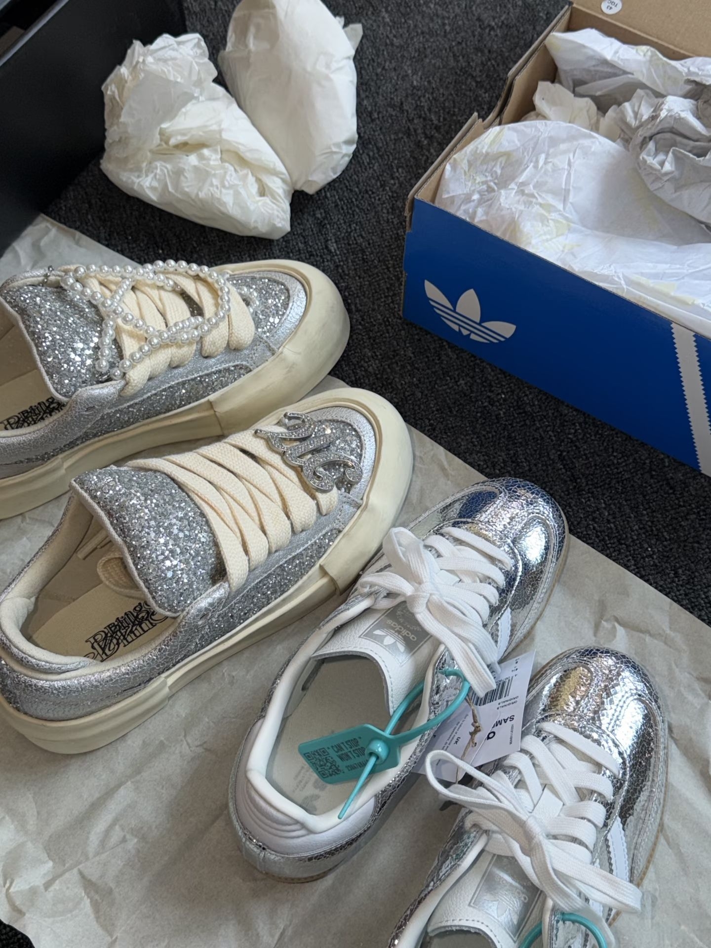 谁懂啊家人们!穿上这双安踏轻狂5白金配色去打球,直接被队友和对手围堵要链接!🤣 白金配色贵气到离谱,阳光下自带反光板效果,拍照根本不用P图,原相机直出就是大片📸 鞋身线条流畅,金色装饰条点缀得恰到好处,打球时是球场贵公子,出街就是穿搭潮男,一双鞋两种快乐! 实战性能更是杀疯了!全掌氮科技中底软弹到像踩在云朵上,突破时感觉有人在后面推你,三步上篮直接起飞🛫 足弓碳纤维稳定片+三硬度TPU支撑,急停变...