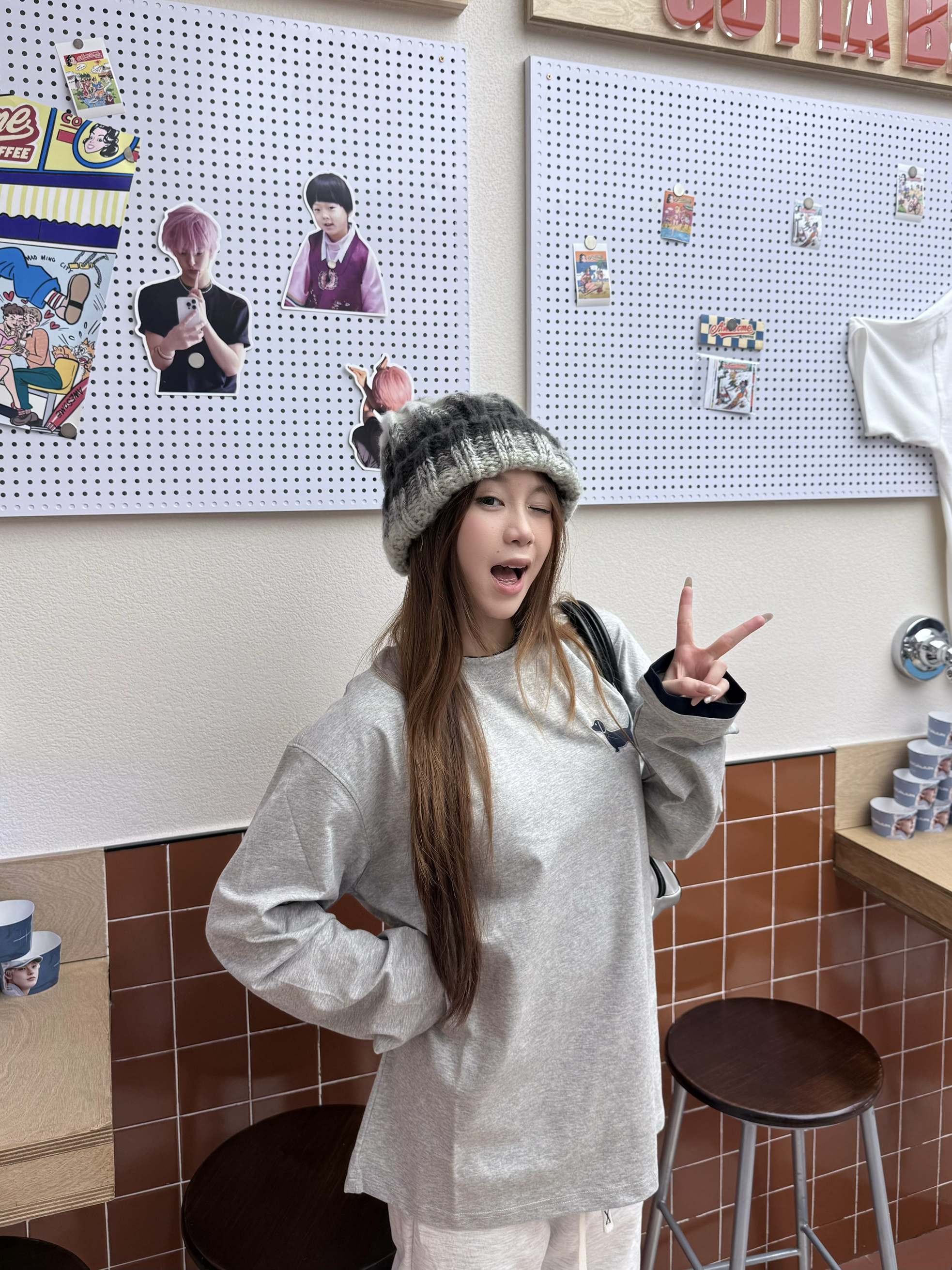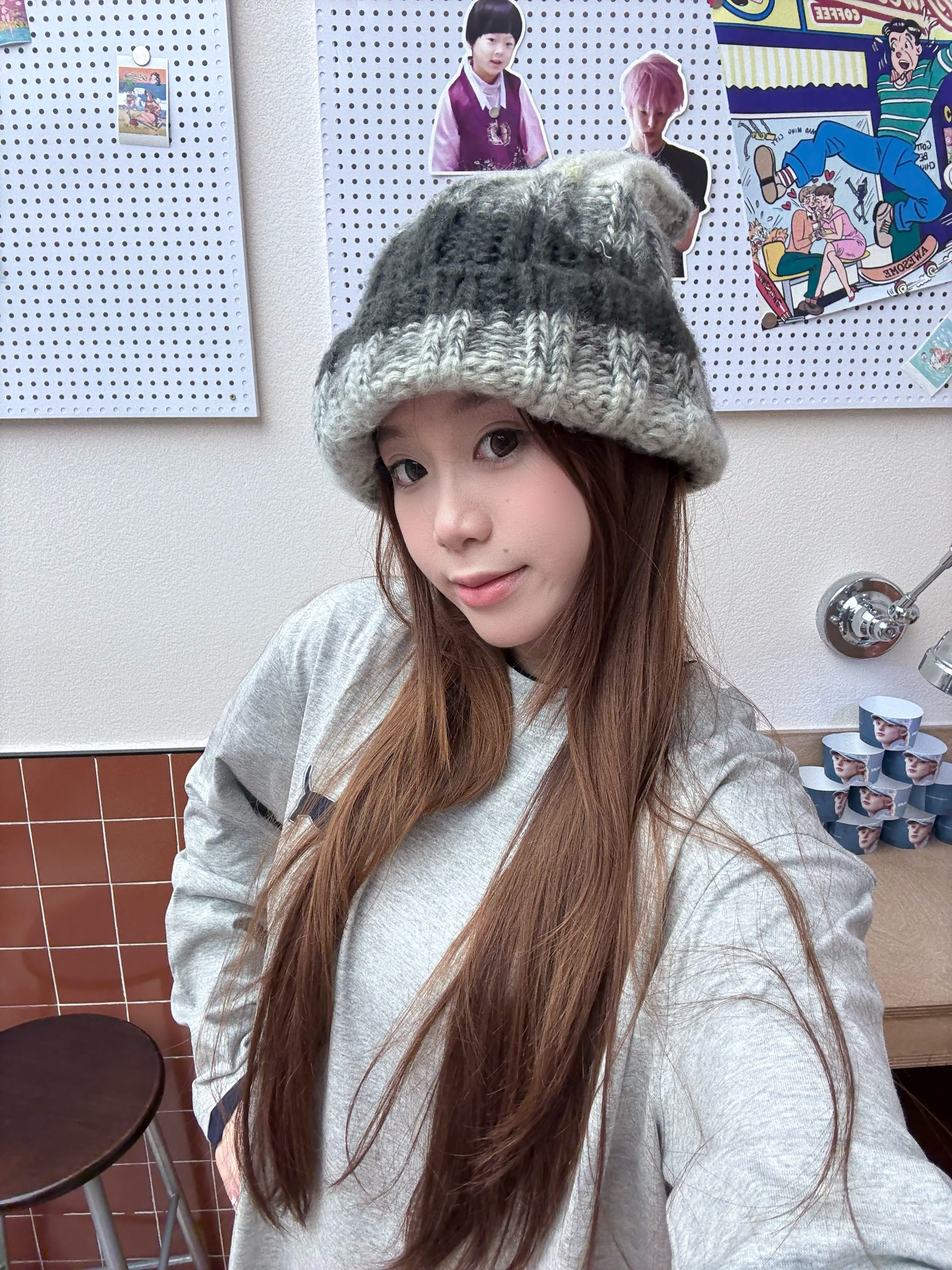 秘诀就是选择加宽加绒的款式! 这顶毛线帽我就蛮喜欢💕 低饱和灰白色 和秋冬适配度满分 针织戴在头上很暖和,冬天刮风也不怕啦 今天look 上衣搭配pclp空心小狗长袖 灰色相互呼应很有效设计感 显得很会穿!