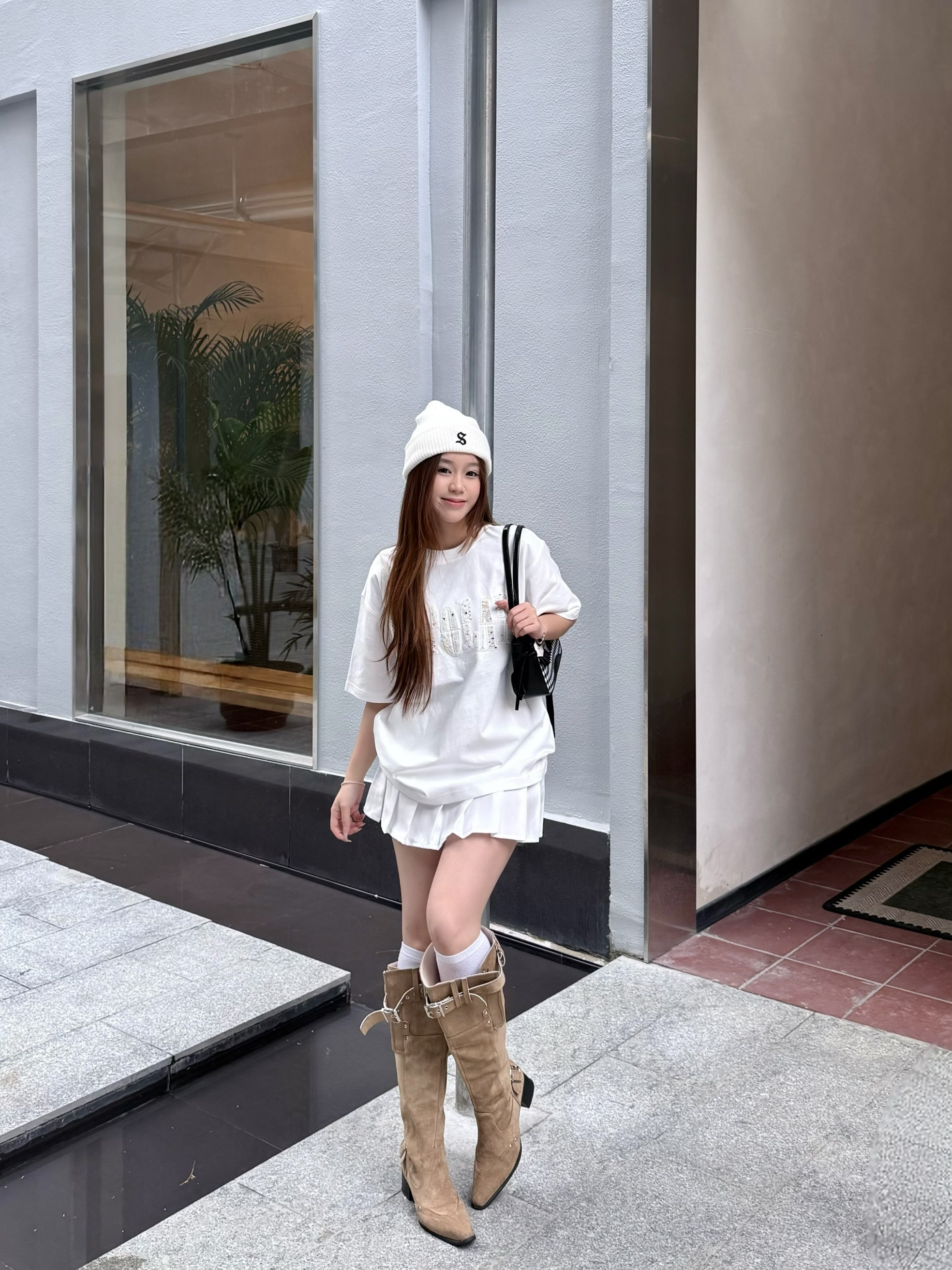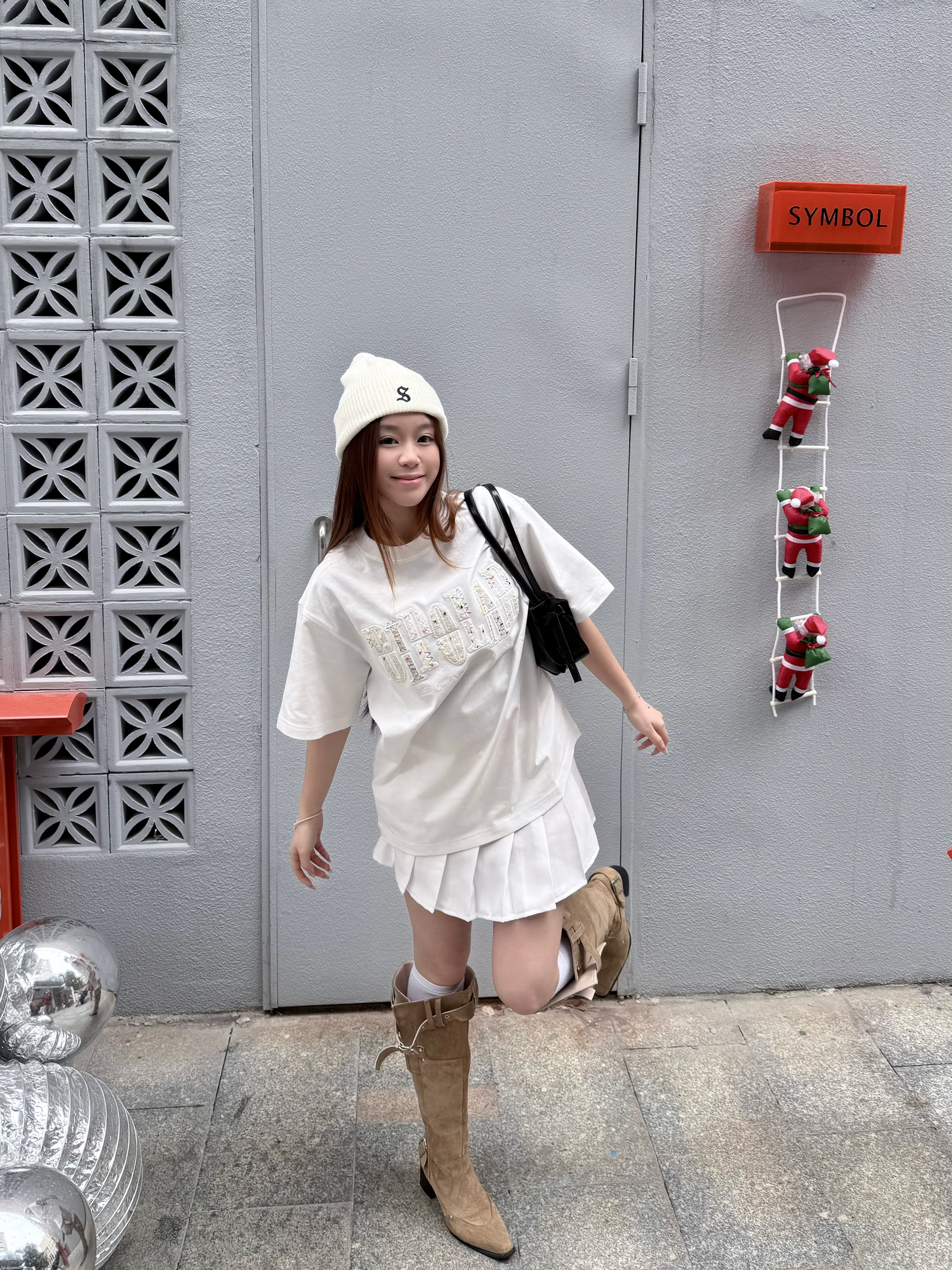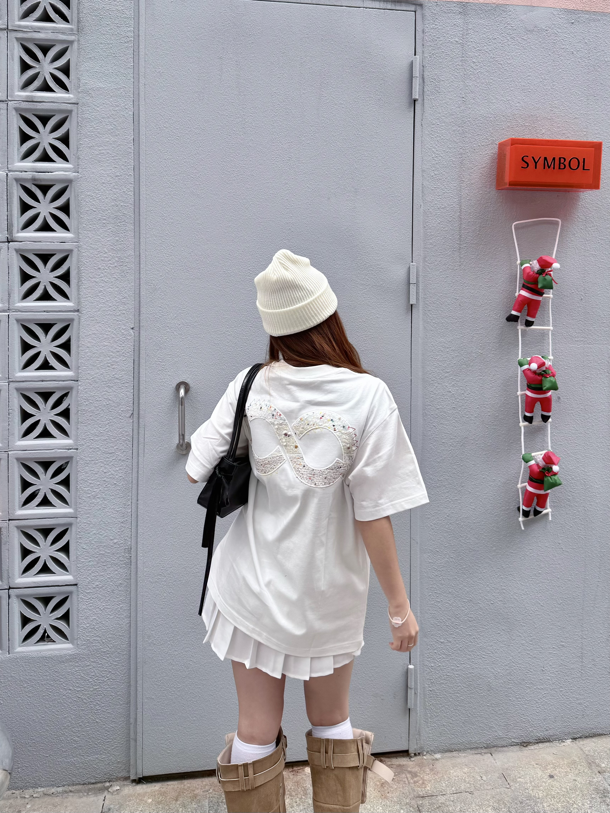 没错👍我们潮女都是5g入春滴 bipolar三拼白t我已经连续穿了两个夏天~ 这件在logo中间还加上了波点和缝线点缀🎨能看出来有点小心思在里面! 今天穿的all white,鞋子再来点不一样的棕色👞 俏皮活力的感觉一下子就出来啦 本人160/45kg穿的s码哦~