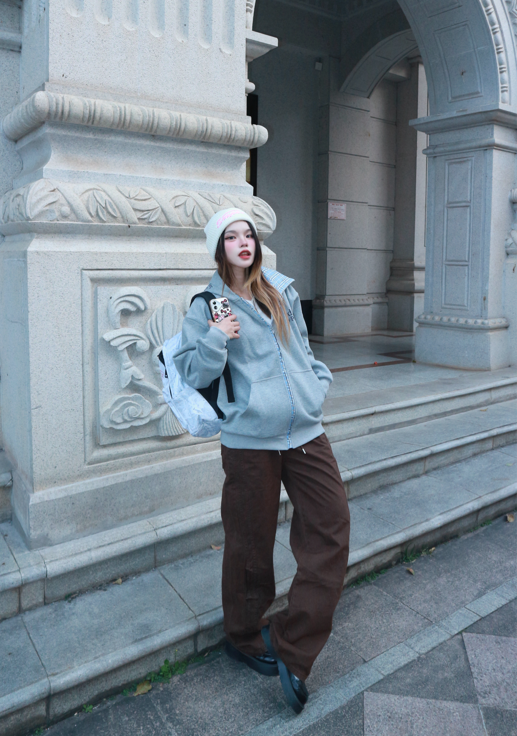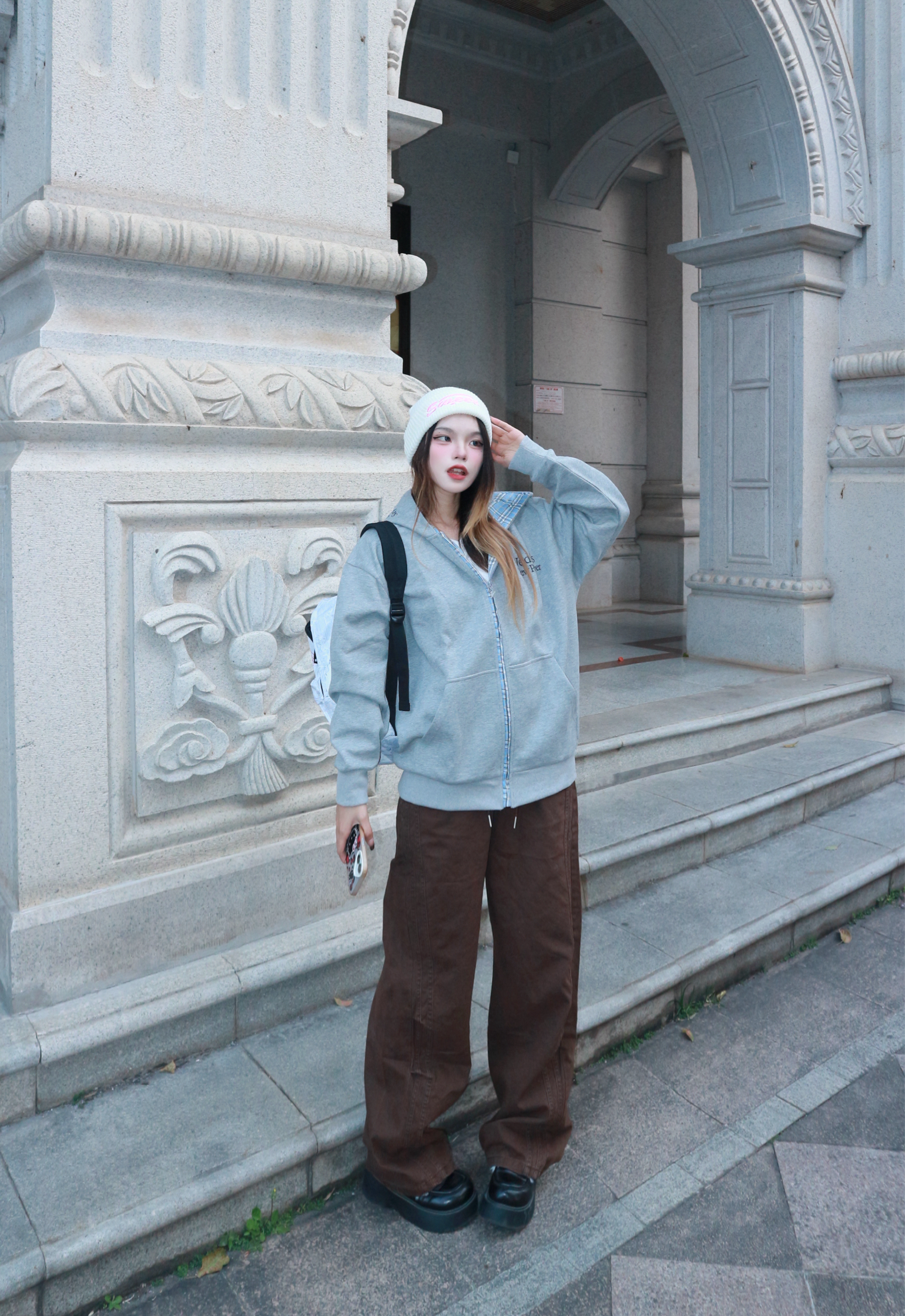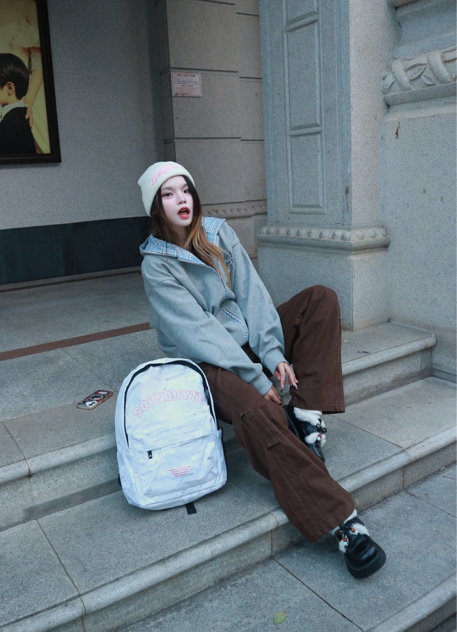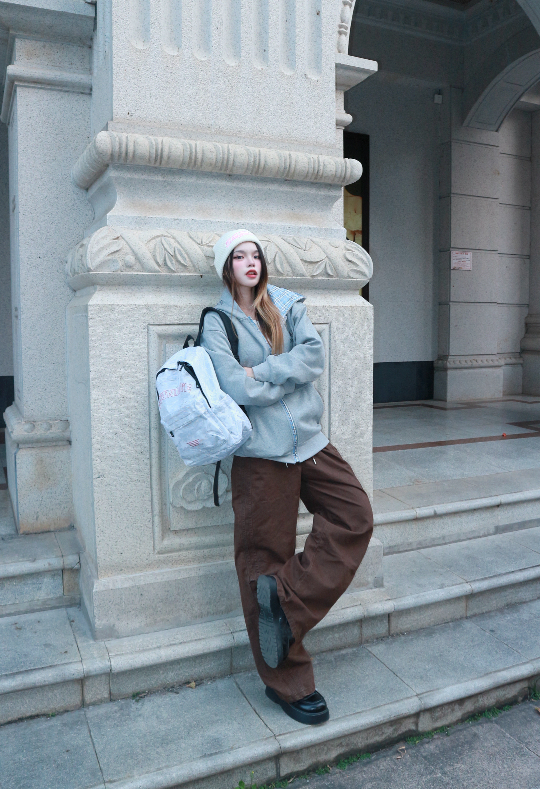 我最近真的蛮喜欢背这个包包的 软fufu的褶皱面料+撞色红标 美式校园氛围拉满 容量巨能装,课本、水杯、化妆品塞进去毫无压力 背带做了加宽设计 装重物也不勒肩~ 我的💡 搭配思路: • 配灰色连帽卫衣+棕裤=美式复古松弛感 • 帽子/围巾选同色系,整体风格更统一