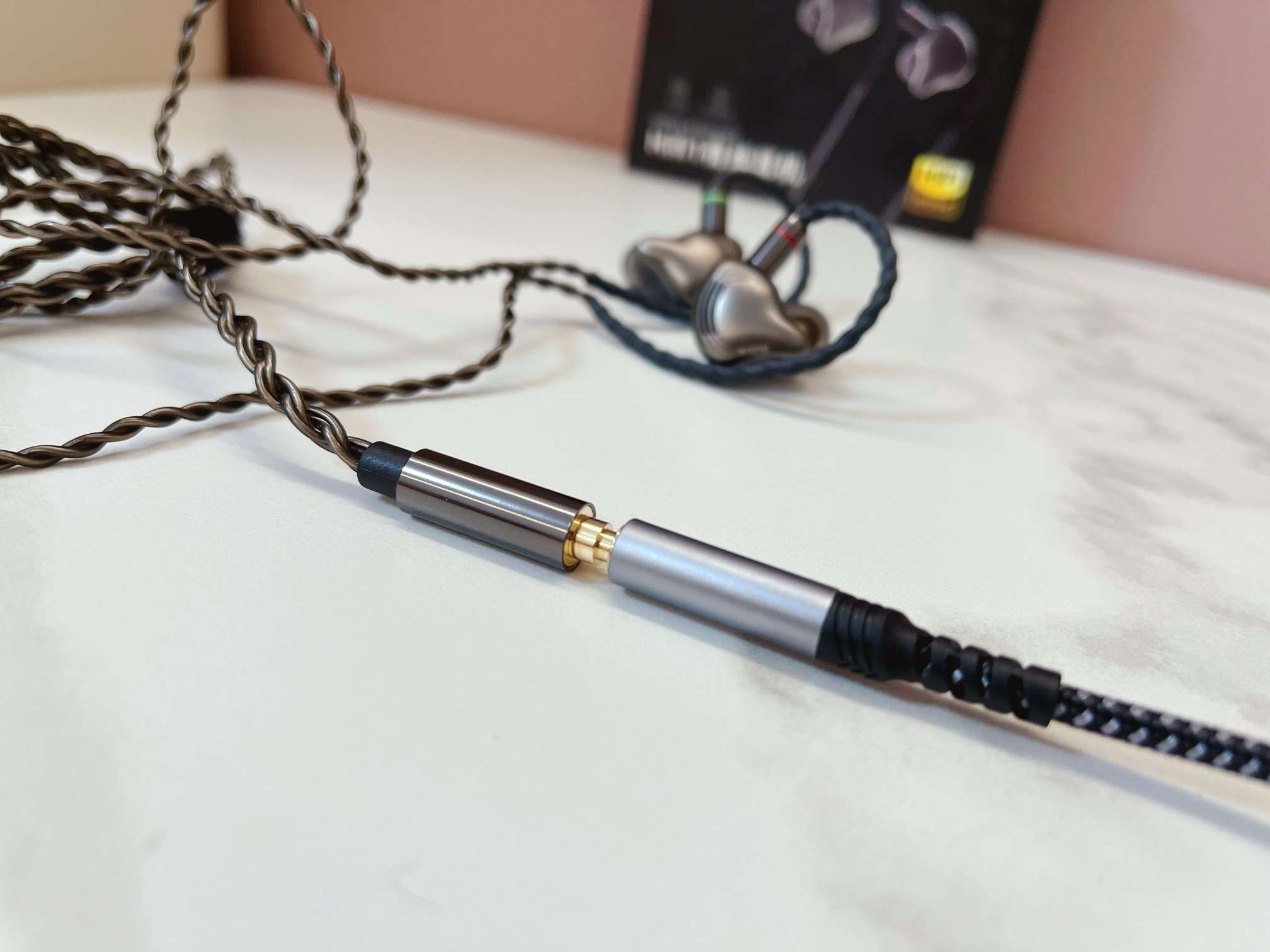 采用了0.78mm 2-pin镀金母座的可换线设计,这在百元价位耳机中实属罕见。标配的线材是182芯高密度同轴线,外层包裹TPE亲肤涂层,触感柔软且不易打结。这种设计不仅解决了线材老化的问题,还为后续升级提供了空间,让耳机生命周期大大延长,适合喜欢折腾的发烧友。