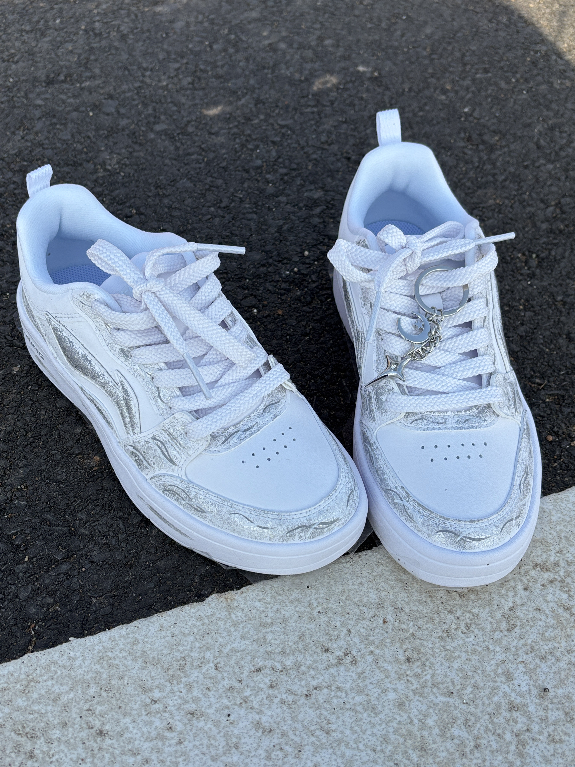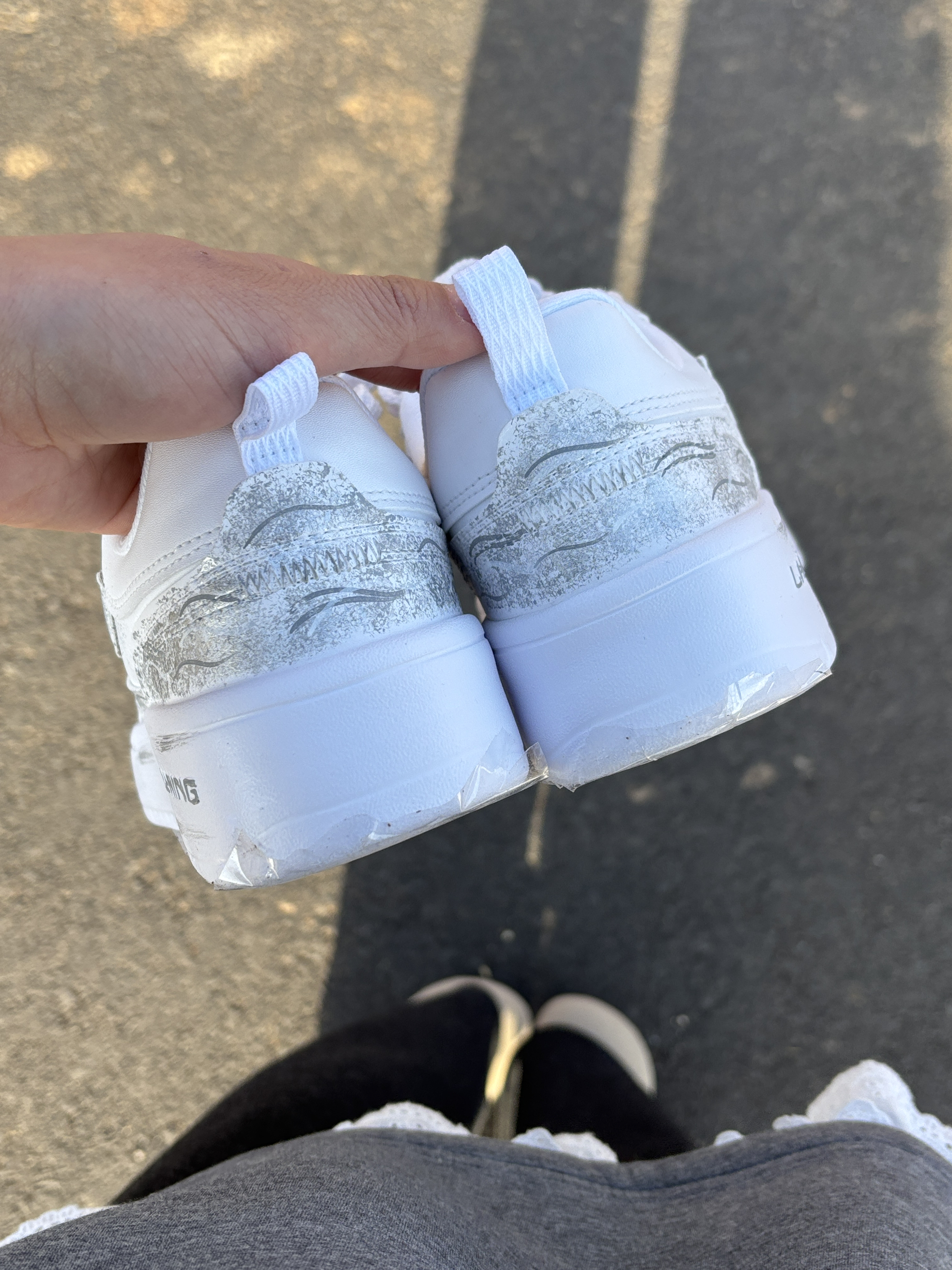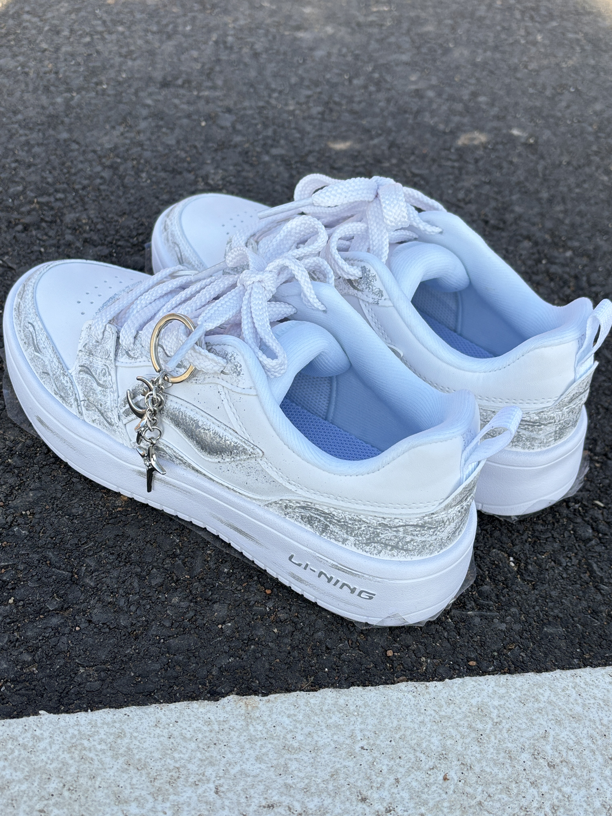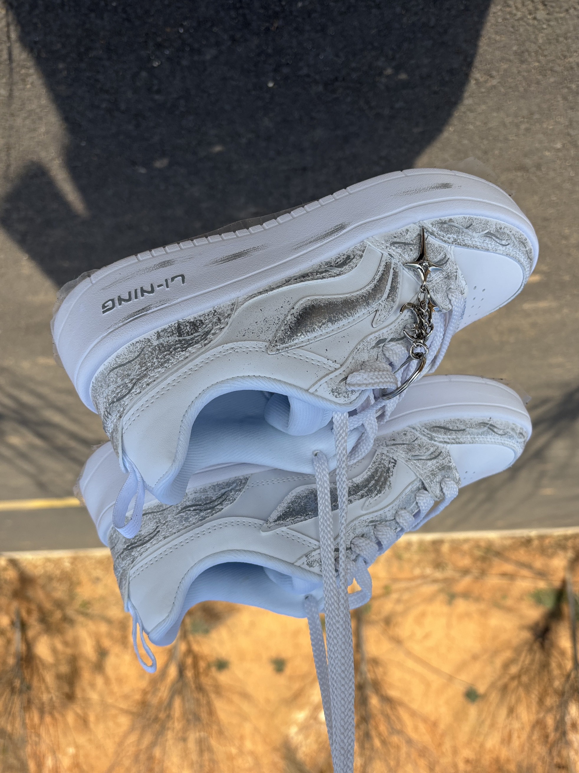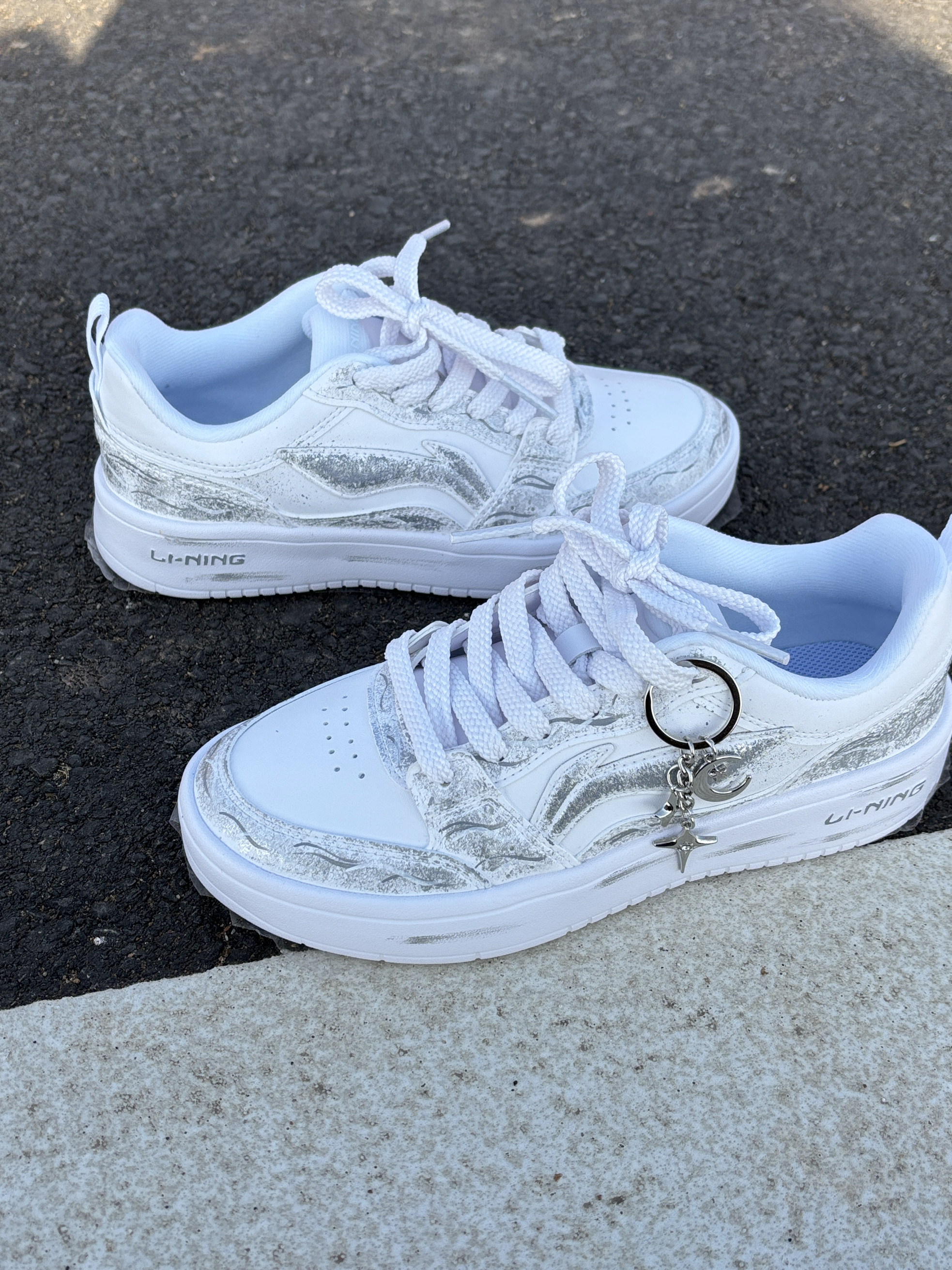 之前没有接触过国风但这双鞋子我好喜欢的! 鞋面国风涂鸦纹理清晰可见就挺有设计感 给我一种在鞋子都可以看到艺术品的感觉 简约百搭的小白鞋将国风元素融入高街设计 舒适与潮流并行 上脚敲好看还挺好搭配衣服的 自带那种时尚氛围感谁懂呀! 上脚也轻盈舒适穿上像没穿鞋子一样轻松 搭配休闲裤牛仔裤裙子都吼吼看的~