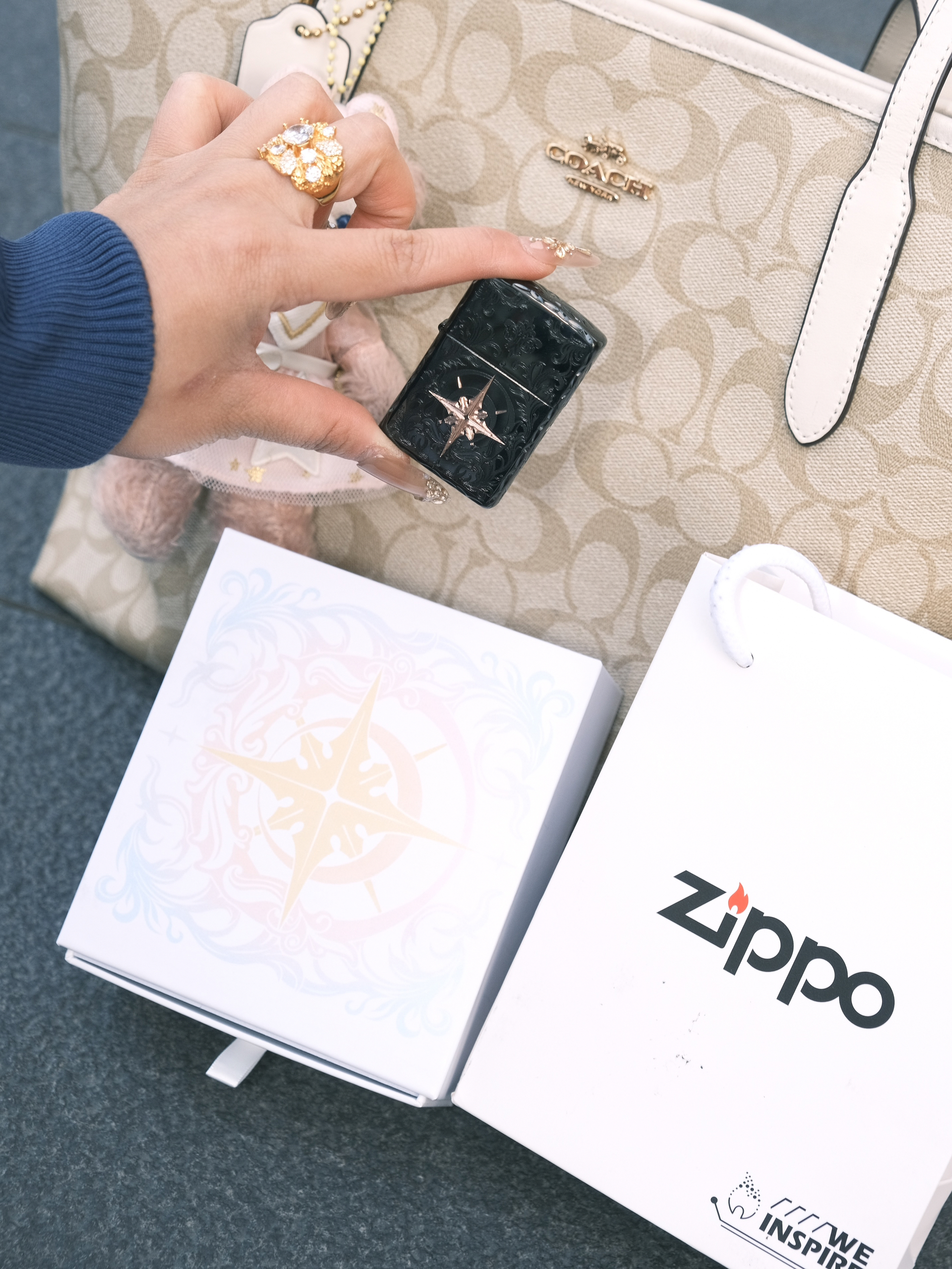 今年给对象挑的新年礼物,是这个Zippo打火机。 黑底浮雕花纹+立体星芒,拿在手里沉甸甸的,质感直接拉满。 今天出门特意搭了一身牛仔蓝,把它从包里掏出来的瞬间,感觉整个穿搭都更有细节了。 不管是放在包里当配饰,还是拿在手里把玩,都很有腔调。 希望新的一年,我们都能像这颗星芒一样,在自己的轨道上闪闪发光呀🌟