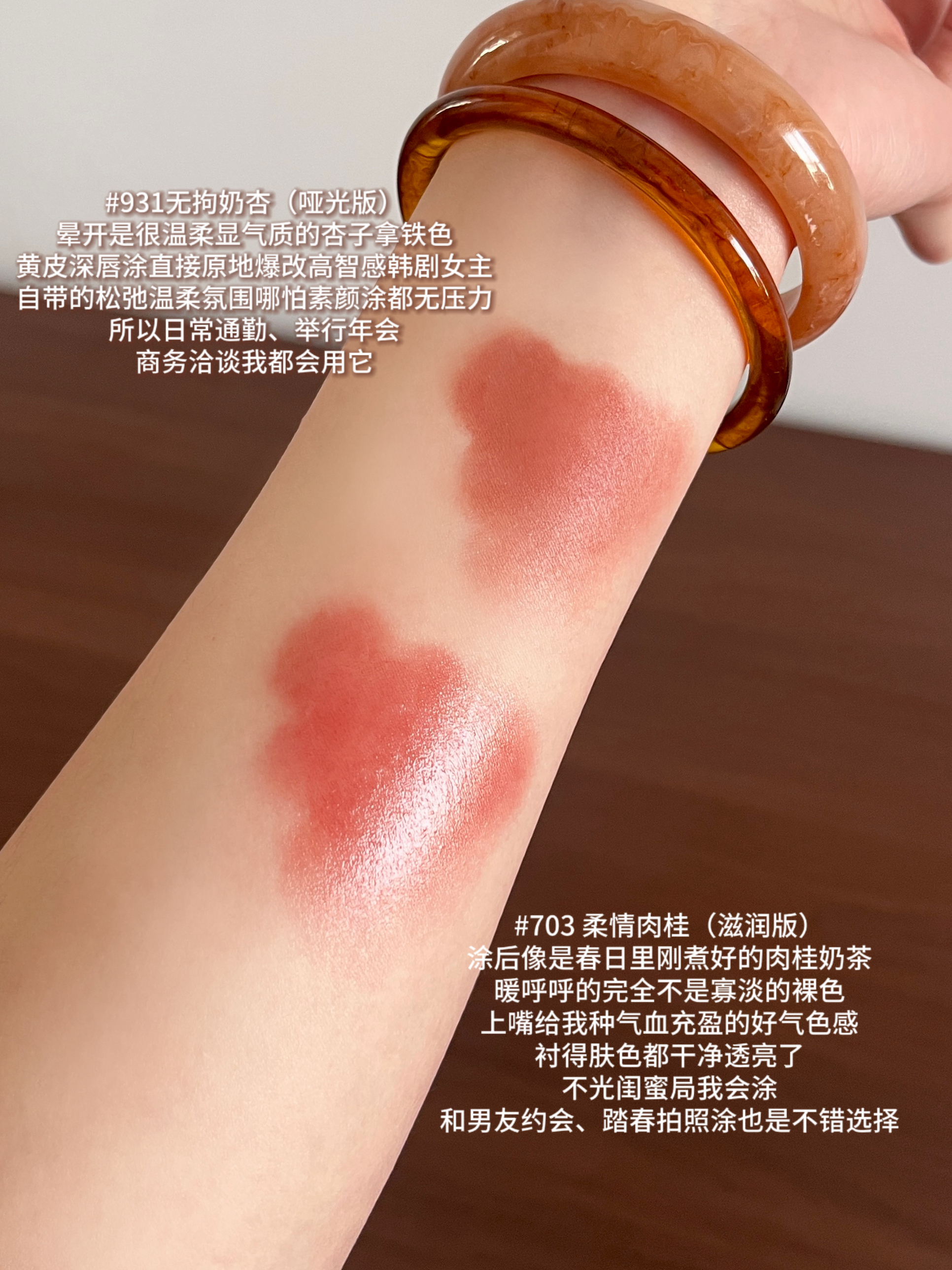 讲真完美日记在做精华口红这方面真的无人敢反驳,无论是它家的小黑管还是小白管我都很喜欢,东西大火想必也有姐妹不知怎么去抉择的,今天拿出我最近超爱用的两支和大家说道说道,各有各的美,纠结的姐妹可做参考: 完美日记小白管#931无拘奶杏:在参加一些正式场合或化一些高级妆要涂哑光口红,但是唇部状态又很娇气的情况下!这支就是最安心的选择!软糯糯的奶霜质地,上嘴像是刚打发的动物奶油,丝滑到直接溜进唇缝里,...