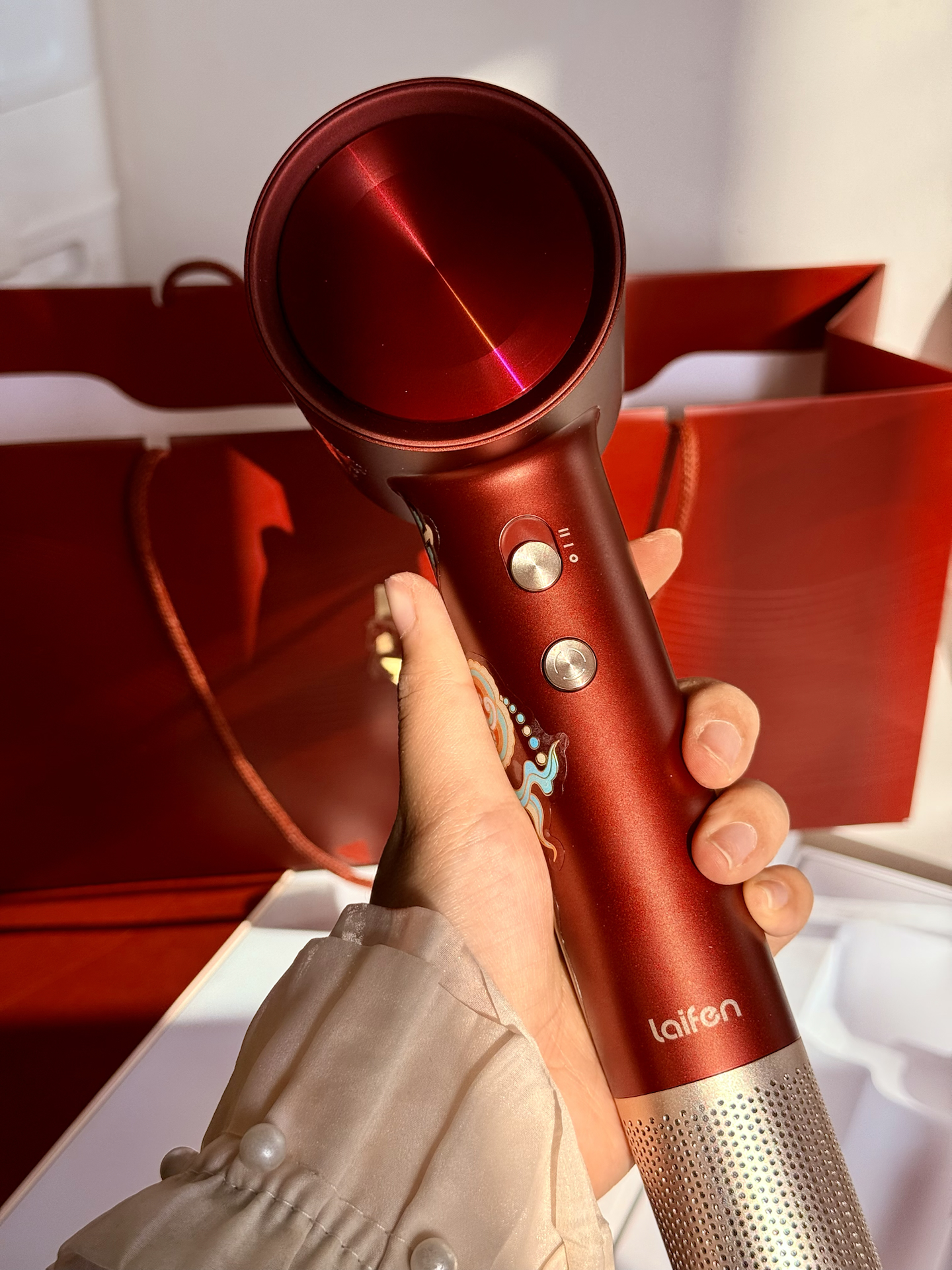 本篇笔记关联了【礼盒装】Laifen/徕芬 Swift 4 电吹风 速干 家用 APP智能 负离子 恒温护发 新年礼物 酒红金礼盒+顺滑风嘴+润养风嘴等商品,为用户提供真实的使用体验和购买参考。