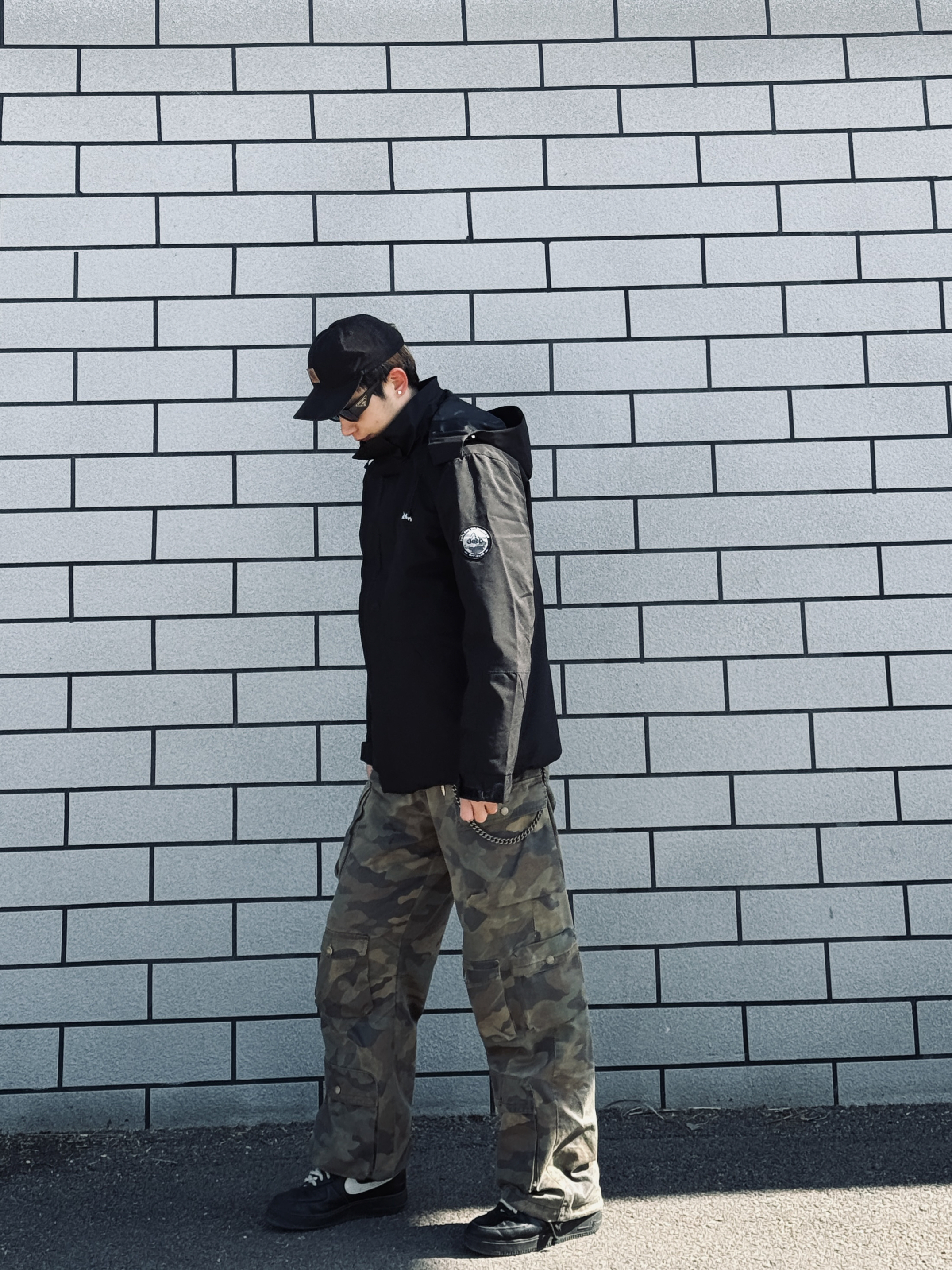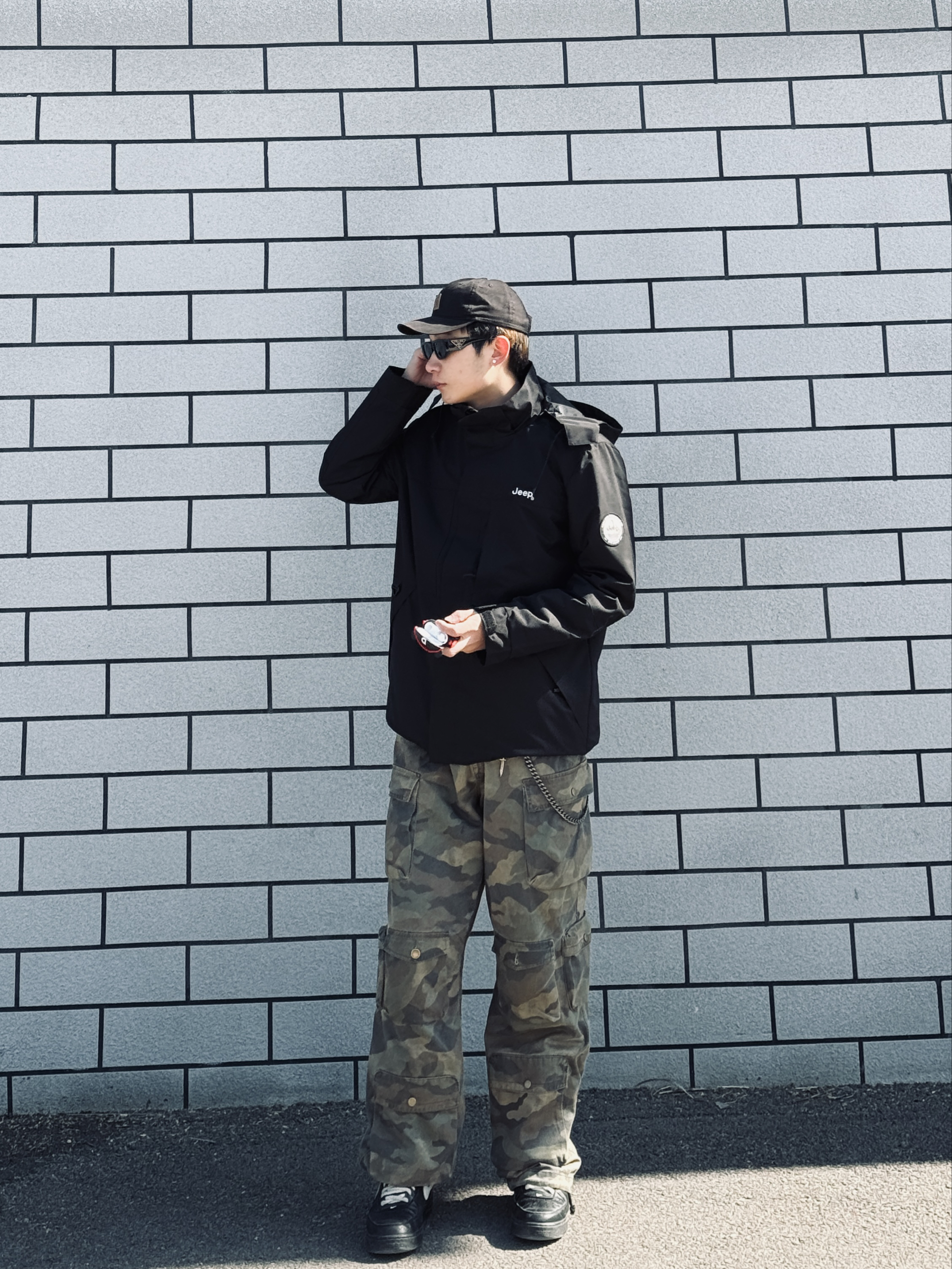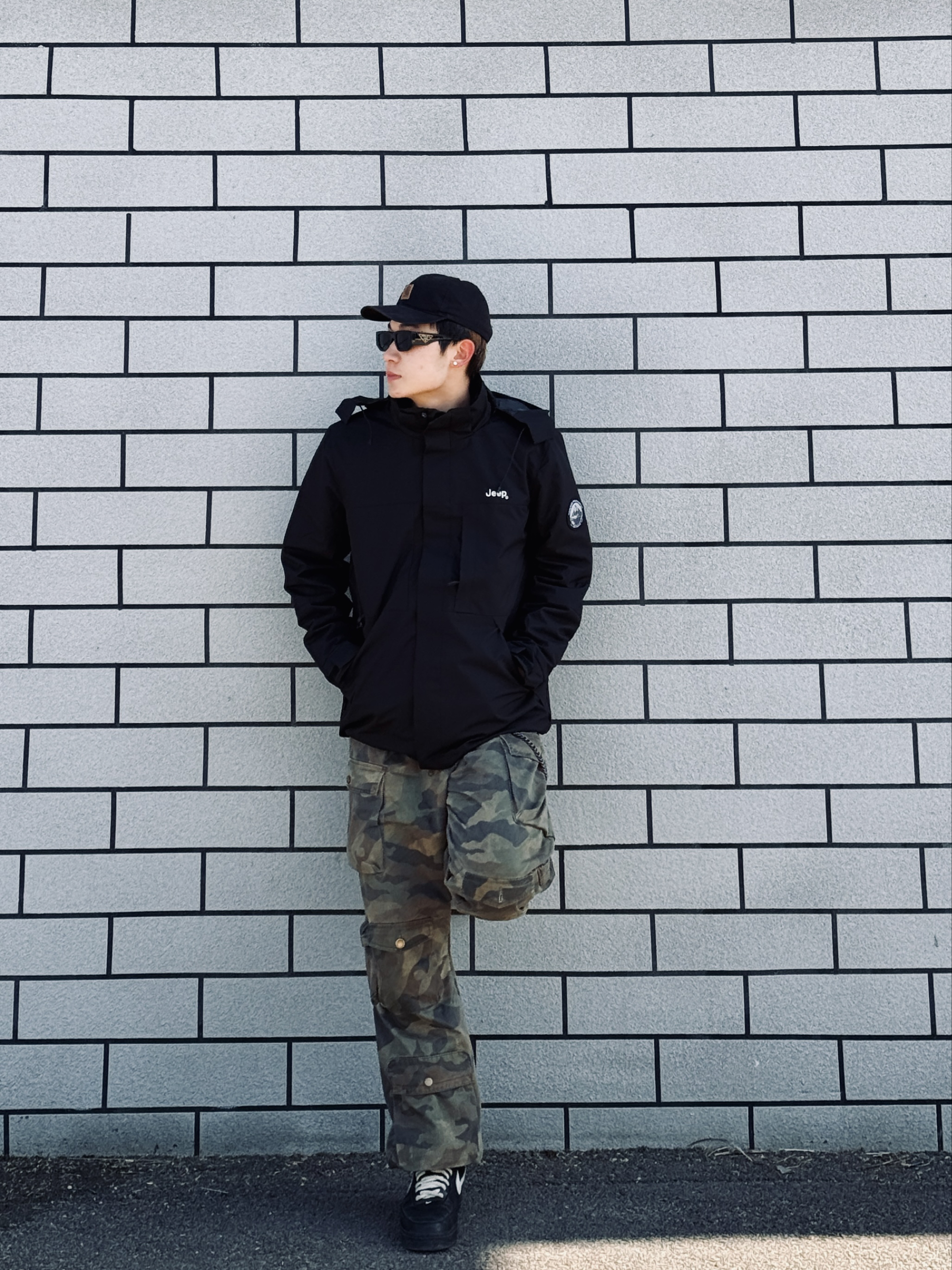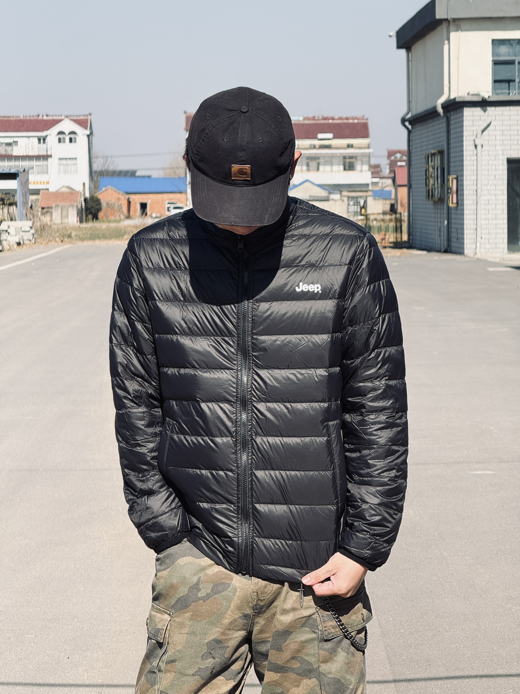 冰美式今日穿搭🍂 秋冬降温就爱这种叠穿思路❤️🔥 防风外套➕轻薄羽绒内胆 应对早晚温差很实用 — 👔外层黑色⚫️冲锋衣 面料挺括抗风🌬️ 连帽设计能护住后颈 日常通勤或短途出行都合适 内搭黑色羽绒 轻量锁温 单穿也不臃肿✨ — 👖下身迷彩工装裤 多口袋设计能装下手机📱 钥匙🔑 直筒版型修饰腿型 做旧质感很有高街味儿‼️ — 👟脚踩经典白黑板鞋 皮革面好打理 耐磨又百搭✨ — 身高178cm/体...