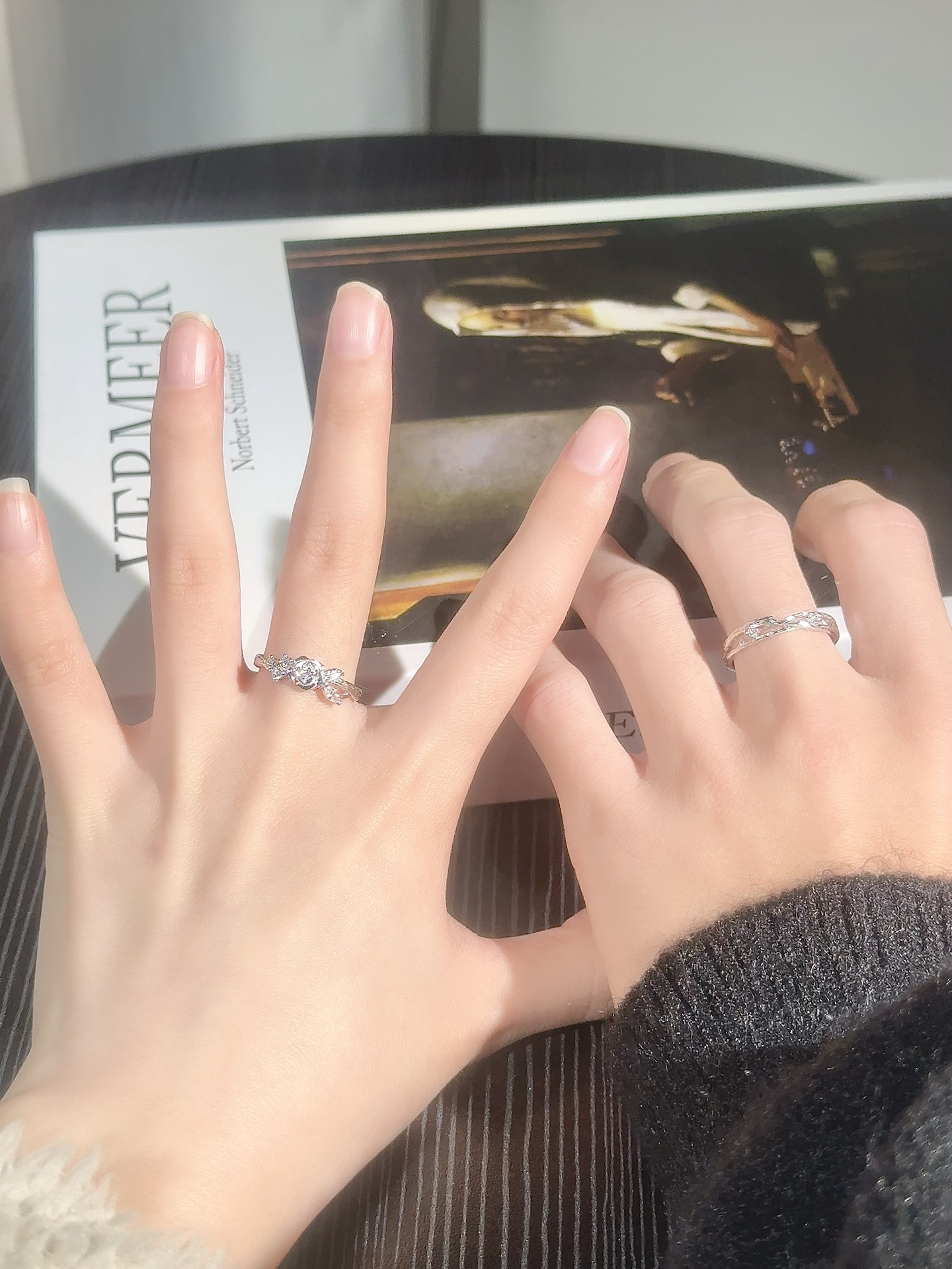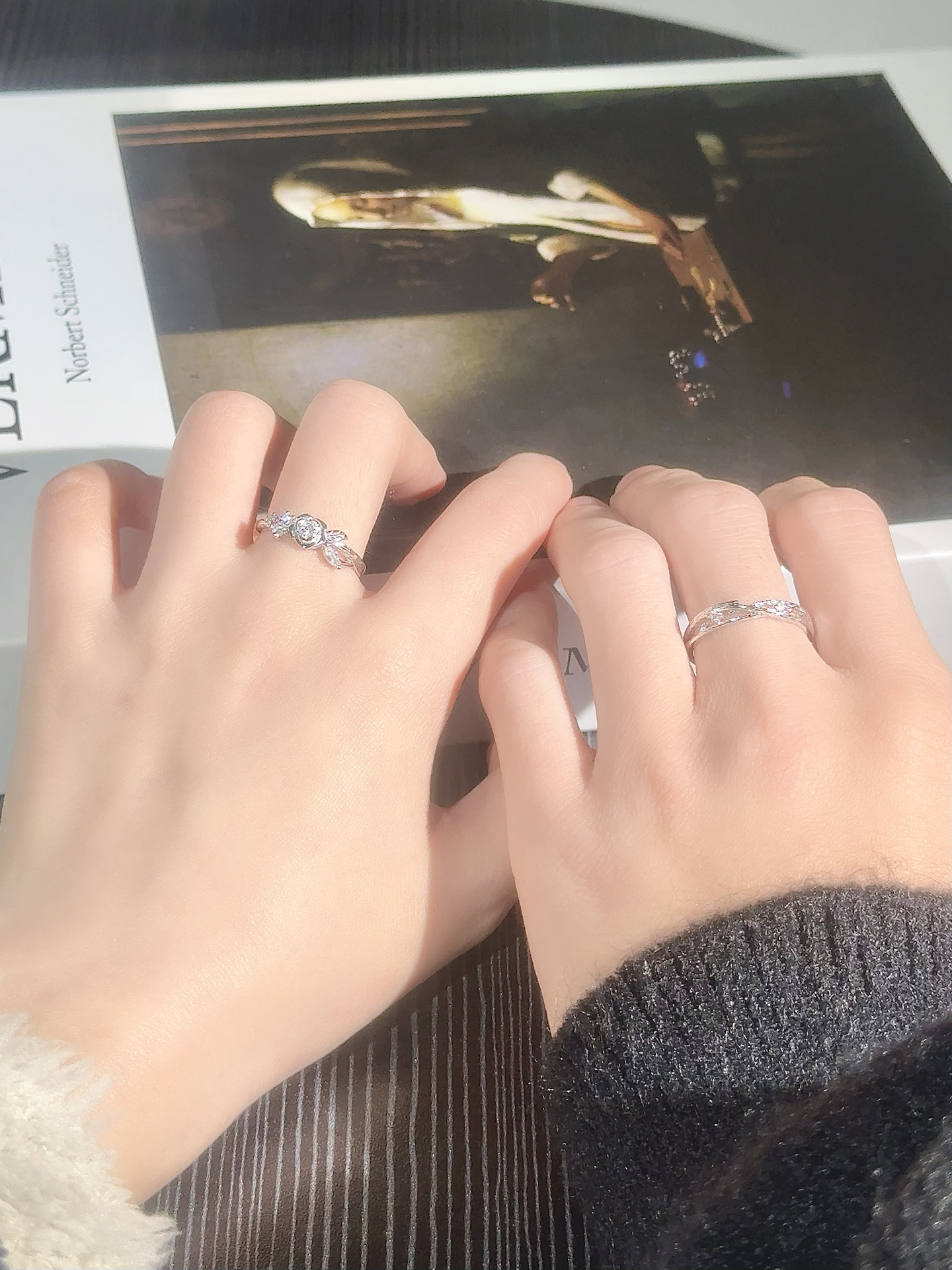 这对情侣戒真的太会了 我的是立体玫瑰造型 花瓣纹路都清晰可见 还点缀了小钻他的是缠绕的枝叶设计 和我的玫瑰刚好呼应 就像他在默默守护着我 每次和他牵手的时候 看到手上的戒指 就觉得我们的爱有了具象的模样 不是那种烂大街的款式 小众又有设计感✌️