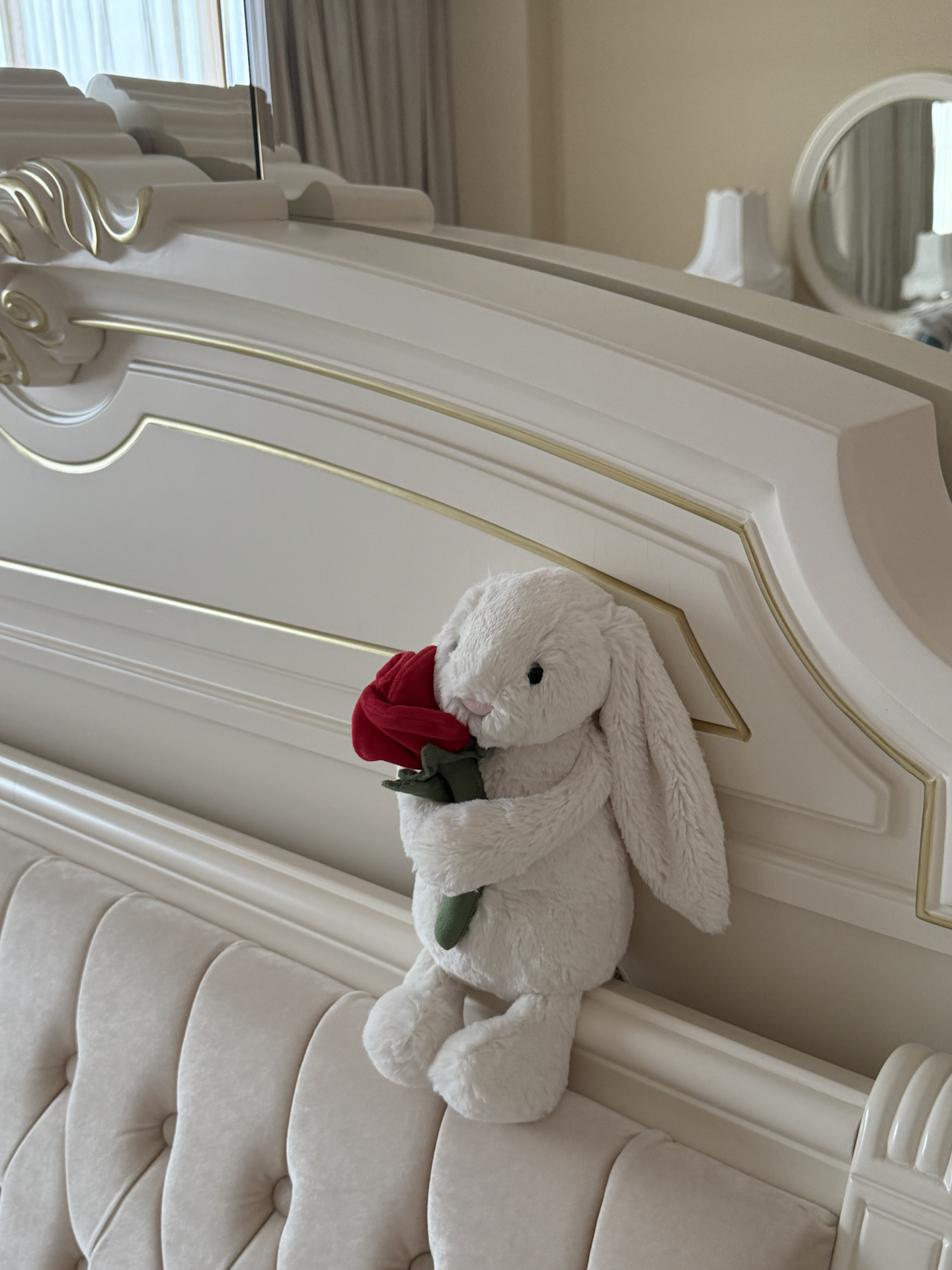 谁能拒绝抱玫瑰的垂耳兔哇! 🐰 兔毛软乎乎像云朵,rua脸贴贴都好舒服~ 摆床头氛围感拉满,抱怀里当抱枕也合适,送闺蜜超拿得出手,看到就被暖化啦💗