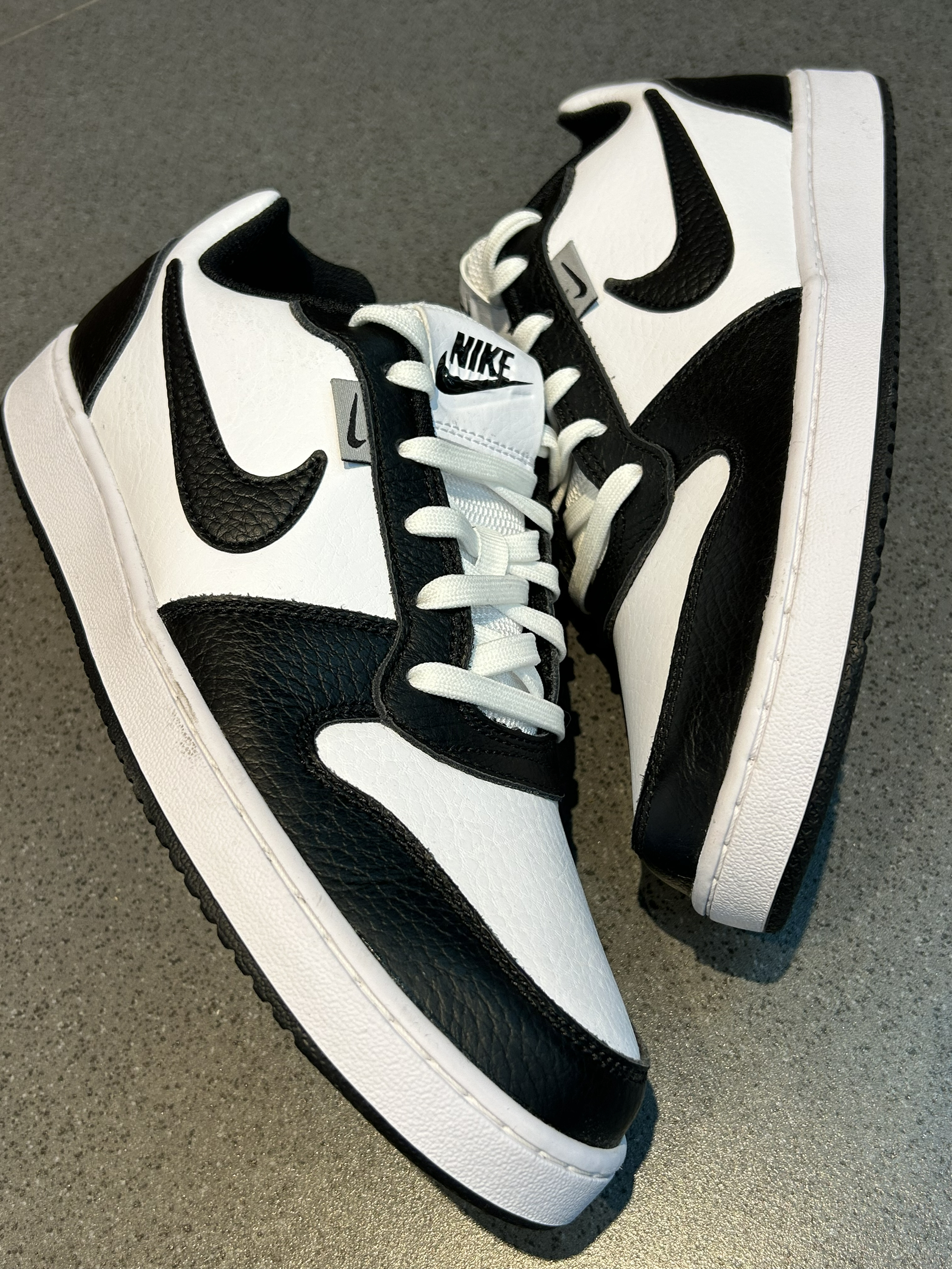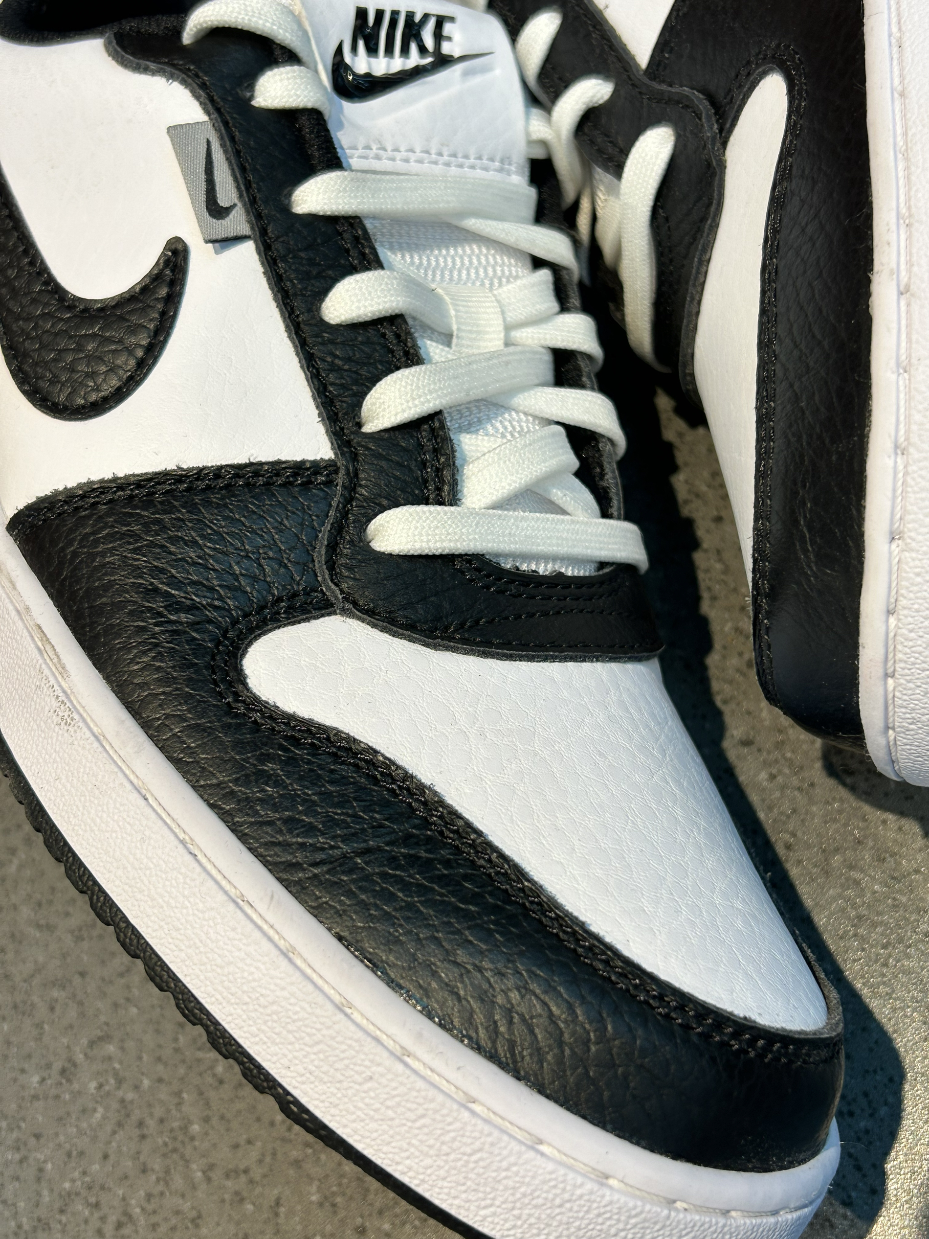 今天与大家上脚分享的低帮板鞋来自于Nike EBERNON low prm white black黑白熊猫,一款融入了经典复古篮球风格的百搭板鞋又是经典的黑白配色,虽然小众但上脚轻质舒适皮革质感出色,无论是搭配牛仔裤或者是各种裤型都毫无压力,颜值相当上大分大家怎么看呢?
