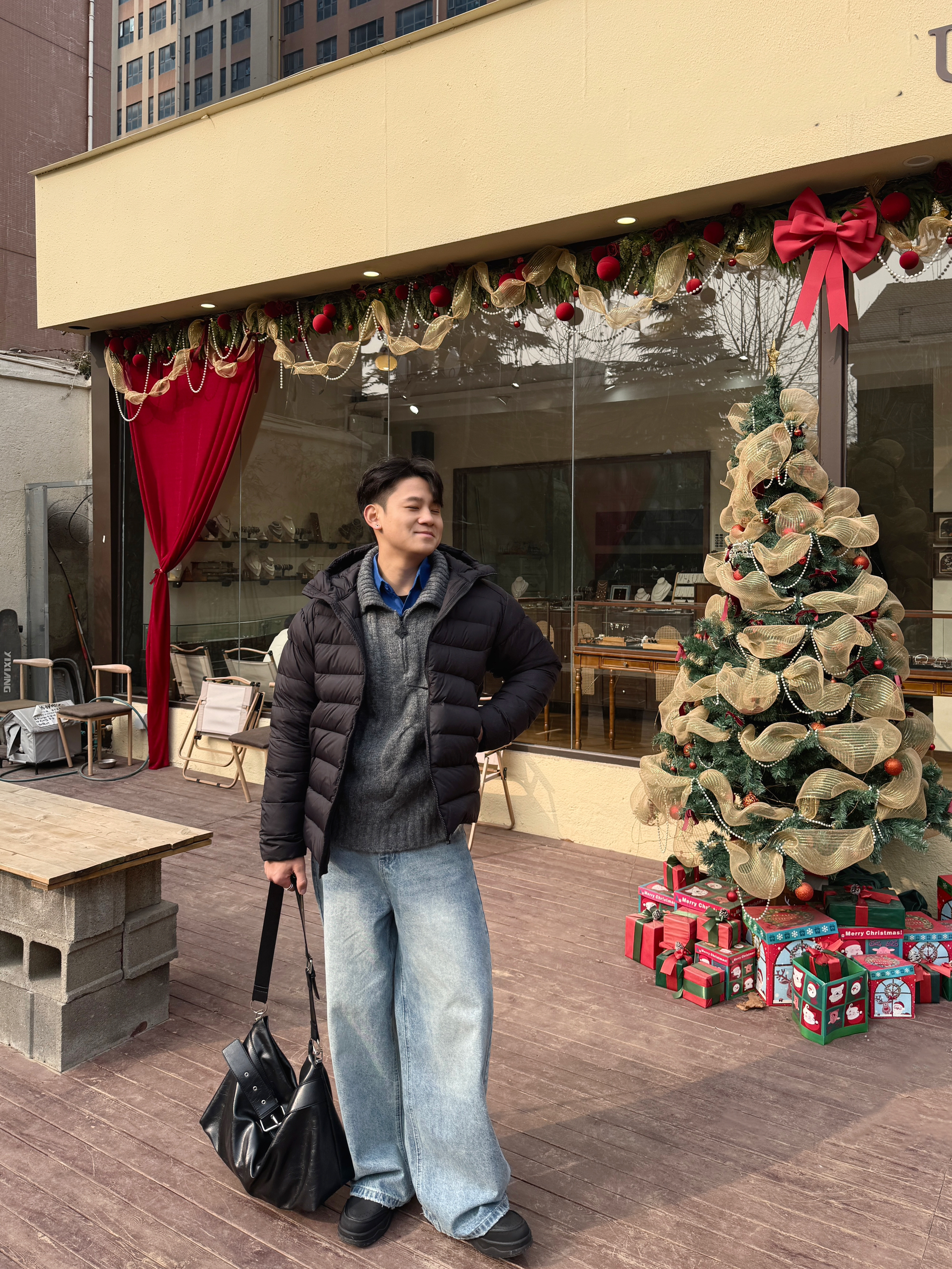 来看看我怎么在冬日叠穿的吧 上衣我选择一件排骨羽绒服 微修身的版型修饰身型还保暖 内搭来一个灰色的翻领毛衣 打底是一个蓝色翻领衬衫 这样上半身层次感十足~ 视觉上看起来也不会臃肿 裤子我选择一件蓝色直筒牛仔裤 这样一身下来层次感十足也有氛围感 你认为这一套叠穿怎么样?