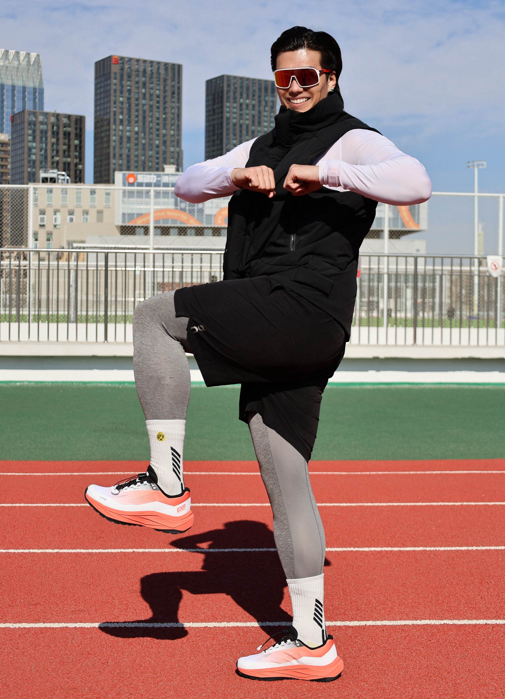 早起探野,黑马甲+黑短裤主打一个利落。脚上这双探野LITE户外鞋晨曦红直接点亮全身👟 原以为红色难搭,上脚才发现是点睛之笔。鞋型不笨重,透气网面走了一上午不闷脚,抓地力在线,碎石路稳稳的。 重点是——拍照太出片了!山野绿荫里一抹红,原图直出都能当壁纸🌿 兄弟们,你们户外爱穿亮色还是低调色?评论区聊聊👇#安踏探野lite#野没负担
