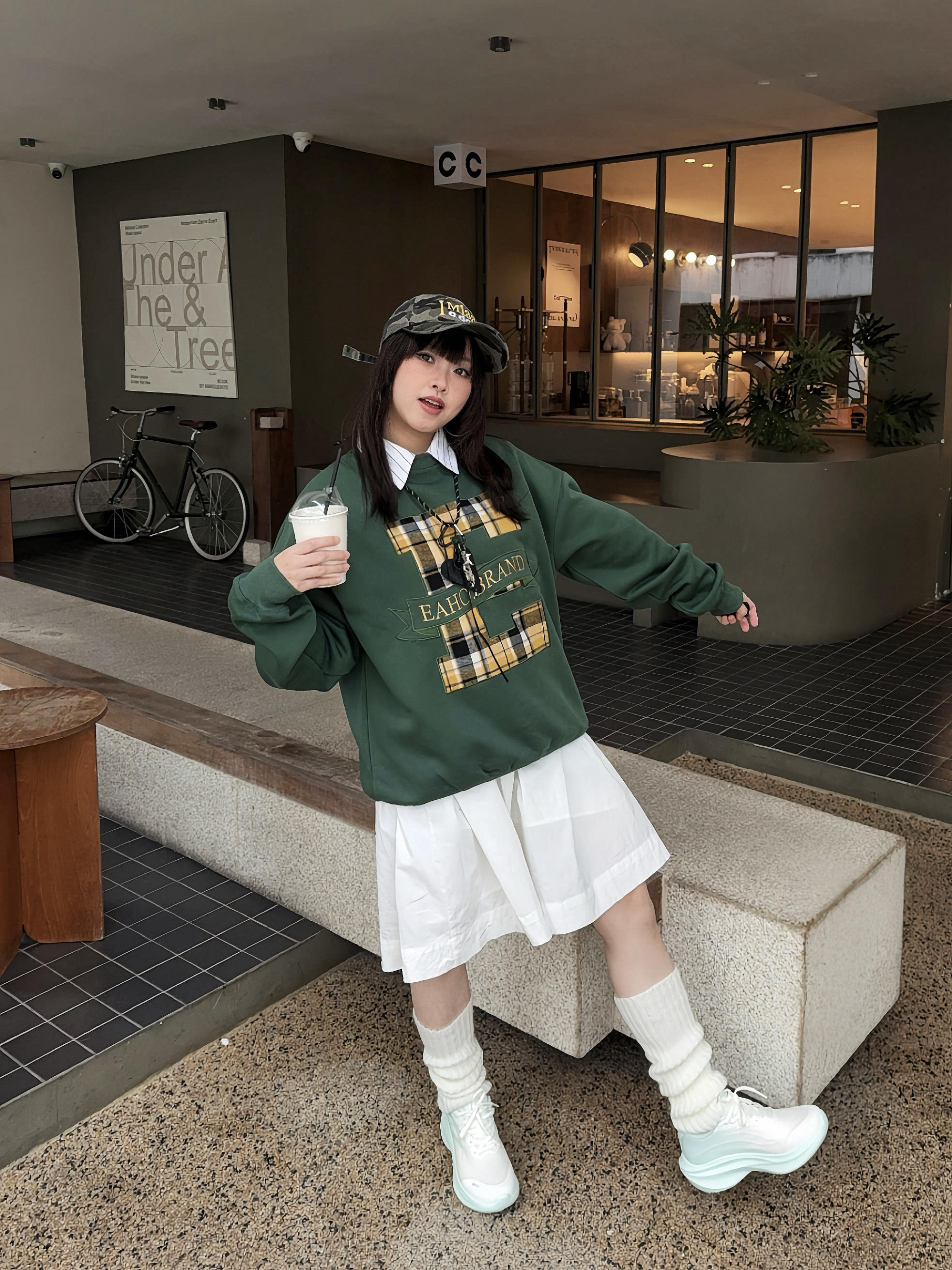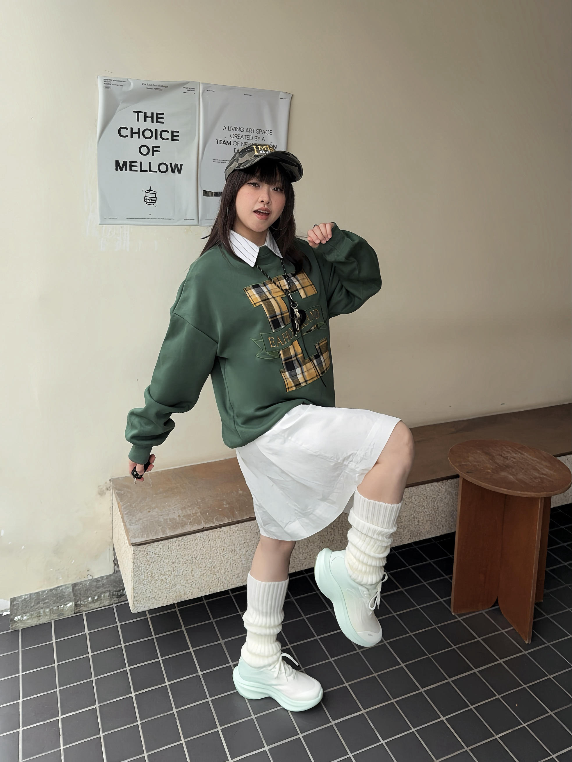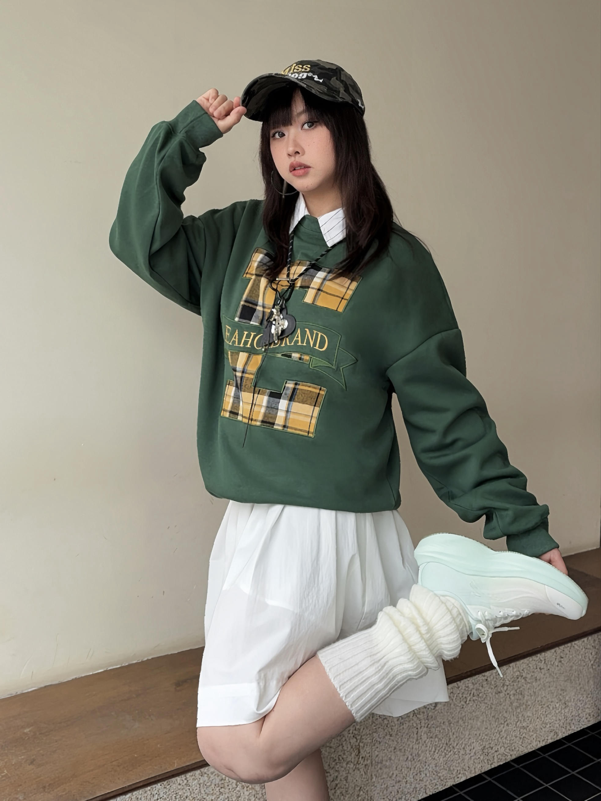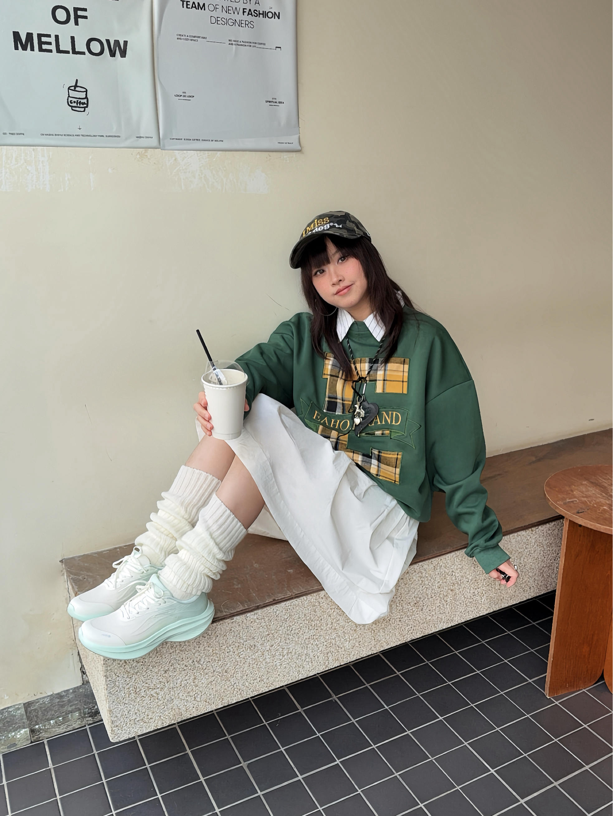 提前预习马年约会fitcheck~ 🛹今天主打一个美式甜酷look,复古卫衣搭配工装裙,再上脚 安踏 叶子7跑鞋👟perfect ✨ 🥛这双是奶fufu的薄荷奶绿色,很好搭配,鞋侧的线条很酷,🆒上脚又轻又有回弹感,日常搭配、通勤跑步都8错🏃