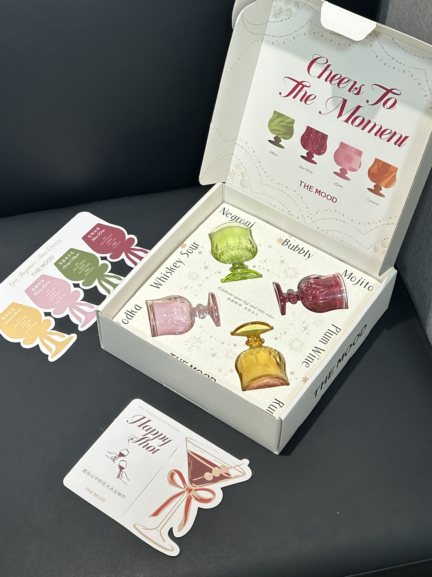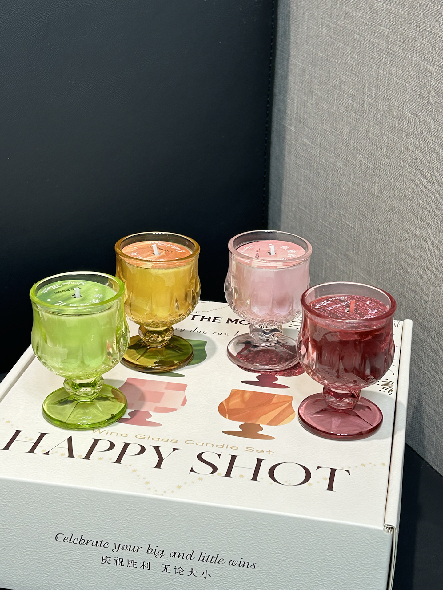就是这个THE MOOD酒杯香薰蜡烛礼盒 拿到手质感还蛮好的,米白礼盒还有提手,送人也还蛮有仪式感 里面有四个小酒杯造型的蜡烛,颜色清透,摆在桌面就像mini版的鸡尾酒 我最喜欢玫瑰冰酒那款,是温柔的玫瑰香,点燃后香味还蛮好吸收的,整个房间都变得很放松 杯身是玻璃材质,用完还能当小杯子用,实用性还不错 #升级我家小角落 #新年氛围感礼物清单 #藏在新年礼物中的情人祝福 #越住越舒...