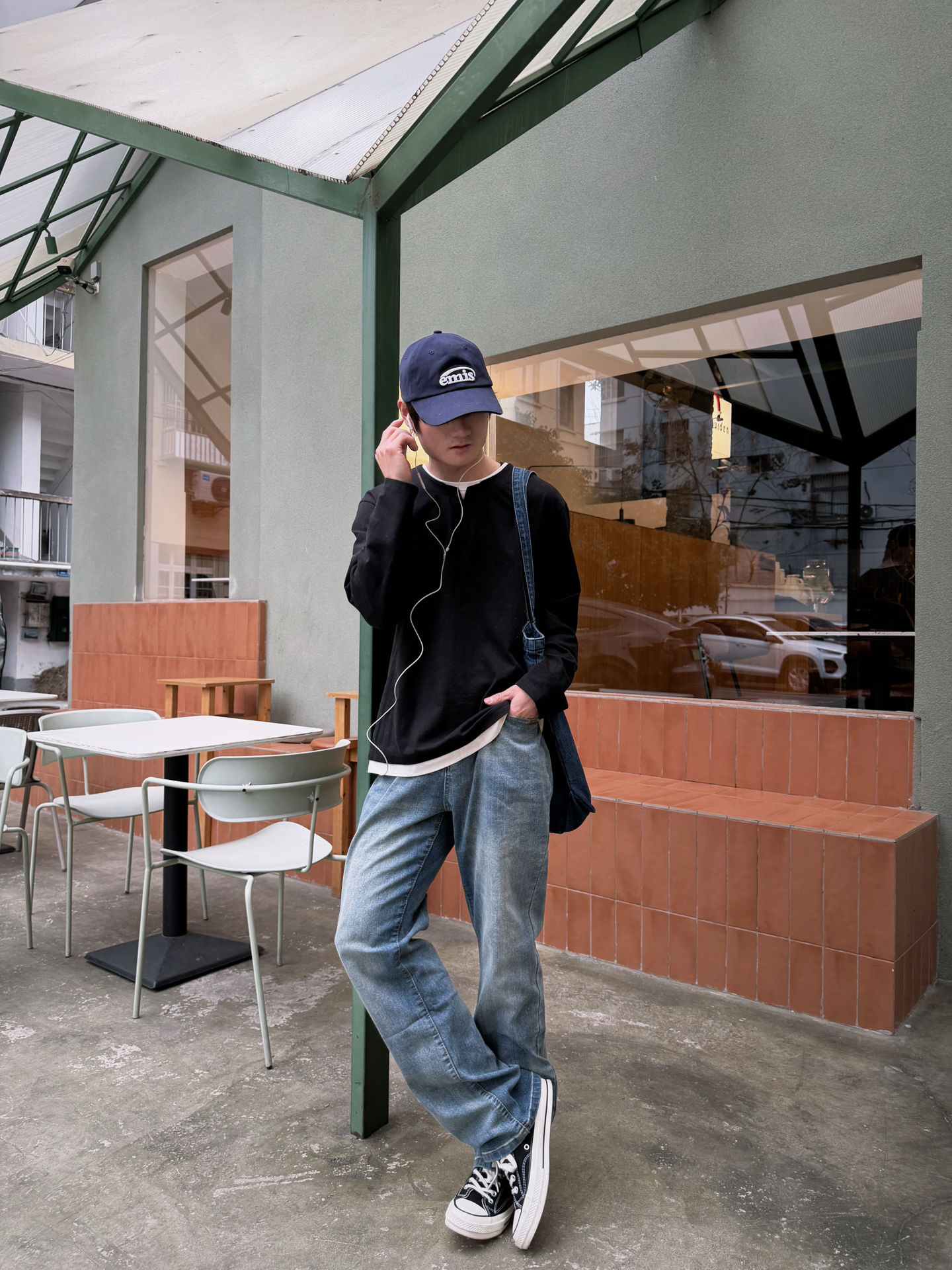阴天的老街区,用一套简单的黑蓝穿搭出门☁️ 黑长袖+浅蓝牛仔裤,舒服又自在 垂感好,贴身也比较舒服 随便找个台阶一坐,氛围感就来了 日常出街、通勤都能hold住 本人身高175/体重60,L码刚刚好 #不费力严选神裤 #谁不爱美式街头神裤 #通勤裤子天花板 #新因素FitCheck #日常休闲穿搭法则