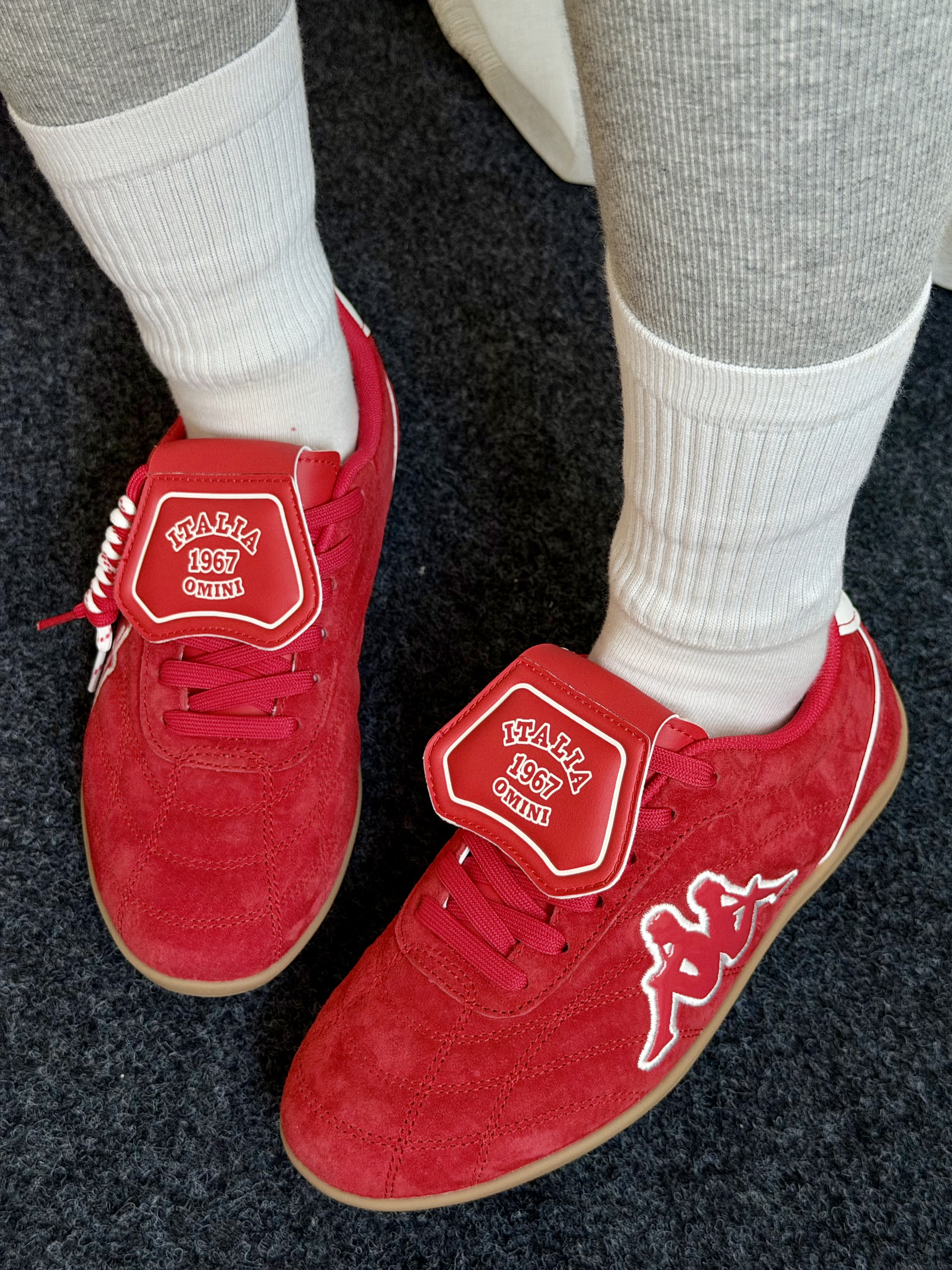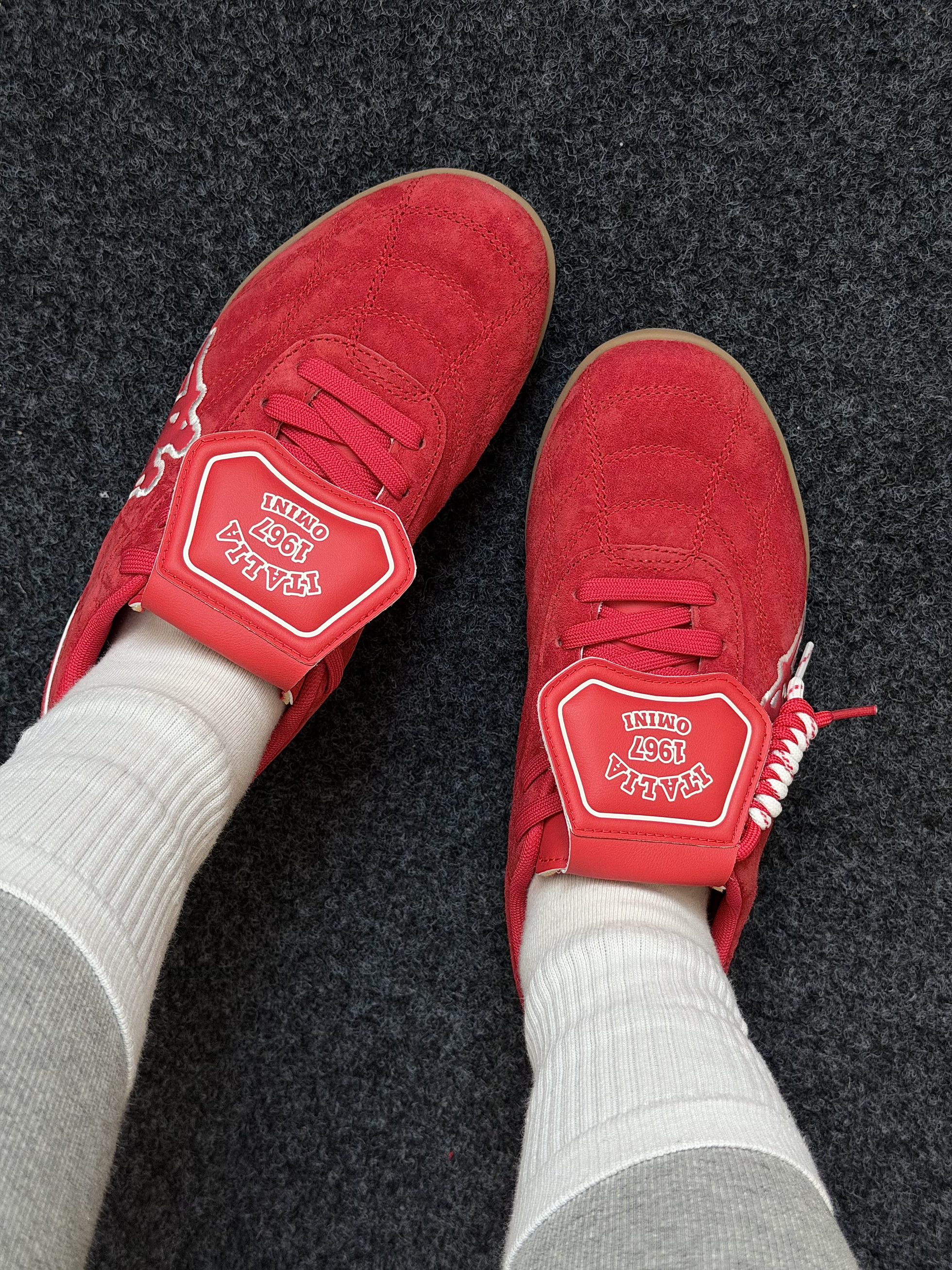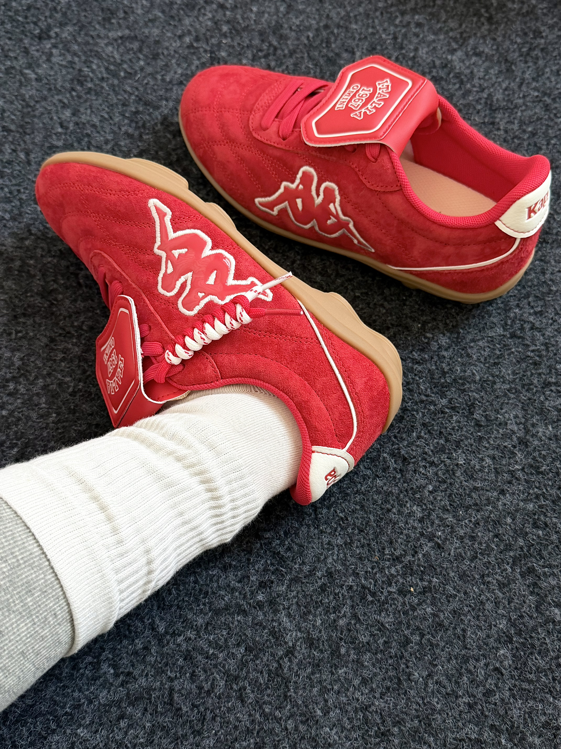 新年就要来点红❤️ 这双Kappa 复古红德训鞋尊嘟是绝了~ 素新年氛围感担当没错了! 鞋面麂皮材质高级感质感满满搭配复古鞋型👍 日常穿它配牛仔裤,休闲裤都吼吼看! 软乎乎的脚感走一天下来都不累👌 新年穿上它从头红到脚踩鸿运啦~ 过年穿它在家走动都觉得开心敲有节日氛围感~