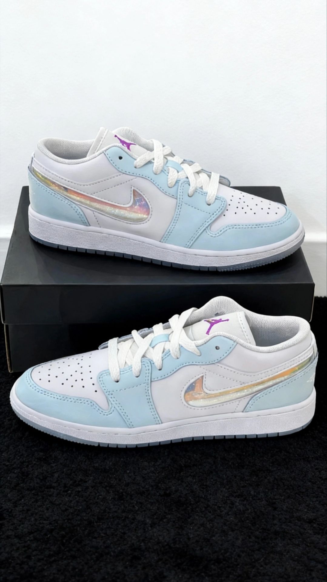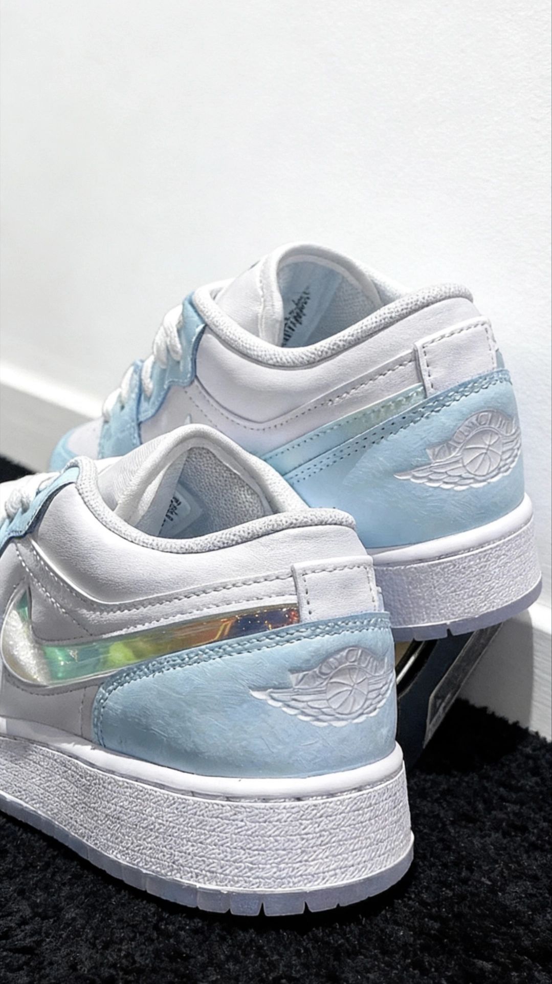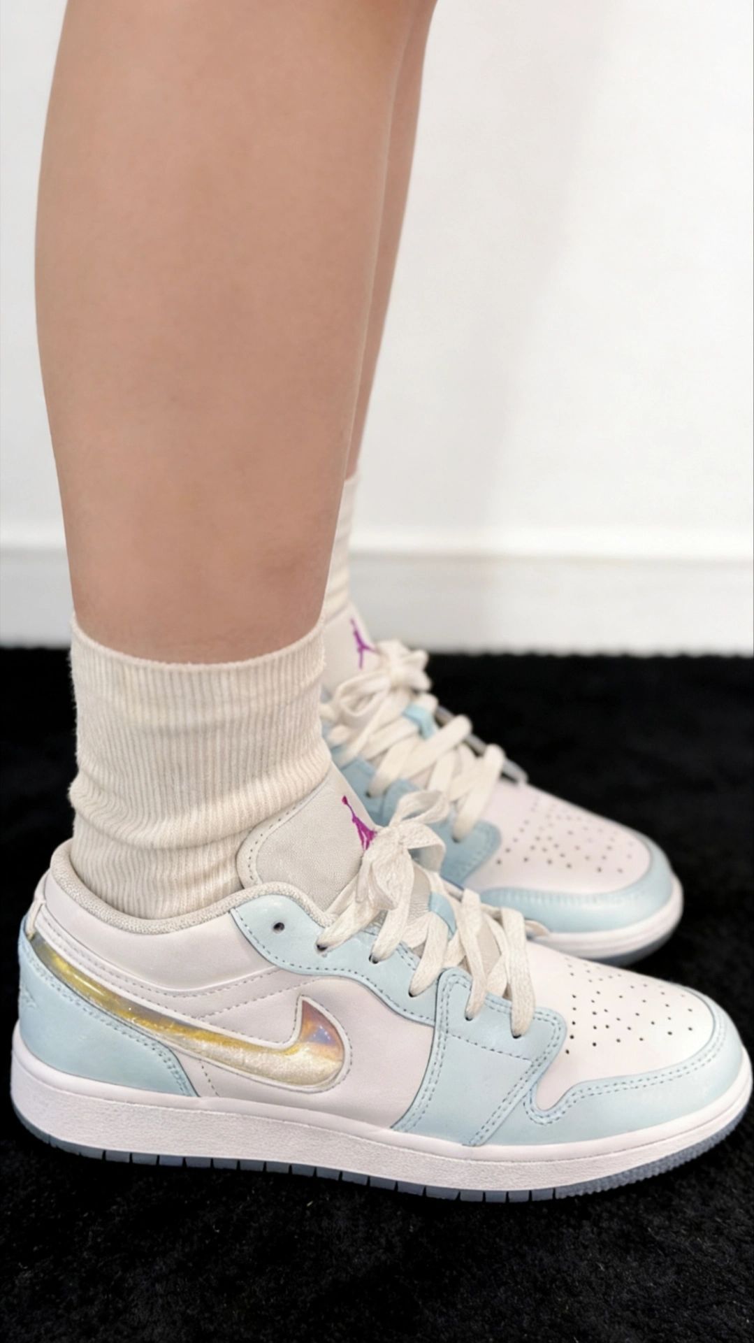 姐妹们!谁说AJ1只能黑红禁穿?这双白蓝牛仔限定,直接把我拽回高中暑假在校门口等暗恋男生打完球的傍晚☁️💙 一、开箱初印象:白蓝牛仔,比纯白更耐看的心机配色。 开箱那一刻,鞋舌上那抹“浅金色Jumpman”像落日余晖打在鞋面上——白色荔枝纹皮是云,浅蓝牛仔布是天空,深蓝Swoosh是傍晚吹起的风。不是那种“第一眼炸裂、第二眼疲劳”的荧光撞色,是干干净净的日系少年感,像把蓝天白云穿在了脚上。 这...