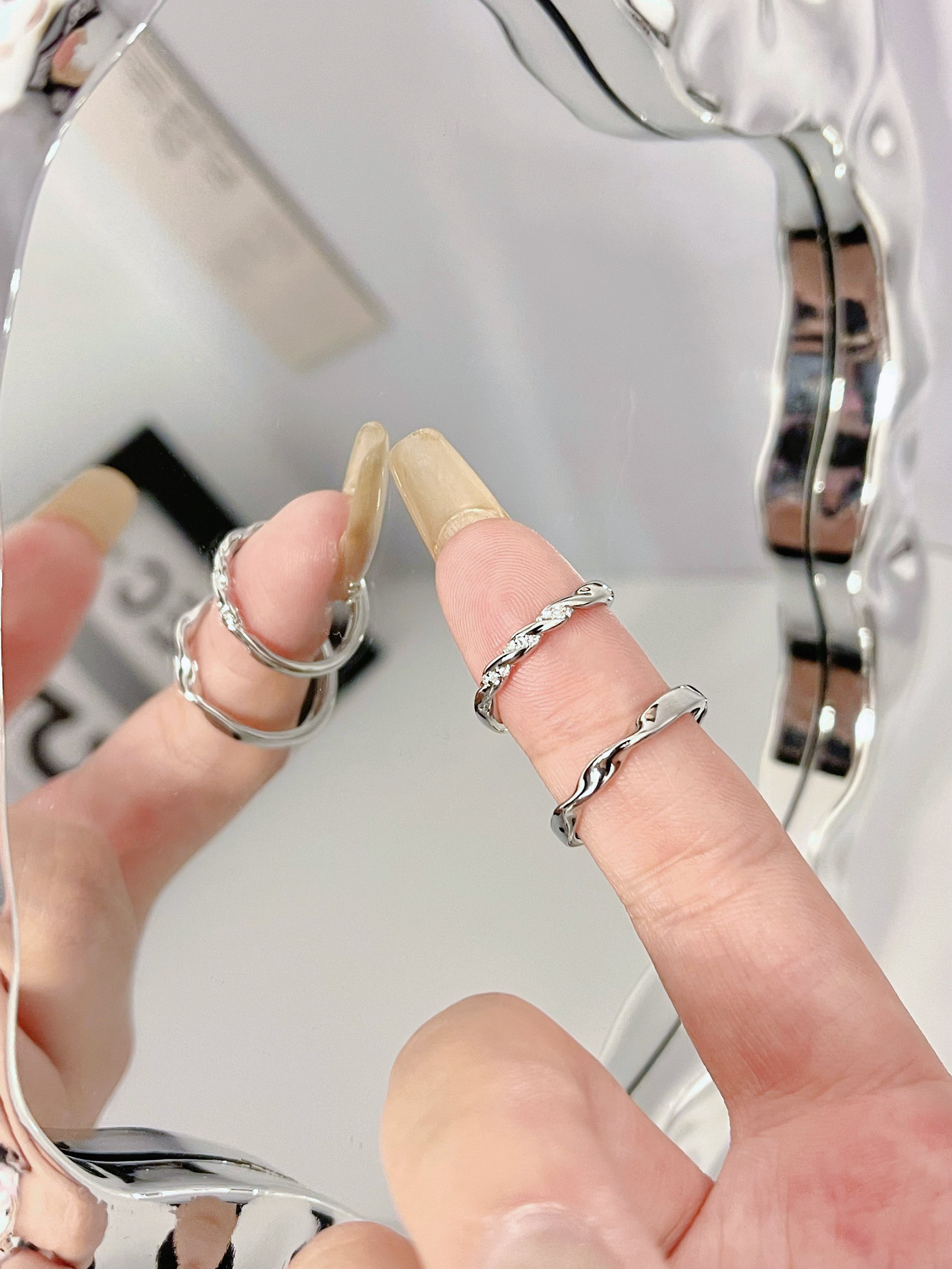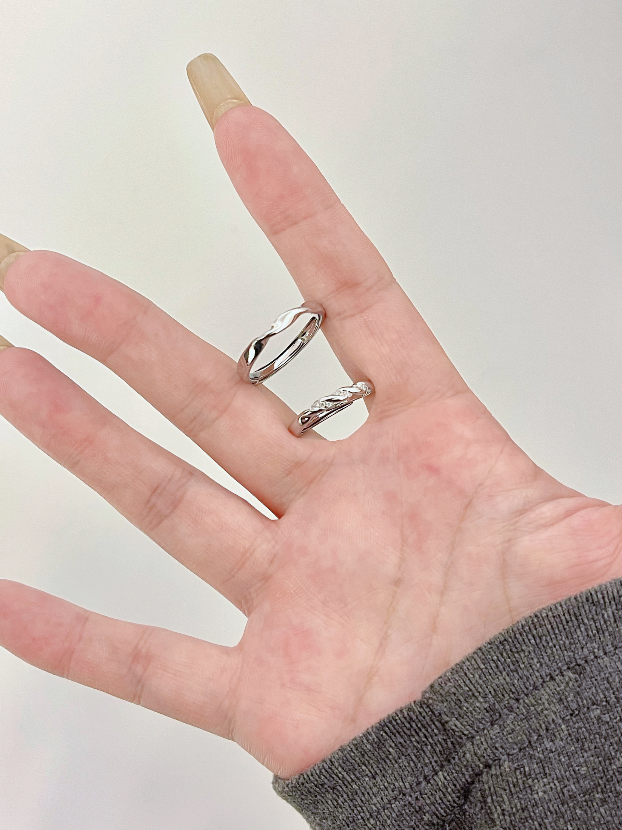 情侣对戒真的要看莫比乌斯环💍 经典又时尚的款式 百搭又好看 日常通勤约会佩戴都合适 女戒带小碎钻bulingbuling的 很精致 男戒简约素戒 低调有质感 可调节大小 佩戴起来也方便 戴上手显得手指很纤细 很甜~还很提气质🎉