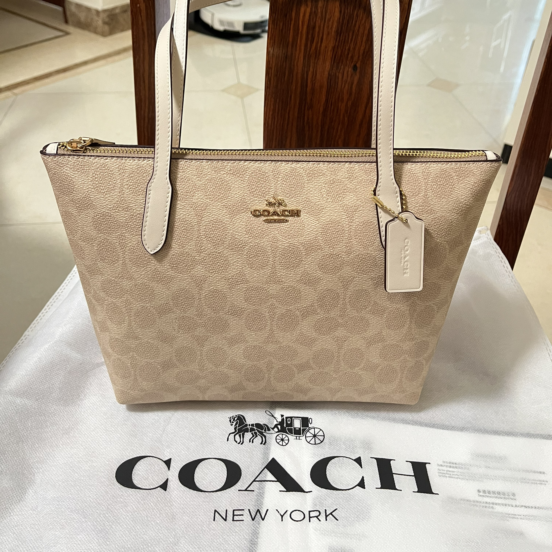 本篇笔记关联了Coach city 33 磁扣拉链开合涂层PVC拼皮革购物袋单肩托特包手提包 粉笔白色 等商品,为用户提供真实的使用体验和购买参考。
