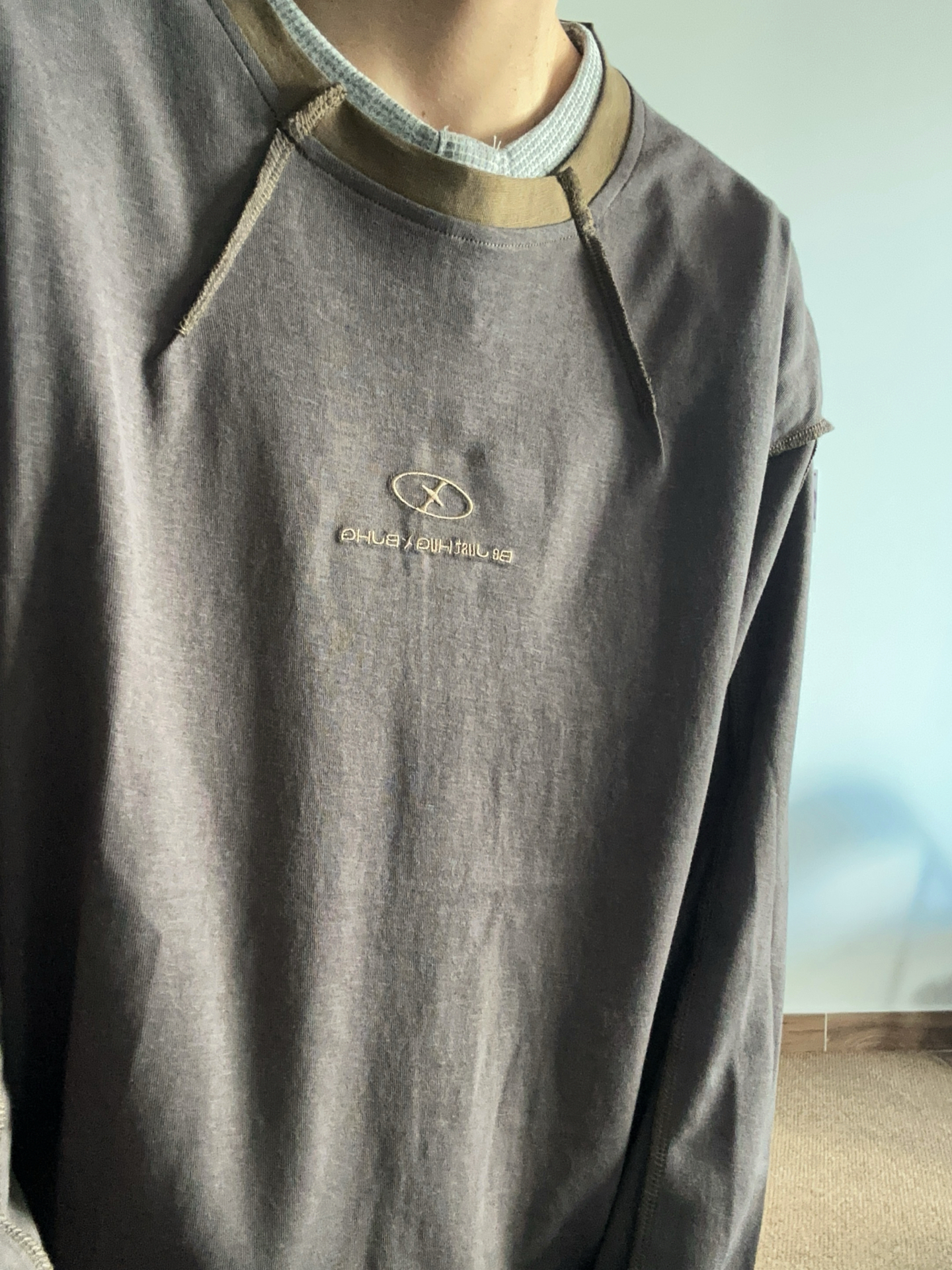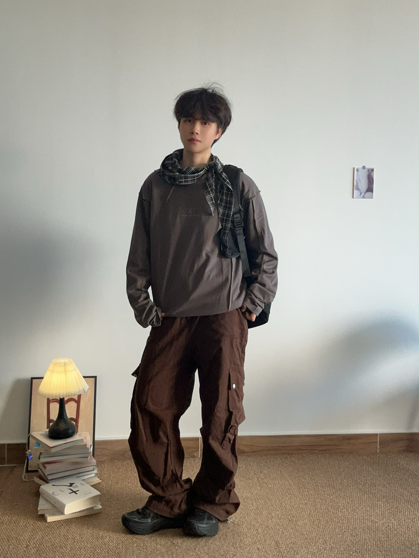 提前开始春季穿搭✌︎' ֊' 上衣是 #BJHG 撞色复古长袖 有趣的是车缝线都在外面还挺特别~ 单穿也好看系列 胸口和后背都有品牌刺绣工艺 搭配咖色工装裤和黑色运动鞋👟 简单的开春ootd #预制我的过年战衣 #BJHG的ootd #BJHG谁穿谁好看 #开春穿搭爆改 #秋日男生穿搭长裤氛围感