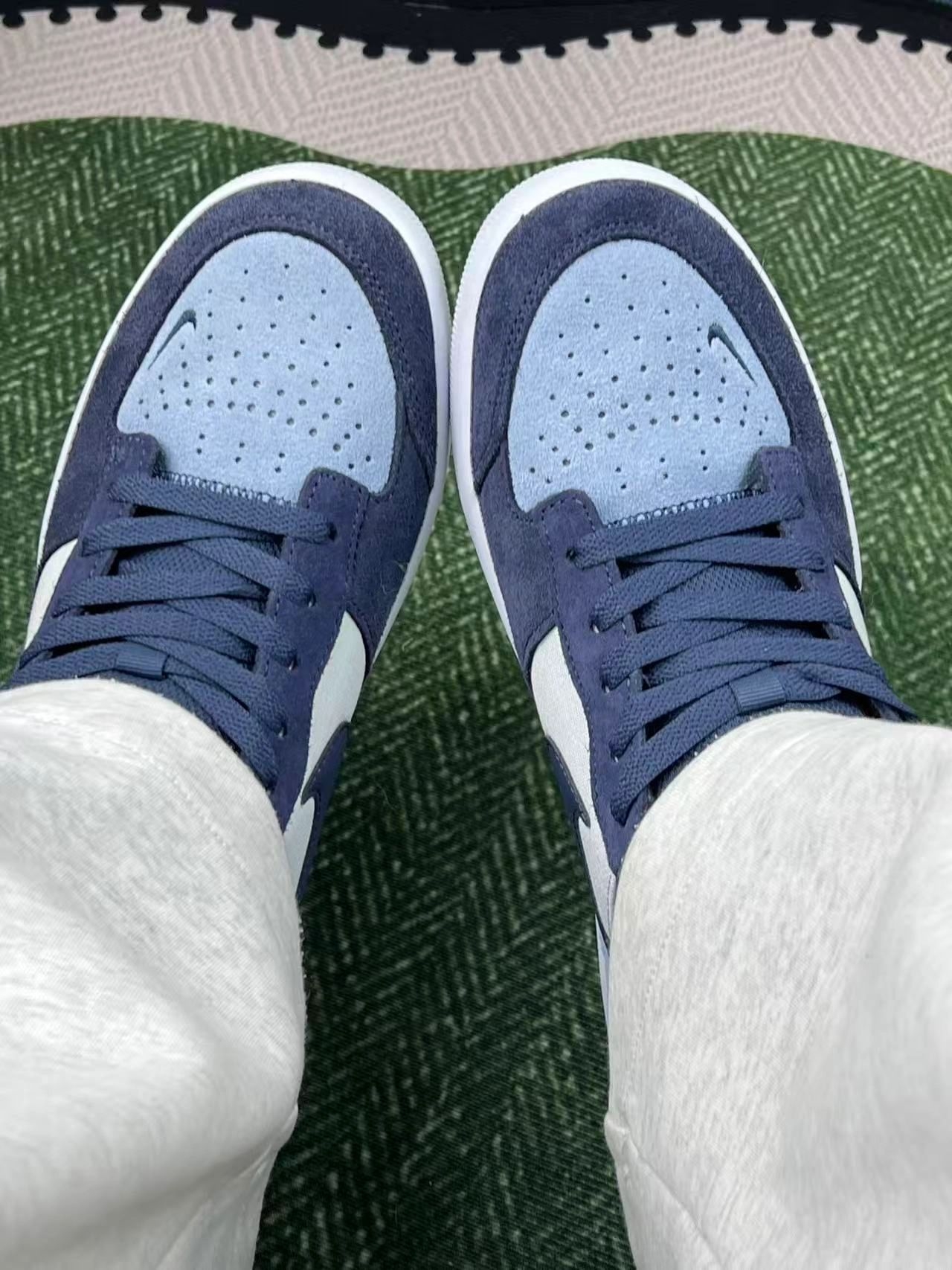 麂皮和帆布拼接的质感很舒服,雾霾蓝+藏蓝+米白的配色很低调,搭牛仔裤、运动裤都不突兀,日常通勤、逛展都能穿。脚感偏软弹,走大半天路也不会太磨脚,鞋舌厚实,系紧鞋带后包裹感还可以。 但缺点也挺明显:麂皮部分特别容易沾灰,一蹭就显脏,打理起来有点麻烦;鞋身偏薄,秋冬单穿会有点冻脚,得配厚袜子;而且鞋底纹路不算深,雨天走瓷砖路要小心打滑。 整体就是一双“无功无过但好搭”的鞋,胜在配色耐看、风...