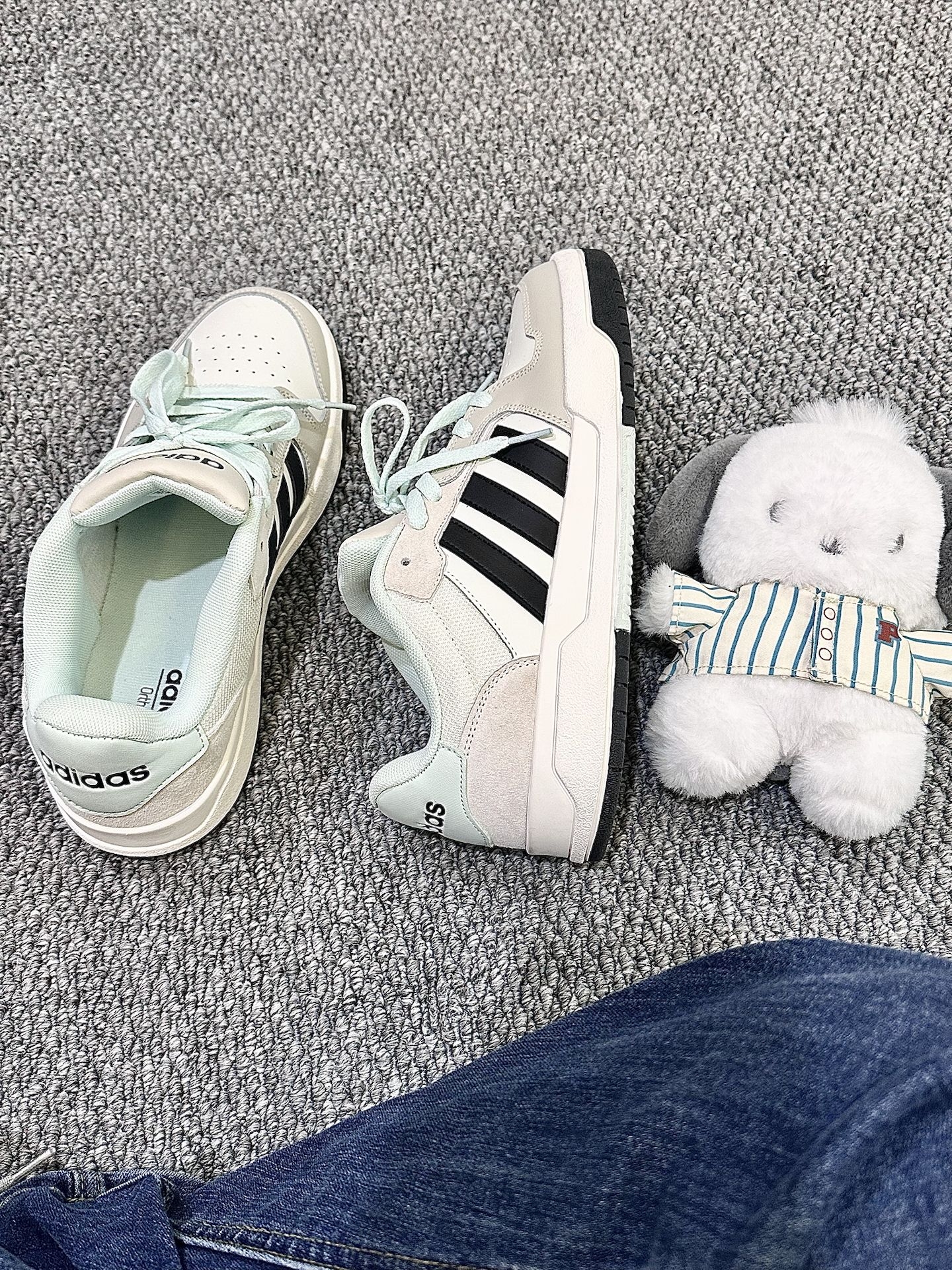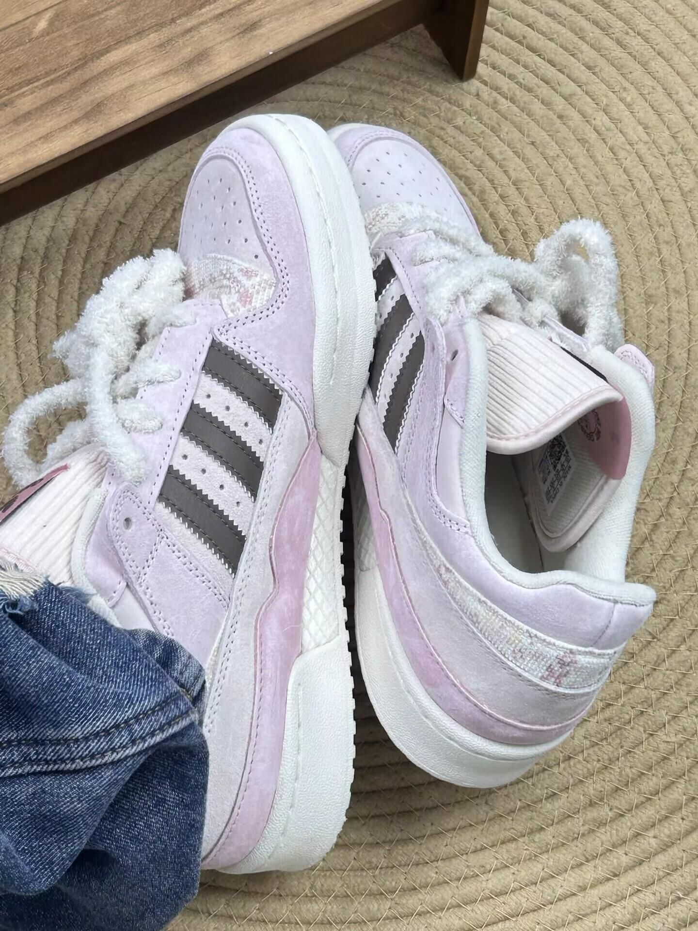 挺好看的颜色的 板鞋的高度也刚刚好 有一点点微微增高的效果 而且鞋子的侧面也有简单的图案 搭配上我的帕恰狗 感觉可以出去玩一天呢 #阿迪达斯adidas #预热一下我的秋冬季穿搭