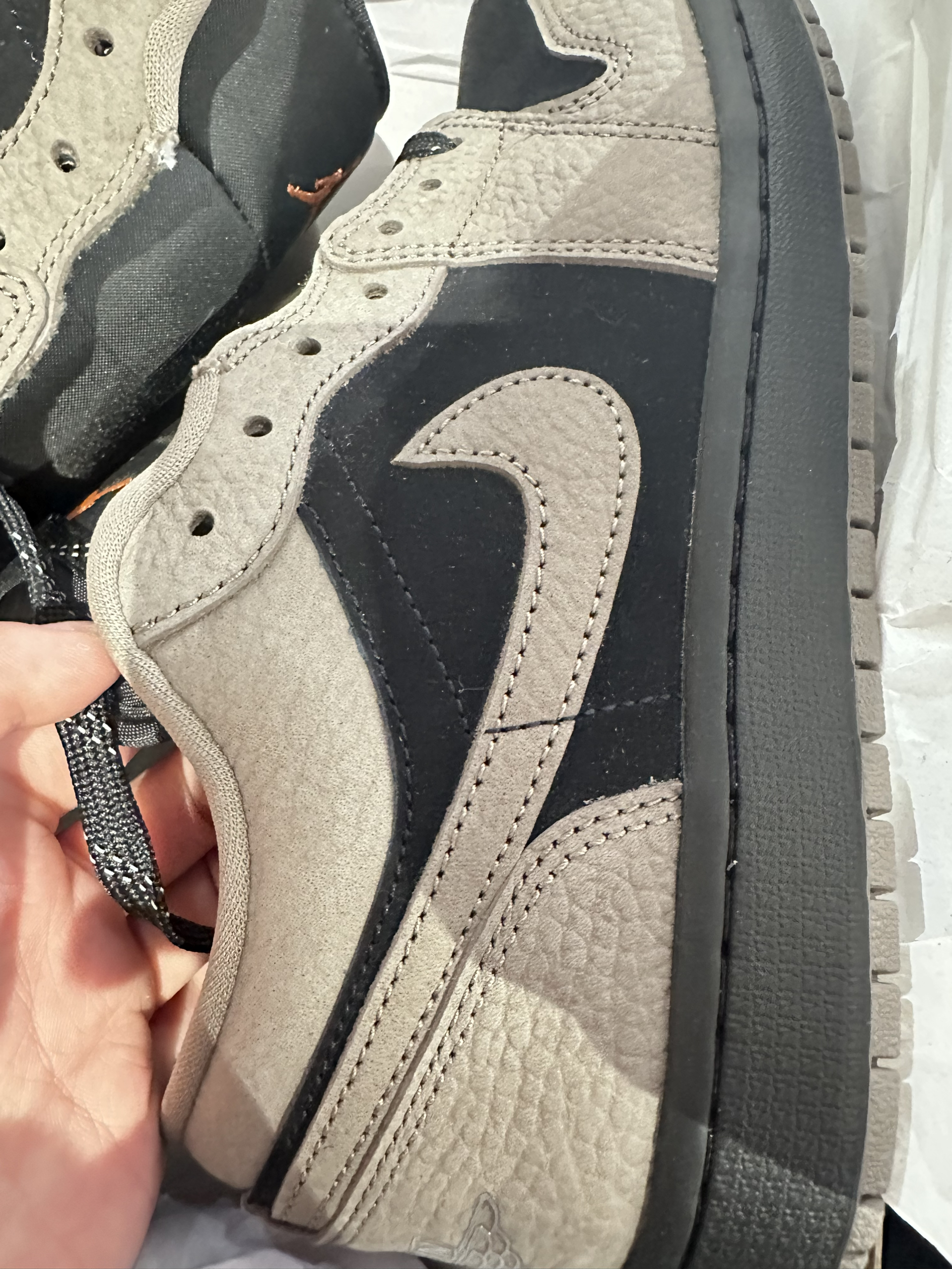 被这双AJ1 SE的细节狠狠拿捏了!细腻的麂皮材质,恰到好处的棕黑撞色,还有鞋身的线条设计,每一处都透着精致。脚感也很舒适,走久了也不累,是颜值与实力并存的一双鞋。