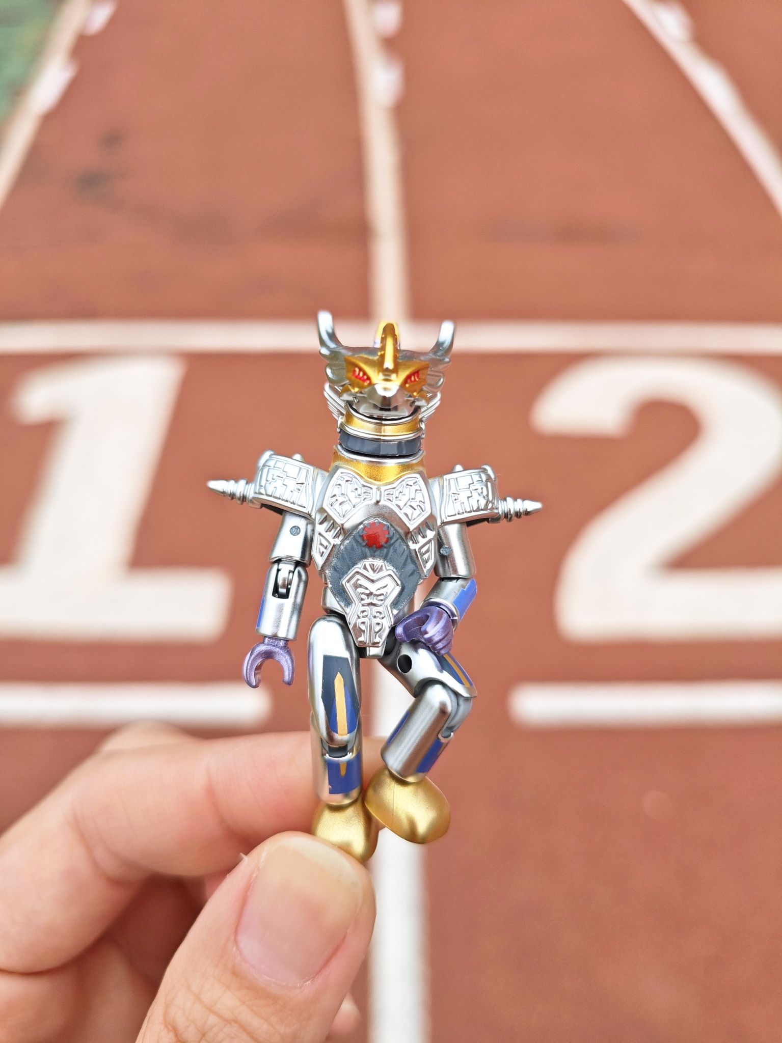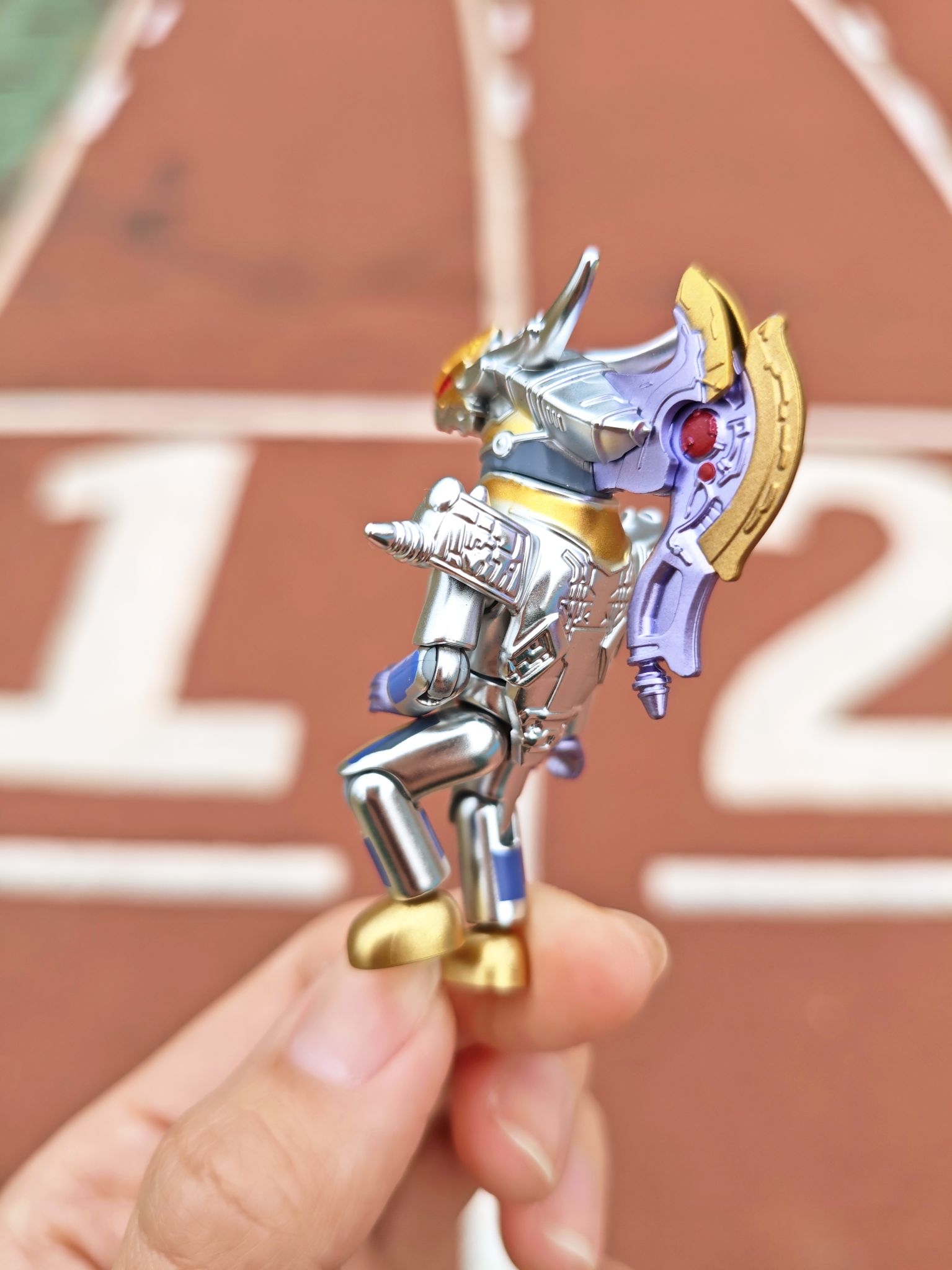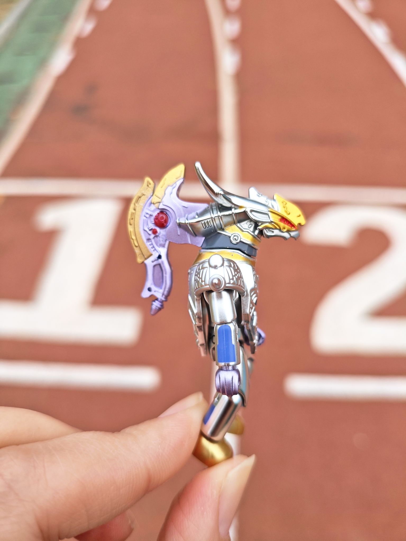 加拉特隆MK2真的太帅了,银金蓝的配色在跑道上拍出来质感拉满,手里的大斧头也超有分量。
