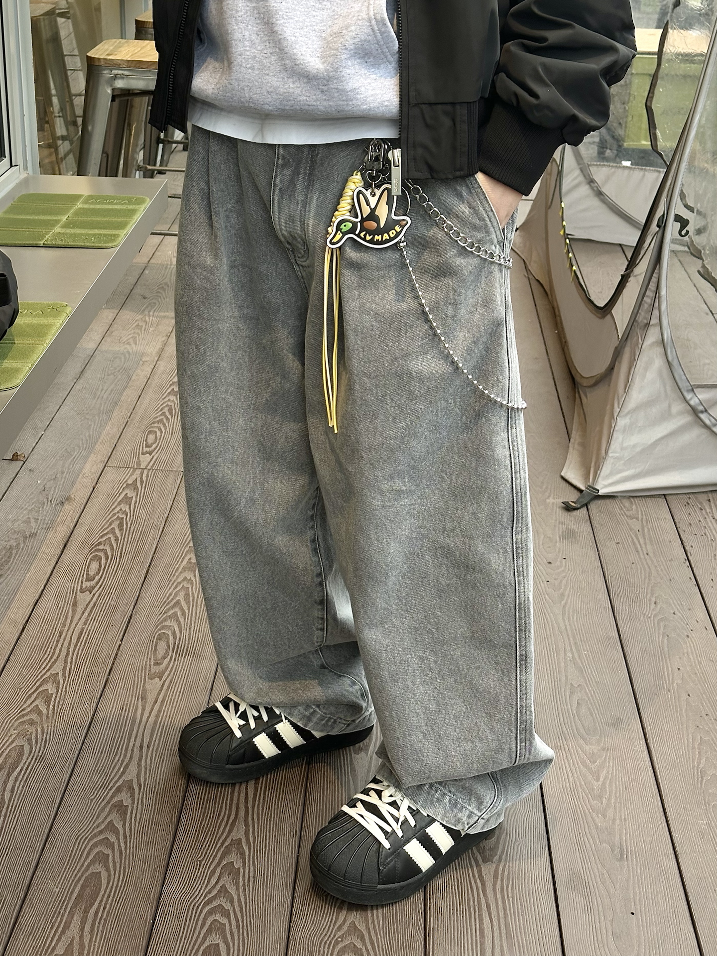 哈喽👋🏻大家好哇 这里是🪨石地夫的穿搭小日记📝 - 今天出门是日系街头boy穿搭🛹 上身是卫衣叠穿oversize短款夹克 黑➕灰的搭配简单又干净✨ - 下身是 #ODDCIRKUS 的灰色牛仔裤 这个水洗灰看着真的好舒服🤩 经典的日系宽松廓形版型 穿上就自带松弛感☕️ - 裤脚口微收,不容易拖地☑️ 对鞋子的选择就会丰富很多👍🏻 📏本人173,70kg,穿的是L很合适 #不费力严选神裤 #预...