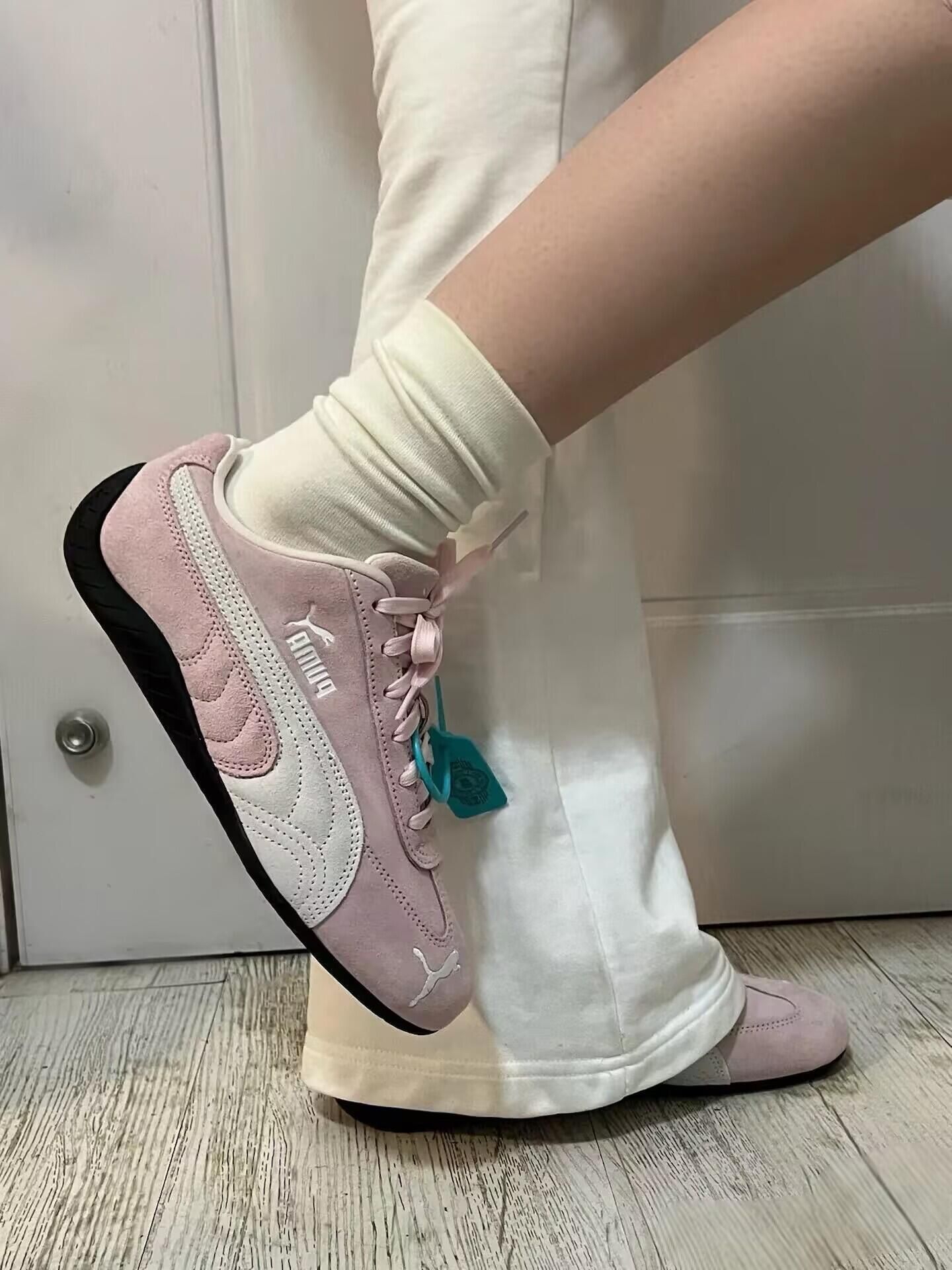 这波直撞我心巴!复古薄底鞋 逃不过puma赛车鞋这双樱花粉 speedcat真的粉粉嫩嫩的~ 实物好看 上脚更好看! 鞋身柔软上脚舒适!