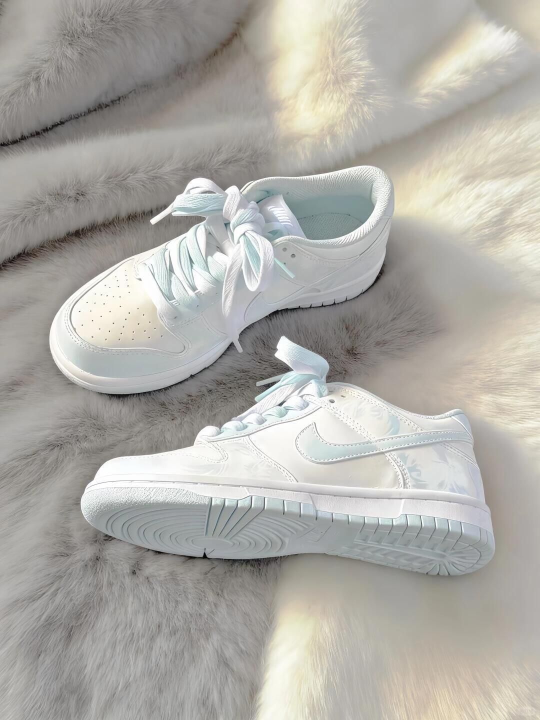 挖到宝了!不愧是我严选出来的 这双冰魄Dunk的渐变纹理太美了 奶fufu的白蓝调调温柔又清新 鞋底的冰魄配色还做了呼应 细节感拉满 日常通勤穿完全不累脚 颜值和舒适度双在线 闭眼冲!!!