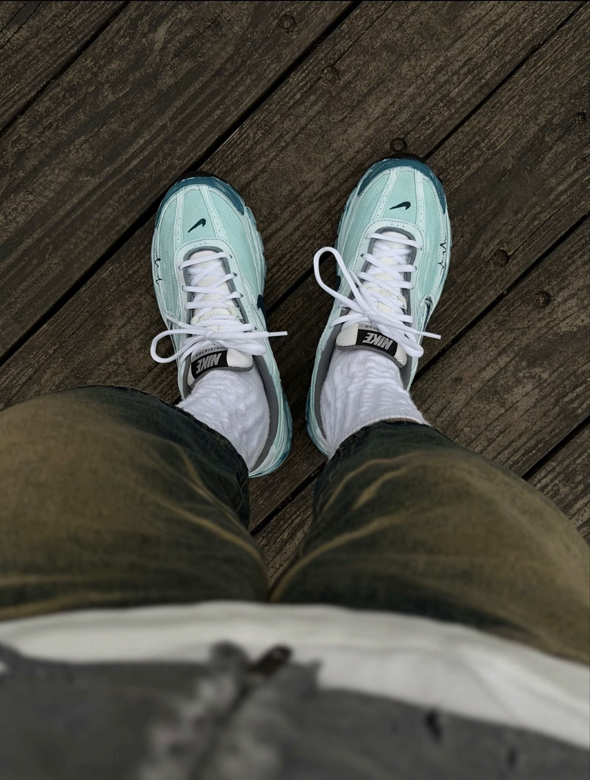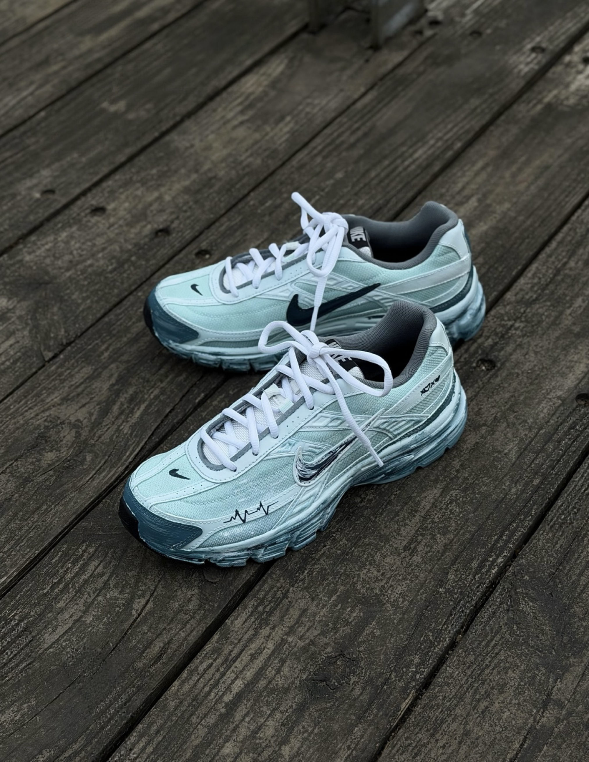 最近发现了双很有感觉的Nike定制复古跑鞋 名字就很浪漫“心跳海岸线” 鞋身是冰蓝色泼墨渐变,干净又温柔 最吸引🤩我的是手绘心电图和X🩵X🖤涂鸦 每次低头,都感觉心跳被具象化了 擦色做旧中底,不夸张,但细节越看越有味道 可谓是平衡了复古感和运动感‼️ 3cm发泡中底上脚软软的,悄悄拔高又不会累脚 日常拿去配牛仔裤、工装裤和七分裤都很和谐 除了穿搭,轻运动慢跑穿也合适 ⚠️尺码方面我平时穿42,这...