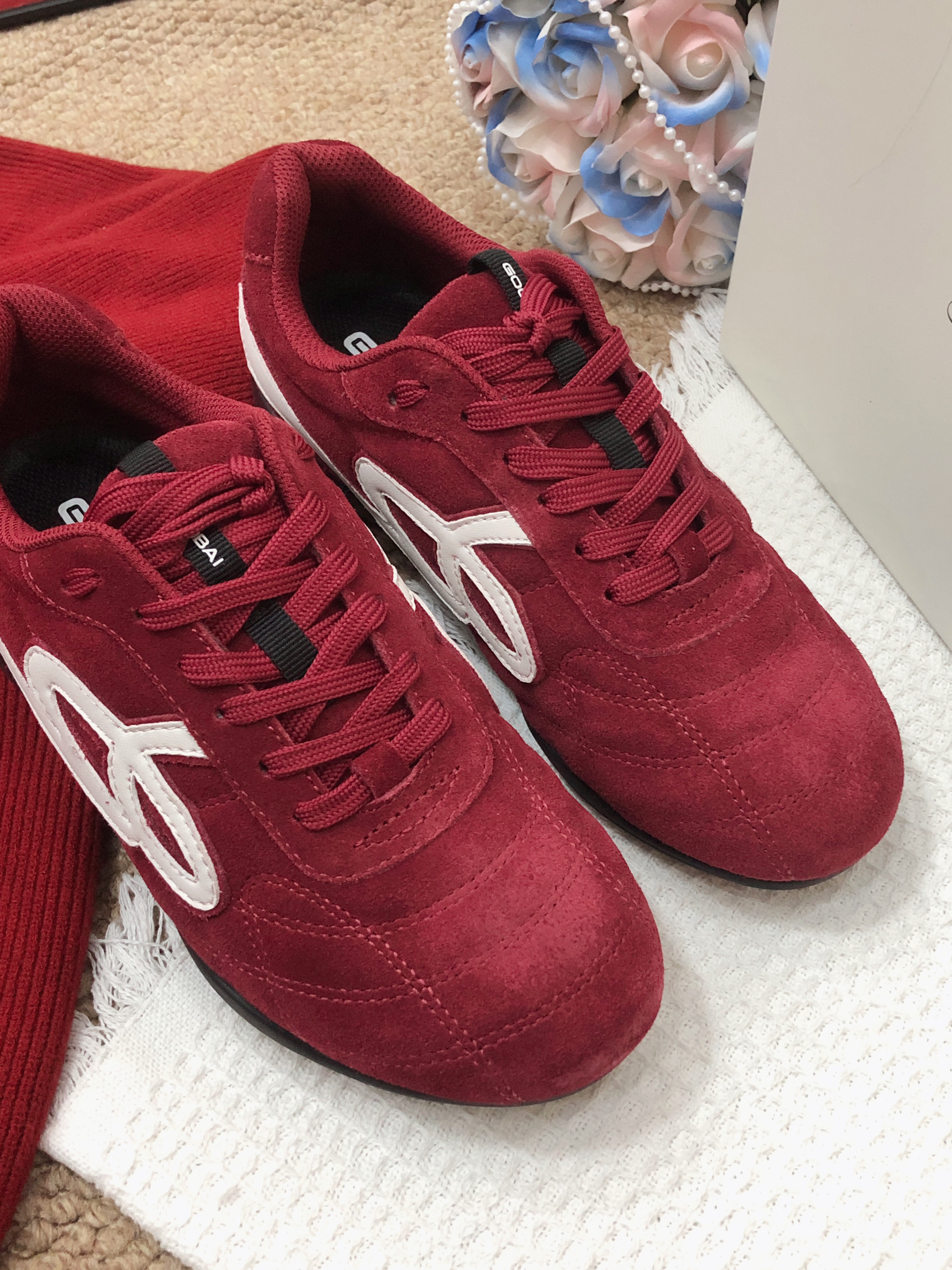 马年本命红鞋我直接锁死GOODBAI红丝绒! 复古圆头巨修饰脚型,丝绒质感高级又显贵,温柔得恰到好处。 上脚软糯舒服,平底暴走也不磨脚,零磨合期太友好~ 红白撞色鞋带经典耐看,搭大衣、牛仔裤、休闲装都很绝,新年氛围感直接拉满。 显白又提气,上脚自带好气色,男女同款都能穿, 马年开运穿搭靠它,喜庆又高级,出门被问爆✨