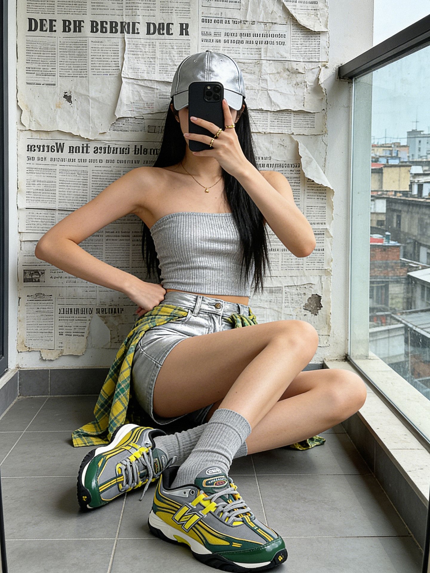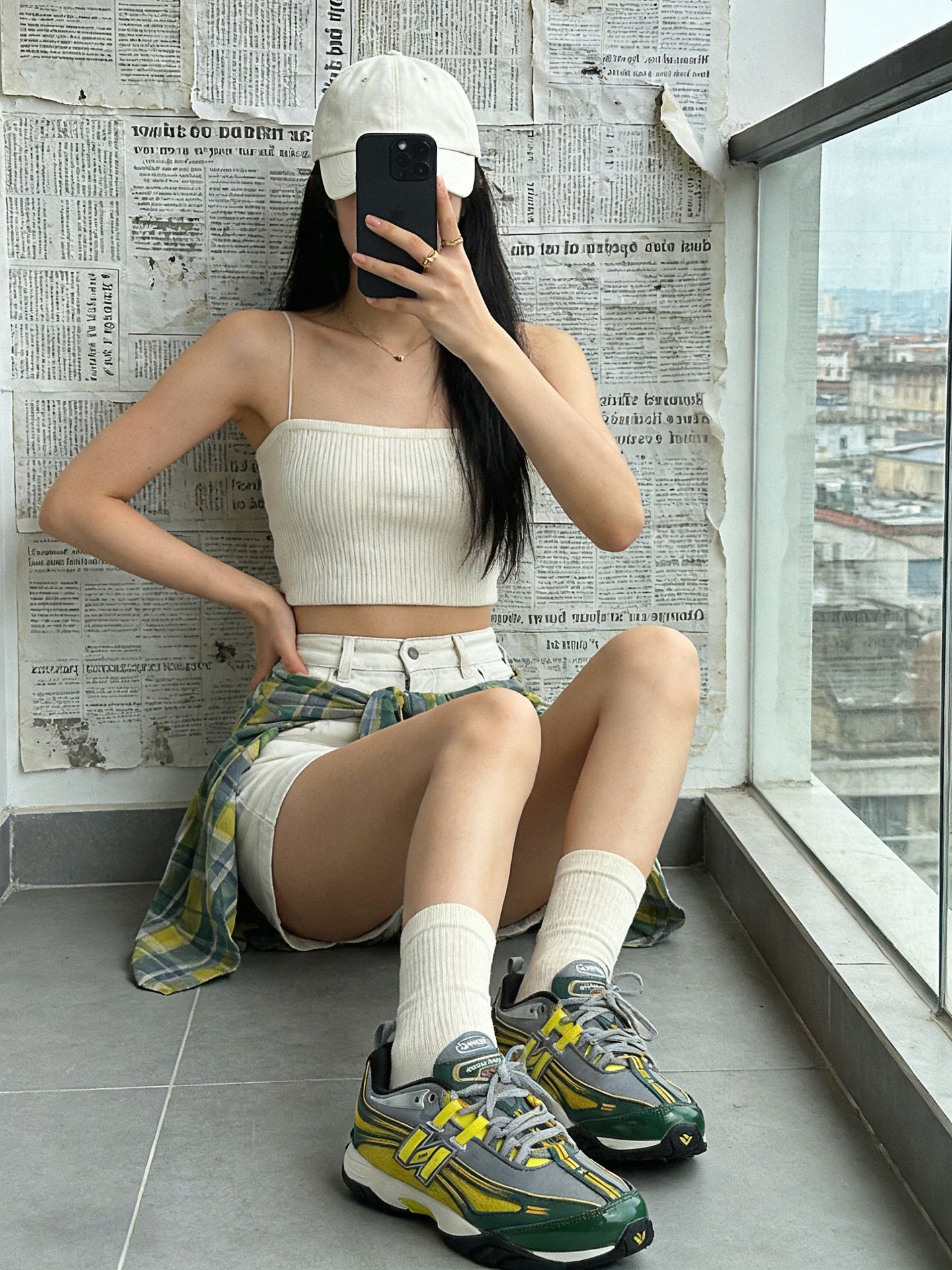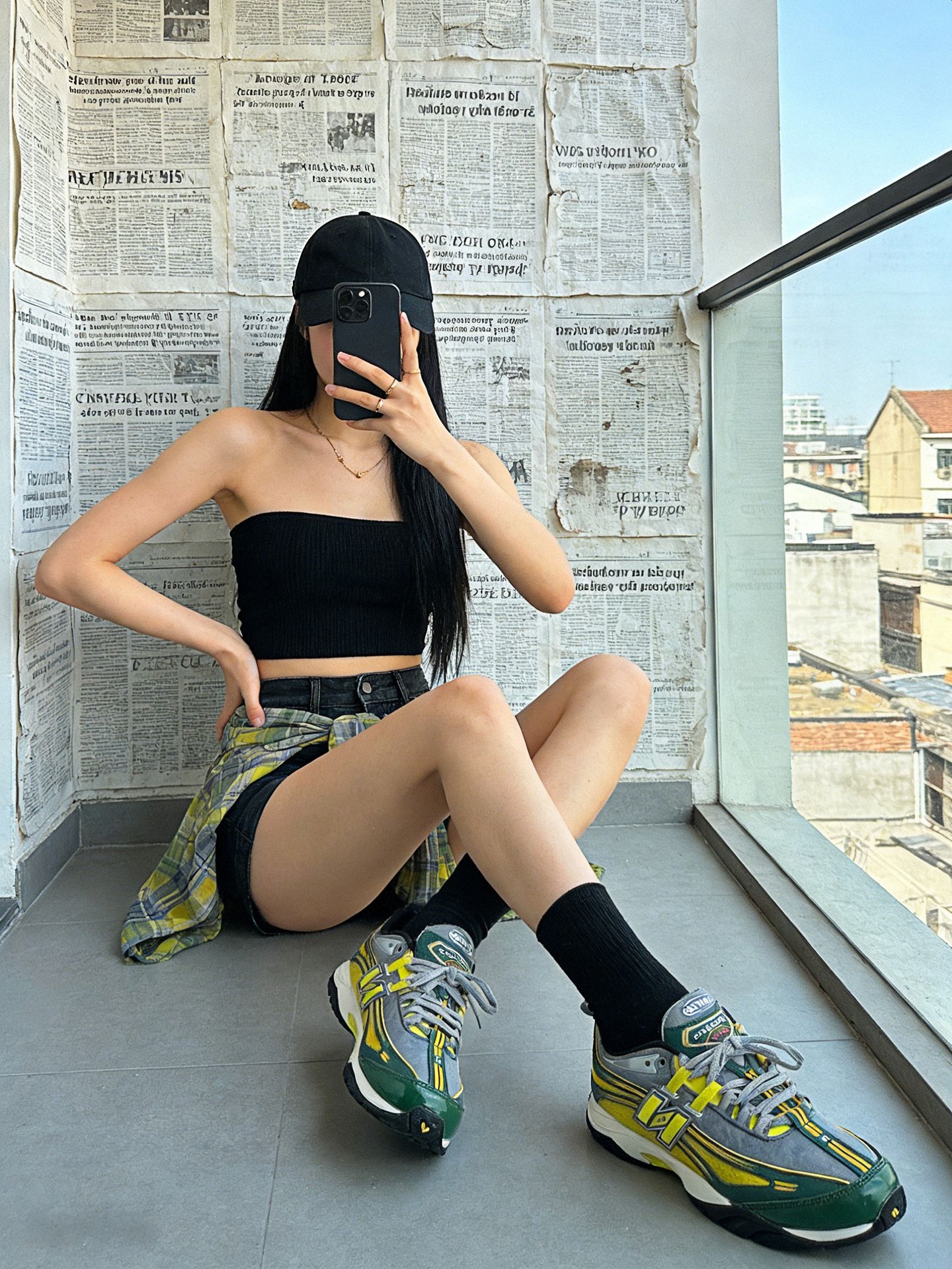 📸 阳台拍照神姿势 - 侧身坐窗台 手撑地面腿微屈🦵 手机挡脸显颅顶 - 单脚屈膝脚尖点地 另一只腿伸直拉长比例✨ - 双手叉腰顶胯 背景选报纸墙+城市景层次感拉满🌆 👚 一周穿搭不重样 👉 荧光黄抹胸+格纹裙 元气少女即视感💛 黄袜呼应超吸睛 ✅ 白色波浪纹吊带 甜酷辣妹必备⚪️ 配银色短裙未来感拉满 💡 黑色抹胸+高腰裤 显瘦显高一绝⚫️ 小个子闭眼入 👟 宝藏单品运动鞋 - 黄绿撞色太绝了!...
