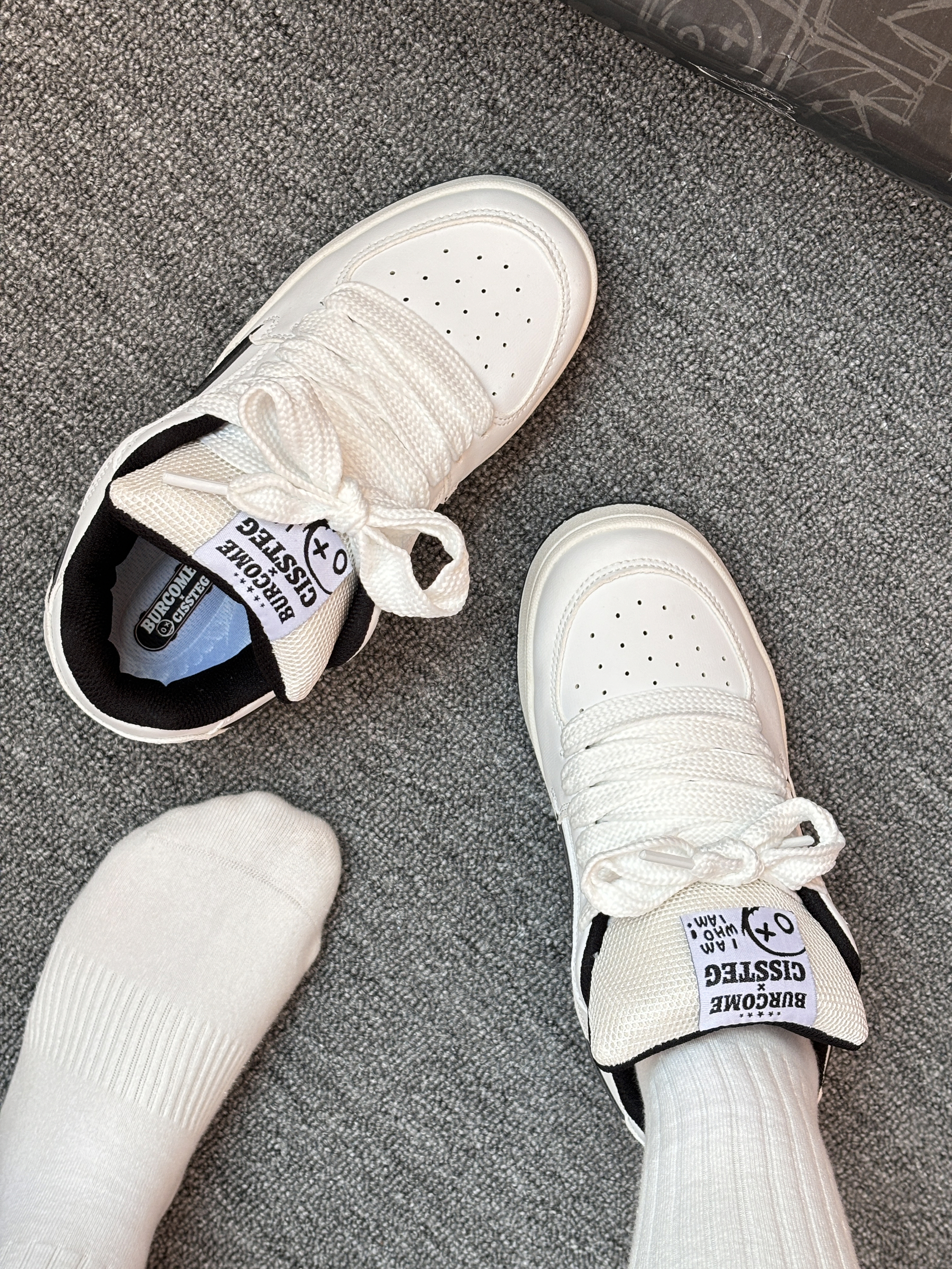 鞋侧的闪电⚡️设计蛮有青春气息的,低调中带着点酷飒😎黑白简约又百搭🎧皮质挺软,鞋型也很不会显得脚很大,日常上学通勤随便搭配一条牛仔裤或者休闲裤都好看