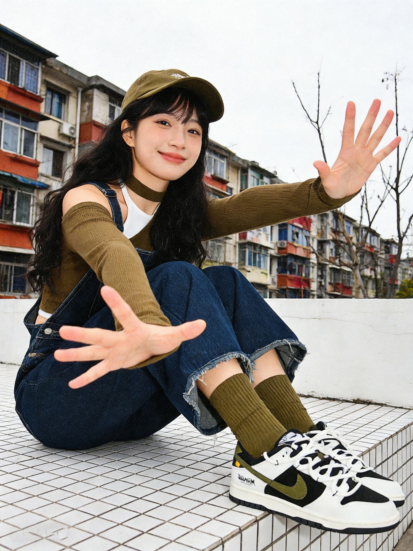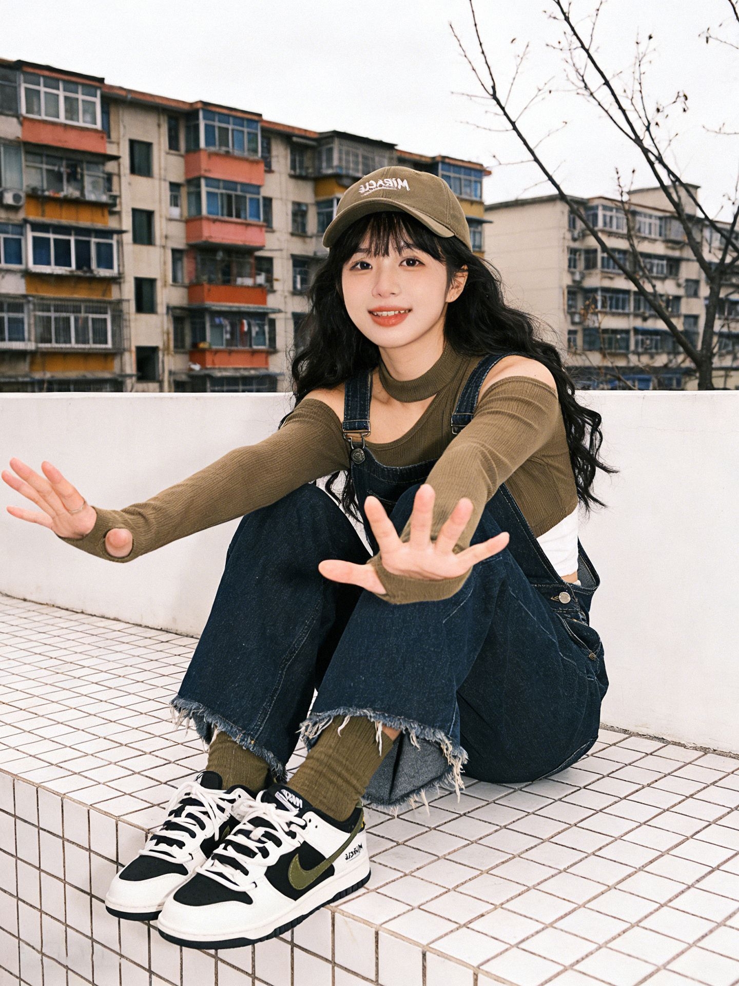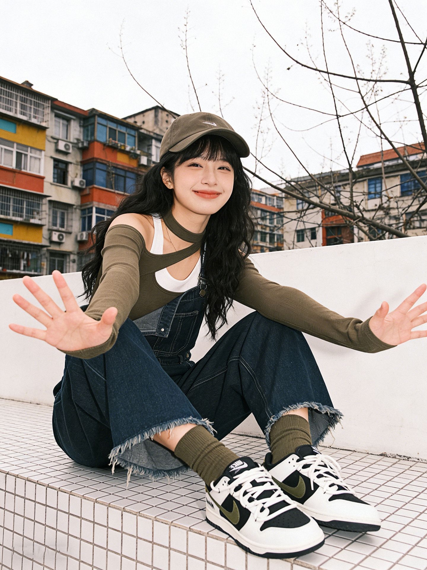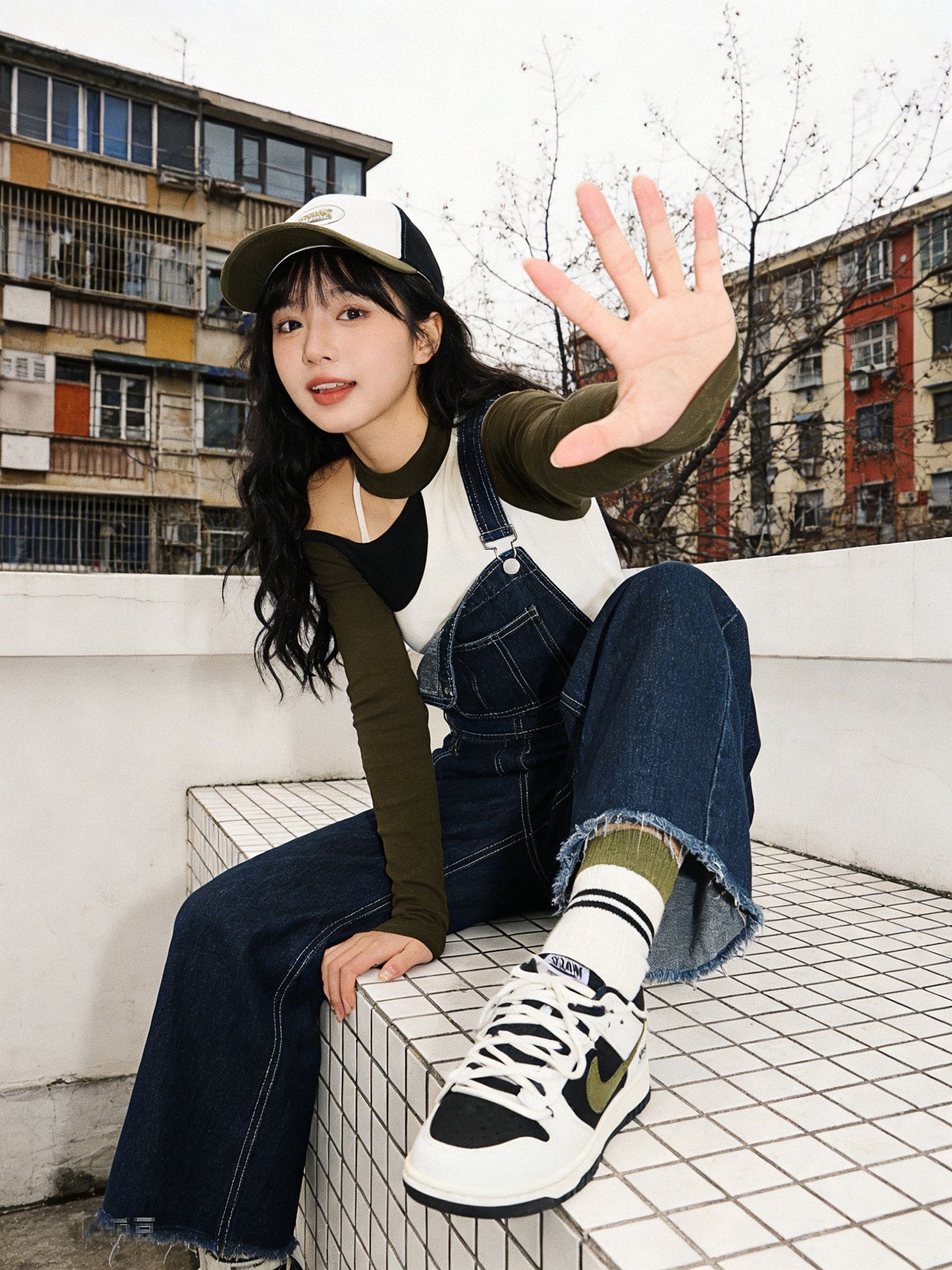 谁懂啊!这双拼接板鞋直接拿捏住了秋日街头氛围感🤙✨ 鞋子细节:黑白橄榄绿配色复古又耐看,皮革拼接麂皮材质,手感细腻又很显质感,鞋身的手绘字体点缀增添了随性的街头腔调,上脚舒适度拉满,暴走一天都不会累。 👔今日穿搭思路:呼应鞋子配色搭配了同色系挂脖上衣,内搭简约白打底增加层次感,搭配做旧牛仔背带裤,少年感和甜酷感平衡刚刚好,同色系棒球帽和中筒袜让整套穿搭更完整统一。 📍阴天的老社区自带胶片滤镜,坐在...