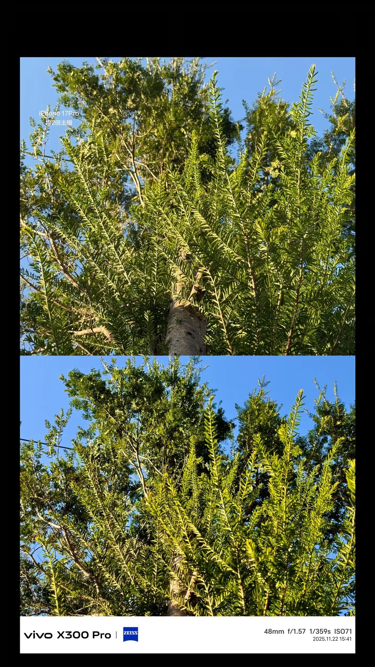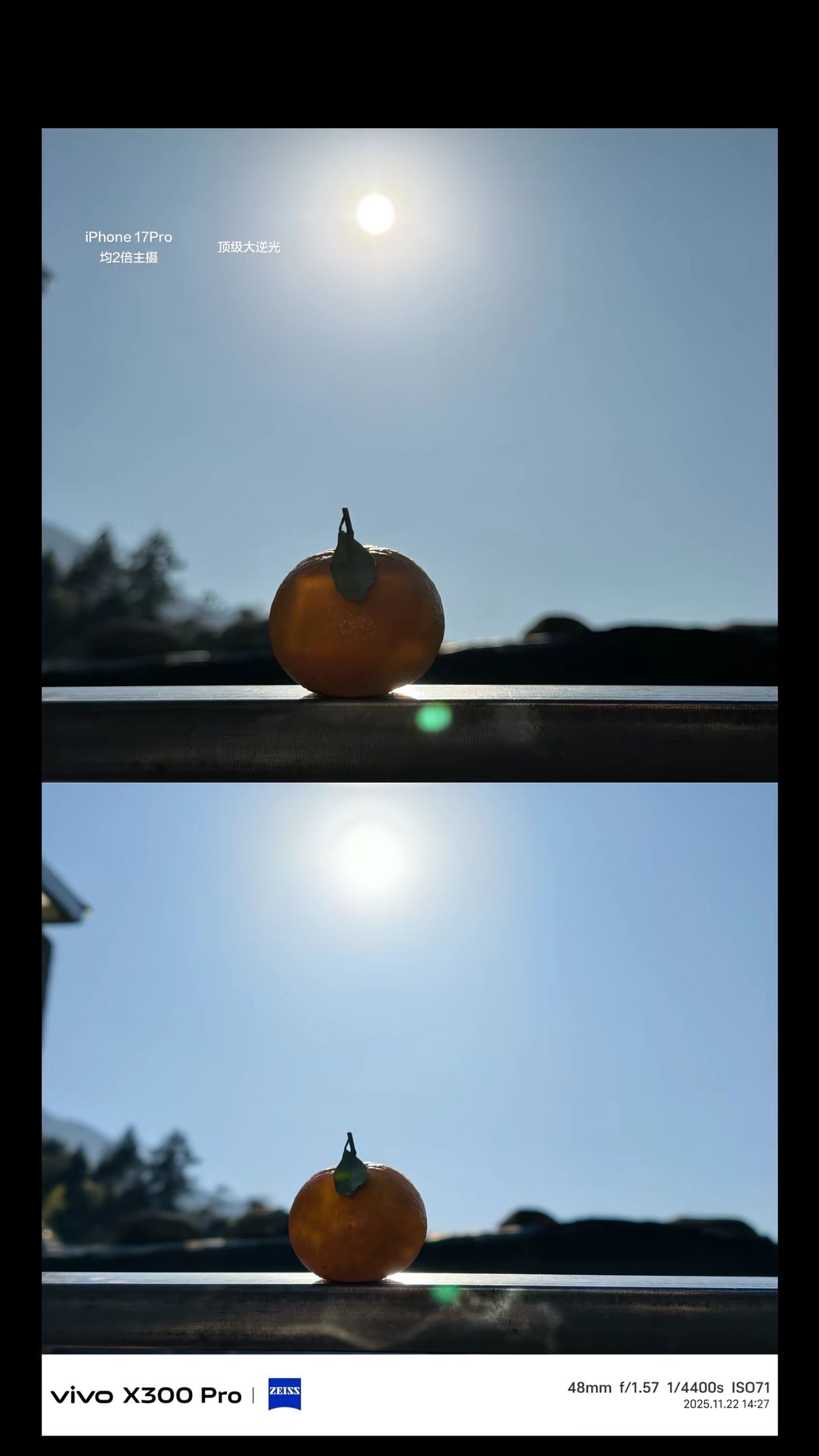 iPhone 更偏向真实还原,vivo 更偏向浓郁生动的“德味”色彩且vivo 在大逆光场景下的动态范围和色彩表现更占优势。 因此如果你是喜欢真实、克制的后期党,iPhone 17 Pro 更适合; 如果你是喜欢浓郁、生动的直出党,vivo X300 Pro 会更对味。