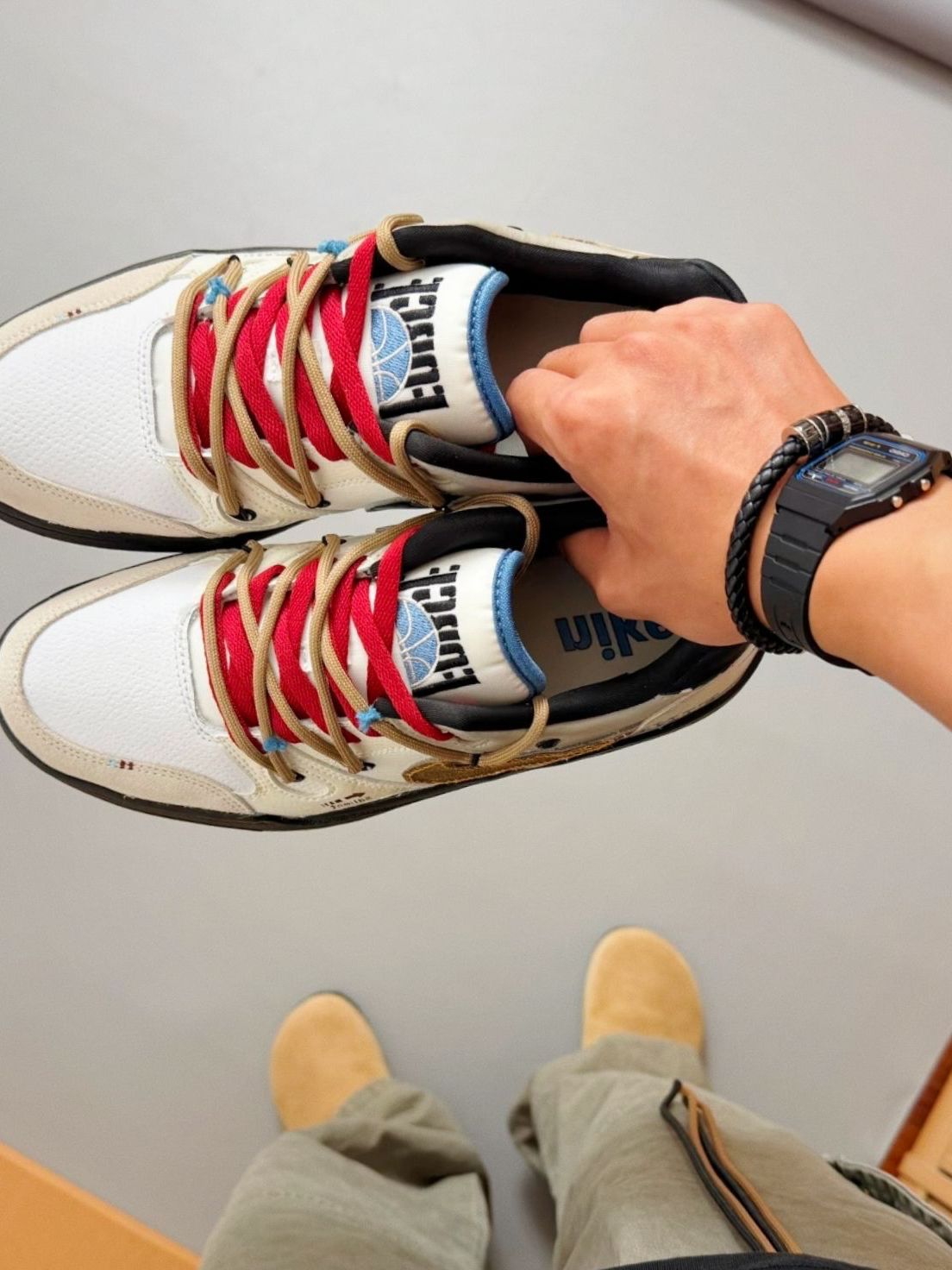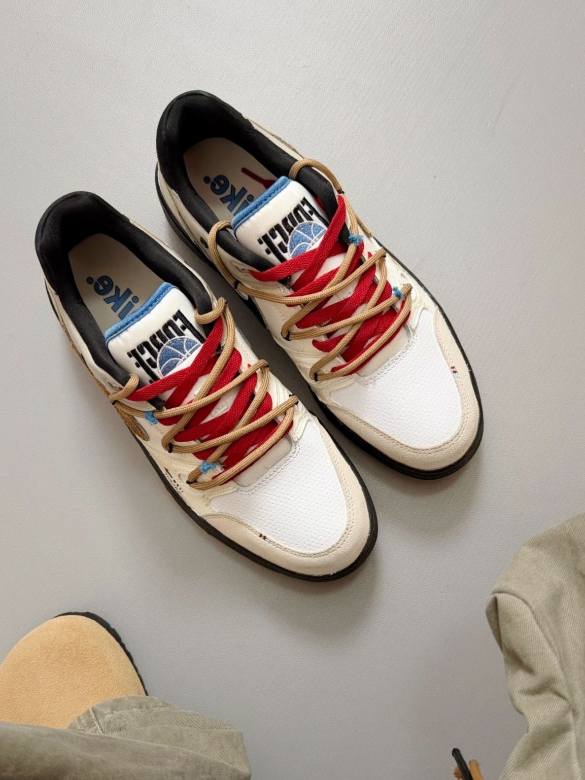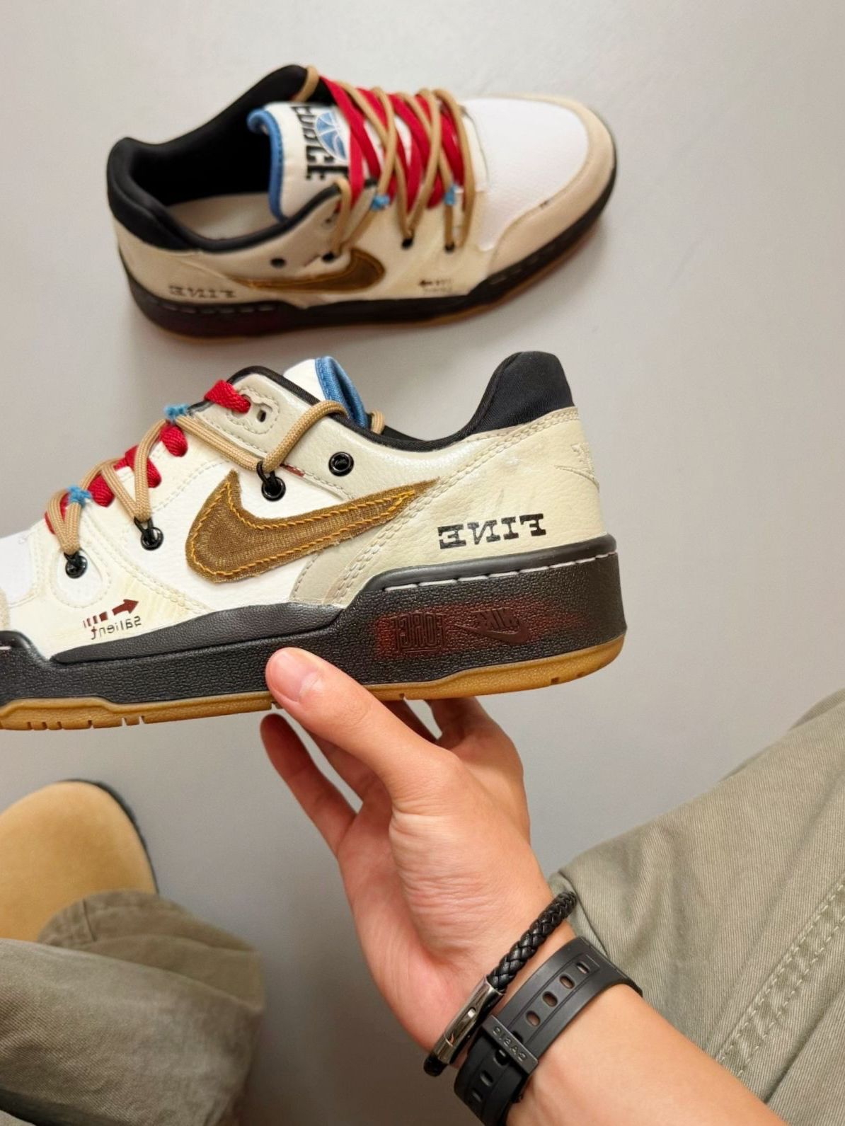 又又来推送宝藏dunk啦!这双dunk不同之前的几双,这双偏向于嘻哈复古风格,设计元素也很独特,增加了涂鸦和贴布设计,鞋带又是双鞋带,更加复古! 平时搭配衣服也不用思考很久,只要随便搭个白t或牛仔裤就已经很酷啦!