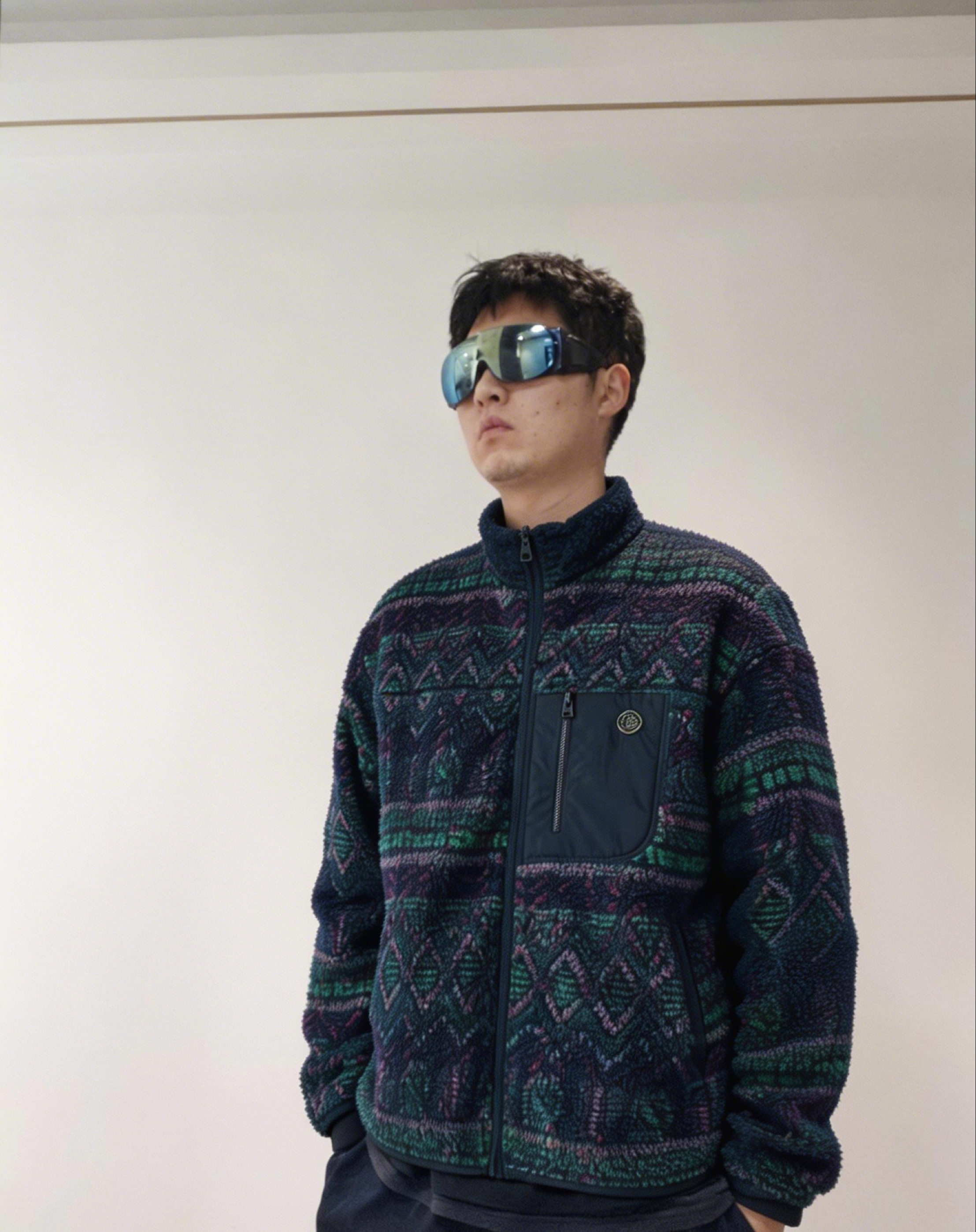 ELEMENT 秋冬 美式复古民族风提花 羊羔绒夹克 男女同款 深蓝