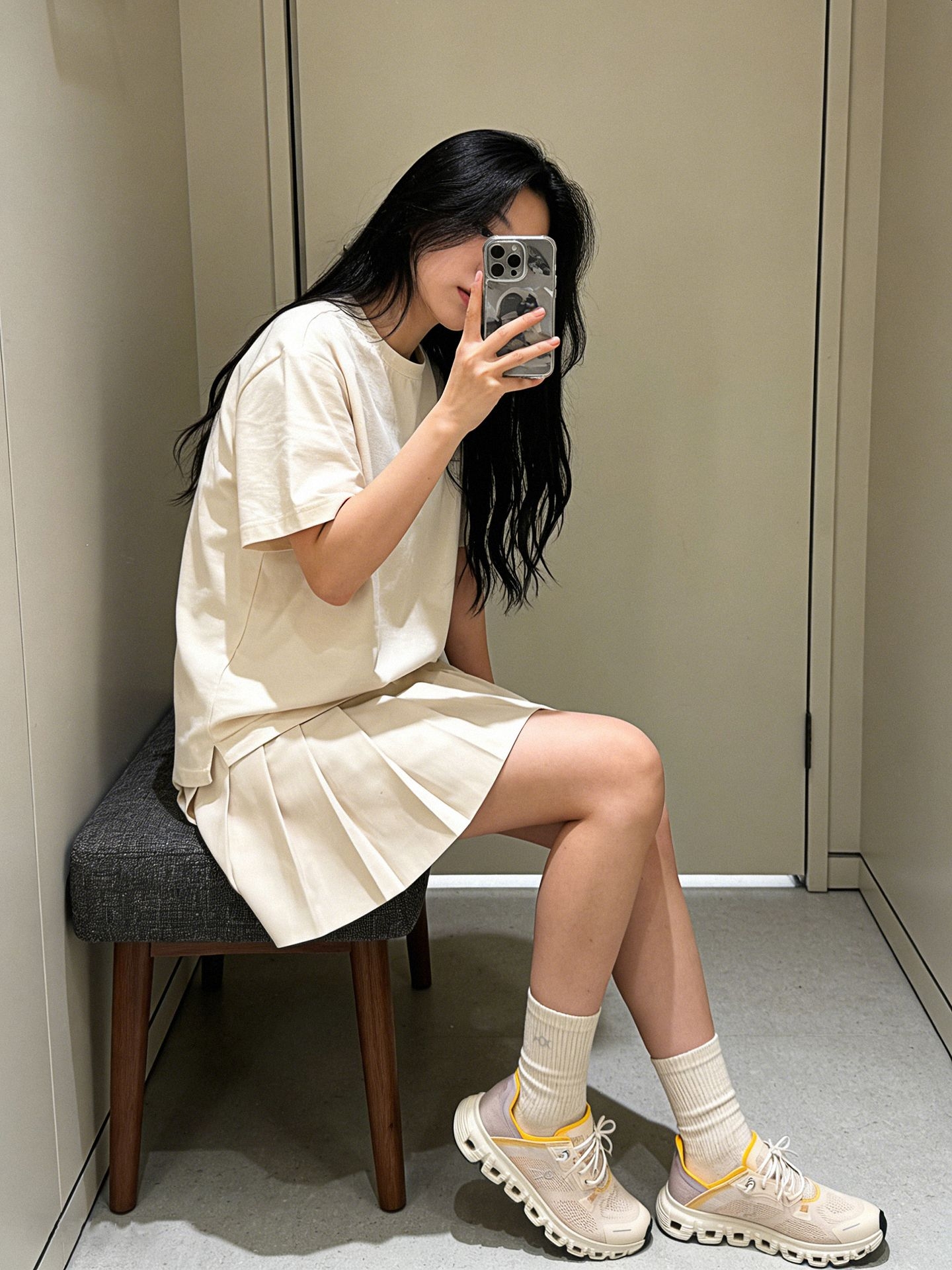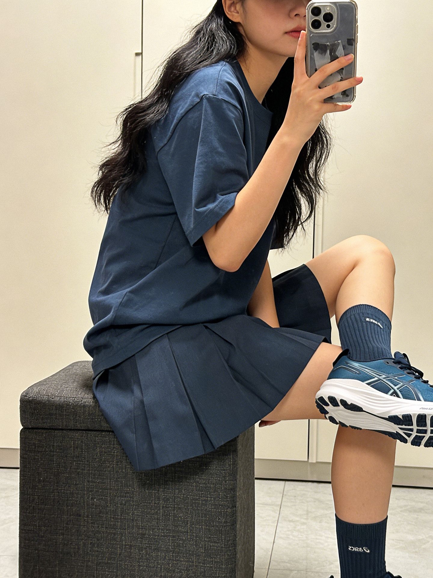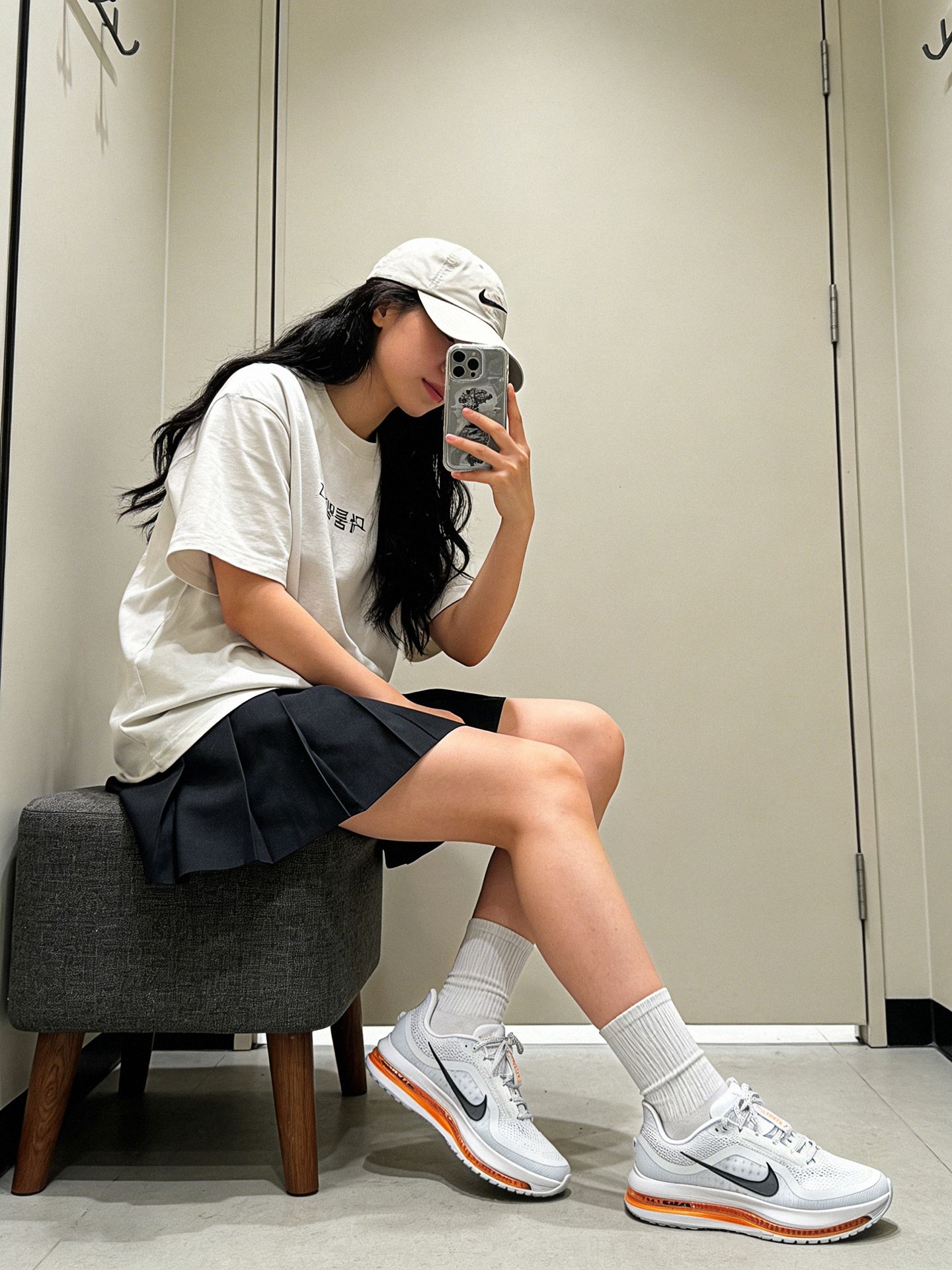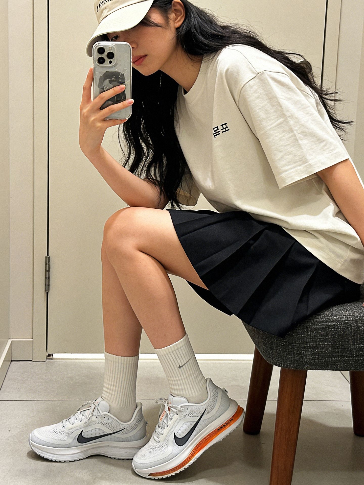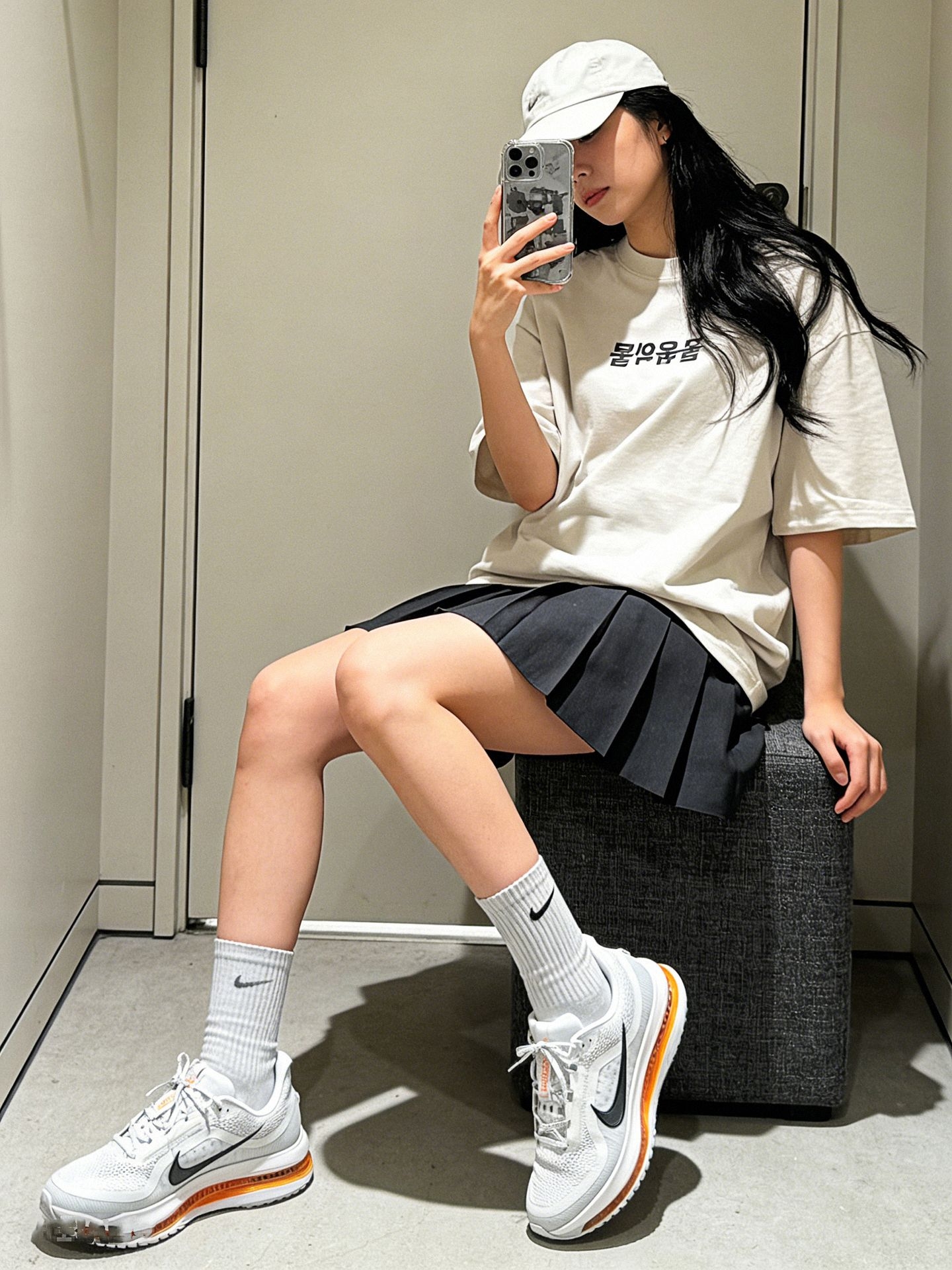 ✨韩系松弛感穿搭分享 谁懂这双 Nike Pegasus 的含金量!网眼鞋面自带呼吸感,上脚透气不闷汗,编织纹理自带精致细节感,清冷灰白调搭配焦糖色气垫,低饱和配色适配度拉满,低调又暗藏亮点。同色系懒人穿搭公式轻松拿捏松弛感,浅灰 T 恤搭配深灰百褶裙,简约又韩系,搭配同色系中筒袜和这双跑鞋,舒适度和时髦度双双在线🤍
