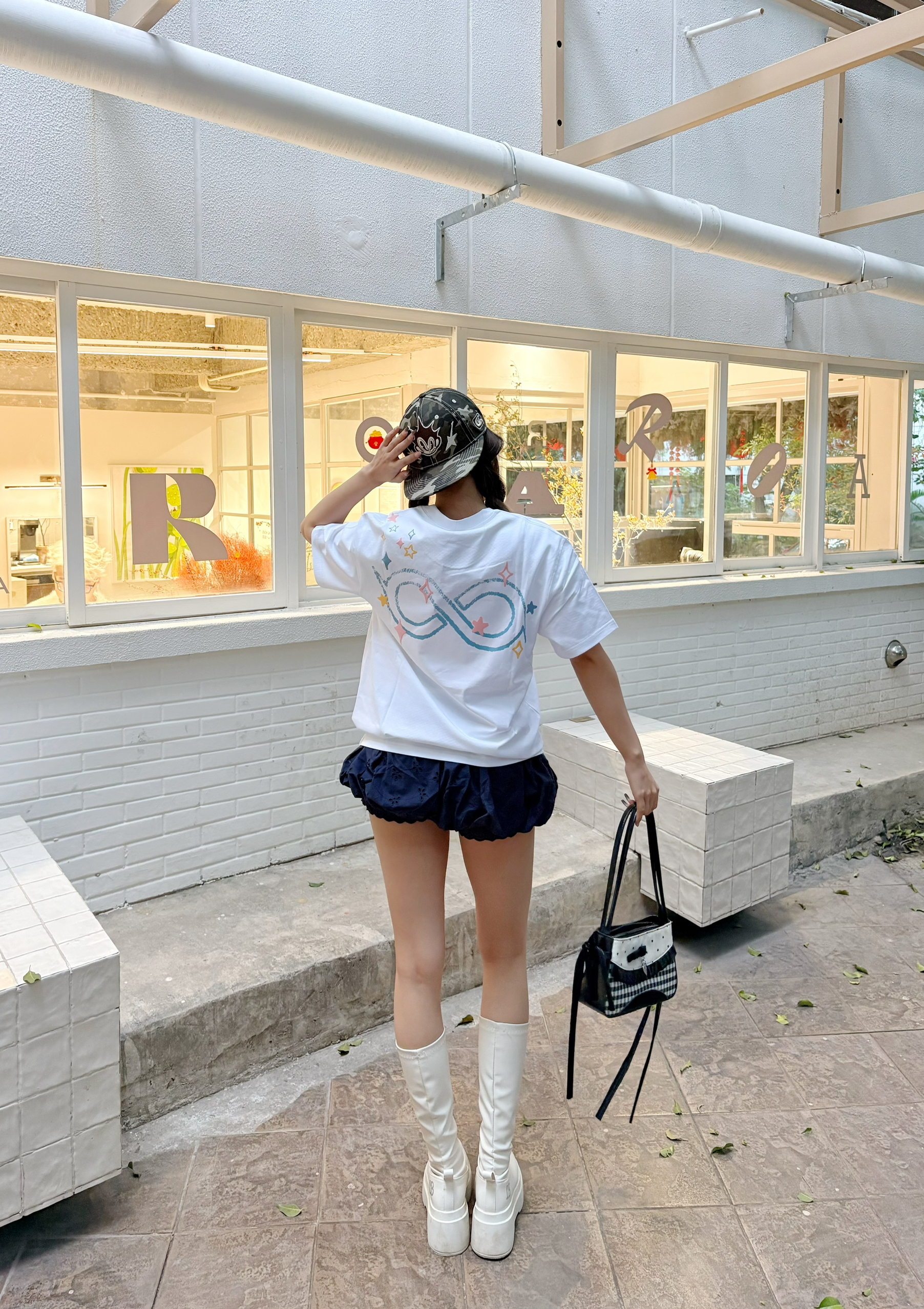这件白T真的是我的近期心头好✨ 正面的字母印花和背后的无限符号图案,自带美式复古滤镜,随便搭都很出片。✅ 我用它配了黑色蓬蓬裙和白色厚底靴,再反戴棒球帽🎀 面料软软糯糯的,夏天穿也很舒服,单穿或者叠穿都很合适☀️ 我165/96 s码