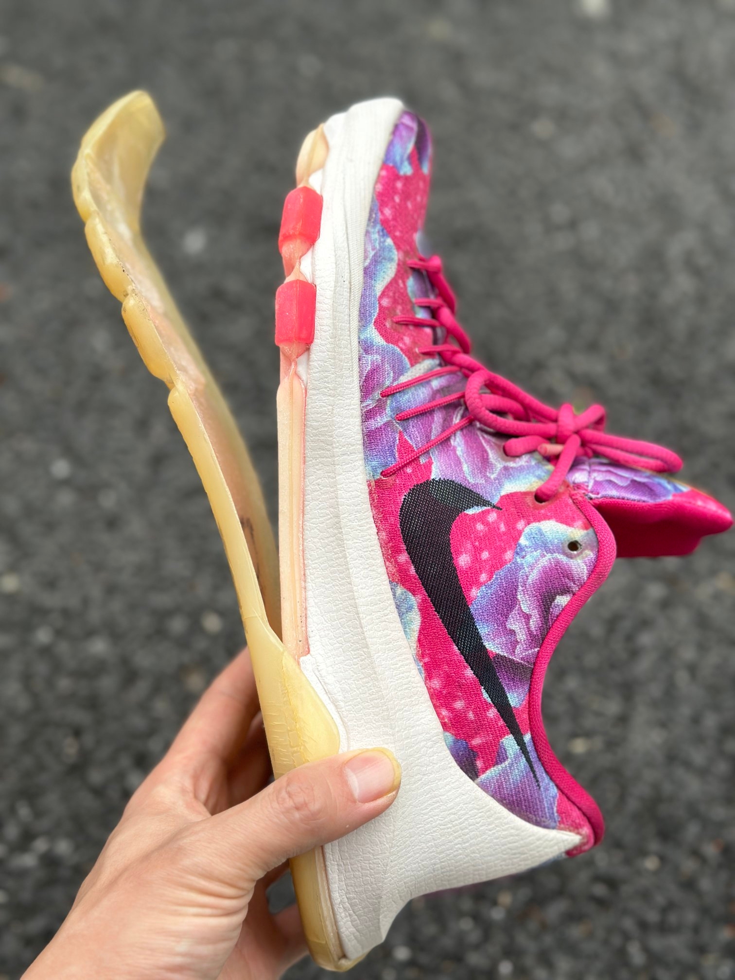 今年,应该说去年2025年刚好出到KD18,这双KD8乳腺癌满打满算也10年了。看着还好,结果才刚走到楼下。就变成开口笑了。有一说一,十年前的气垫是真实在啊。看图四,这才是真正的全掌气垫好啊[狗头_blue][狗头_blue][狗头_blue] #情人节MVP战靴 #上脚即高光 #球鞋越粉打球越狠 #球场浪漫战靴 #214情人节送男朋友礼物