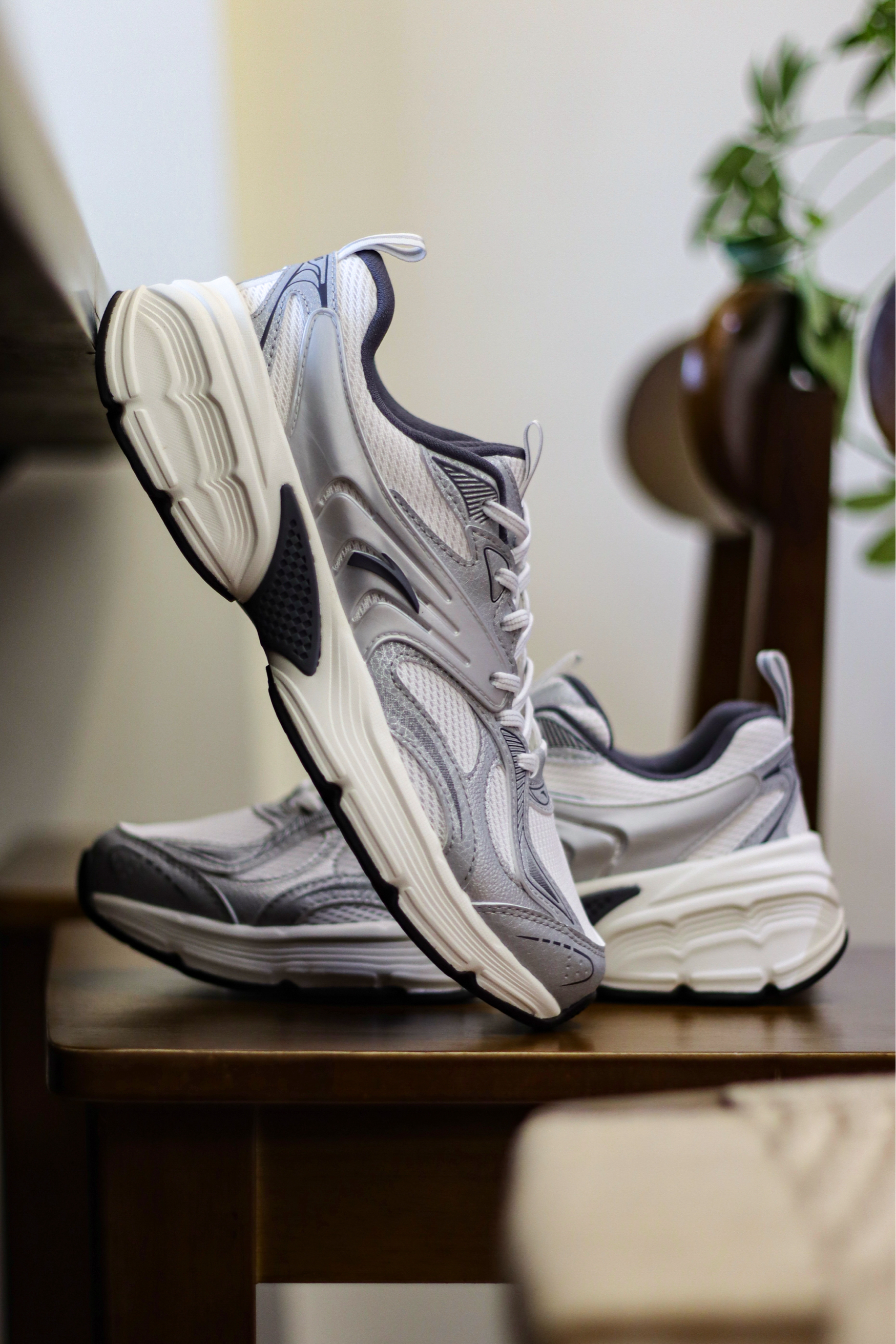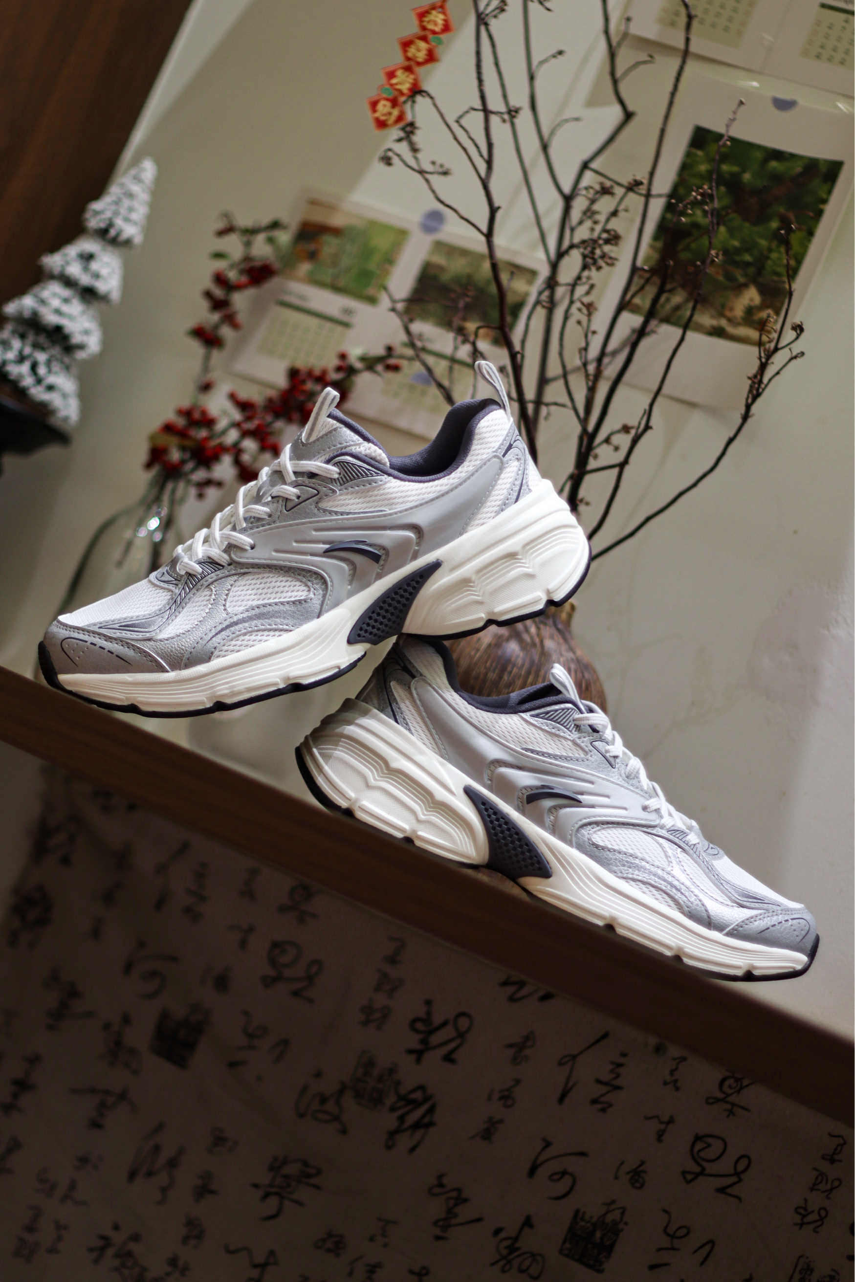 复古跑鞋挖掘机我又来了!这次要分享的是安踏AT959~ 还是逃不过白银灰的配色,满满的复古Y2K氛围感!日常也非常好搭配衣服~ 网面拼接皮革鞋面,上脚透气舒适~脚感软硬适中,适合长时间行走!而且很轻便,开春穿它通勤出街&户外踏青都很合适啊! 颜值和性价比都很高,还能兼顾多场景的穿搭需求~新年送自己&送人都是不错的选择!