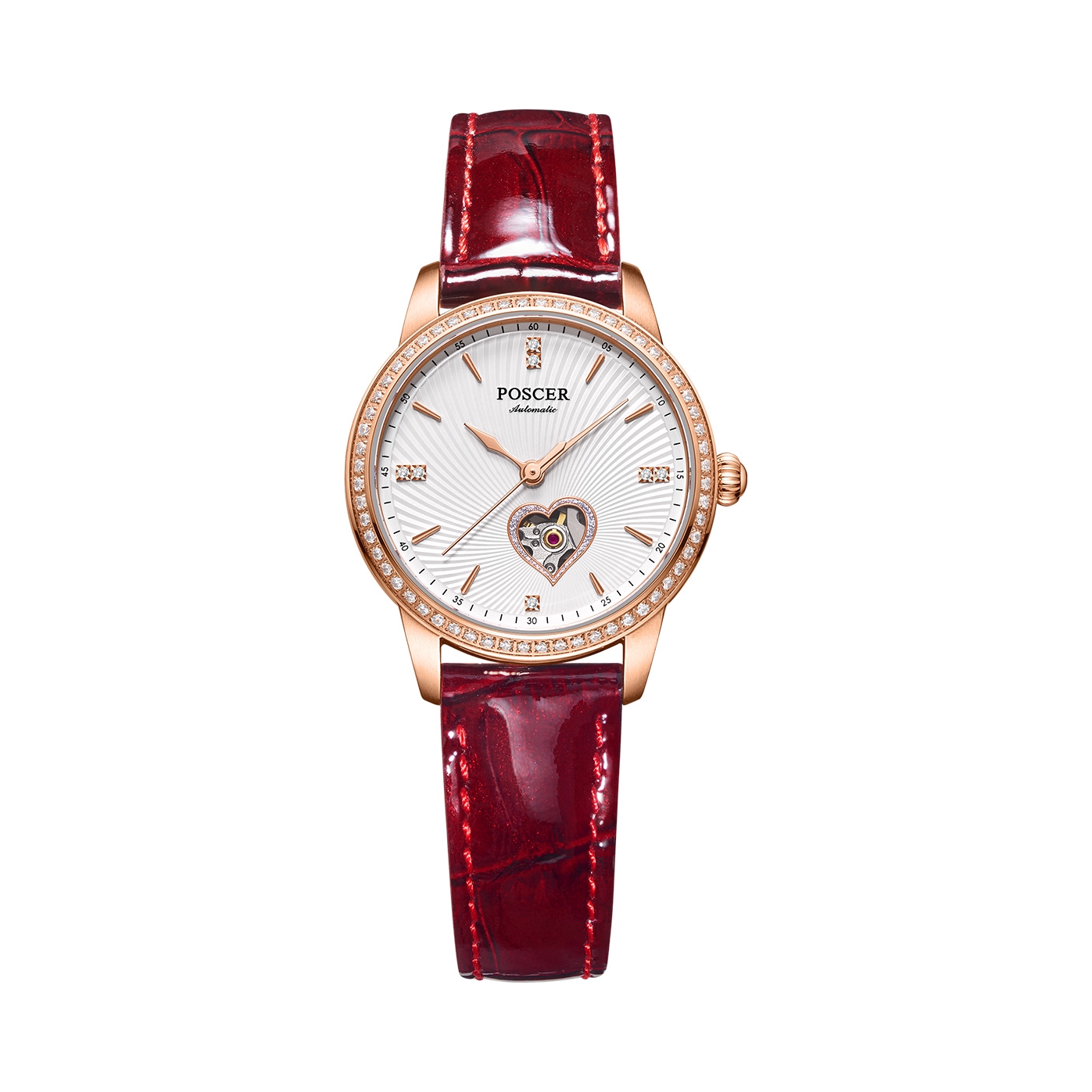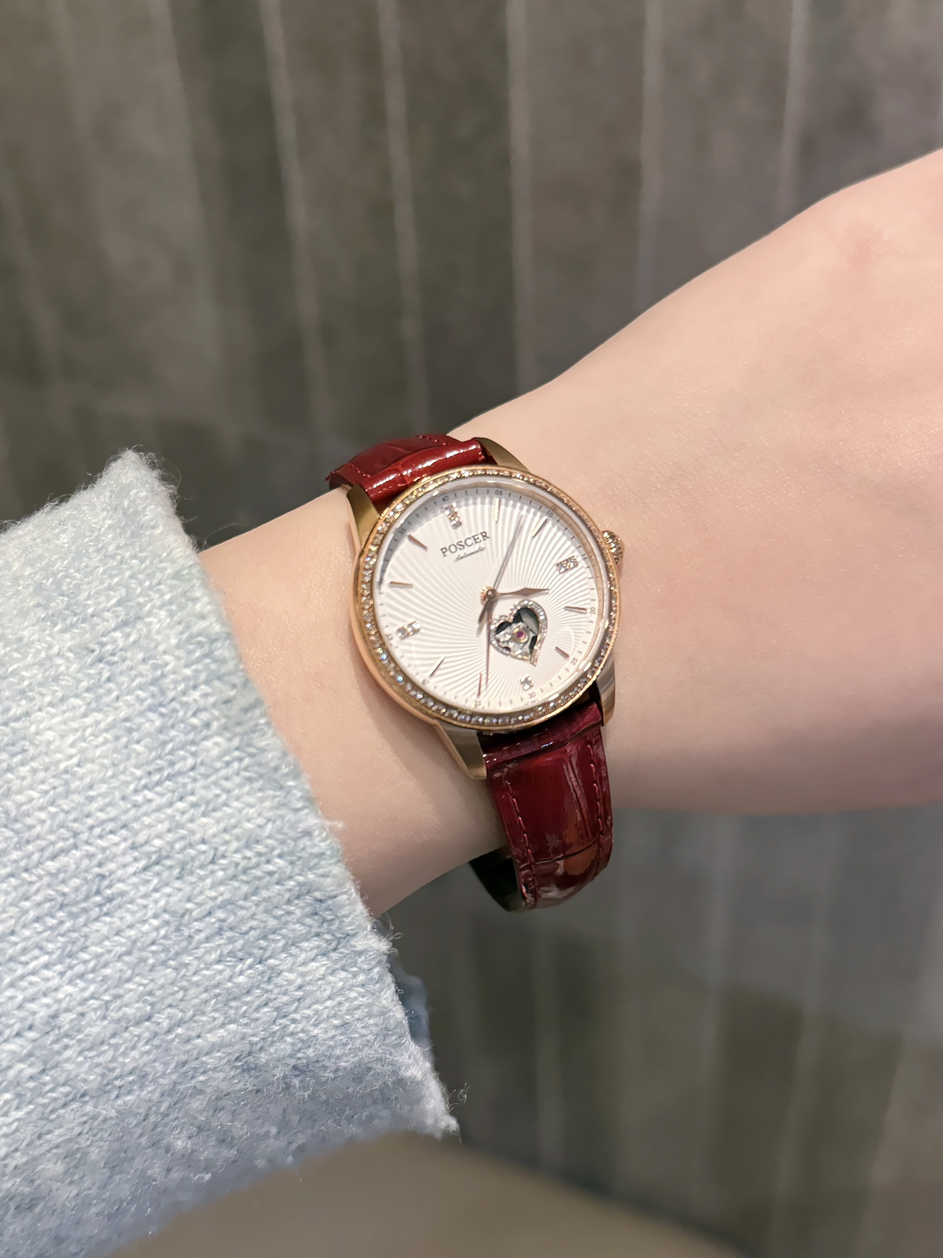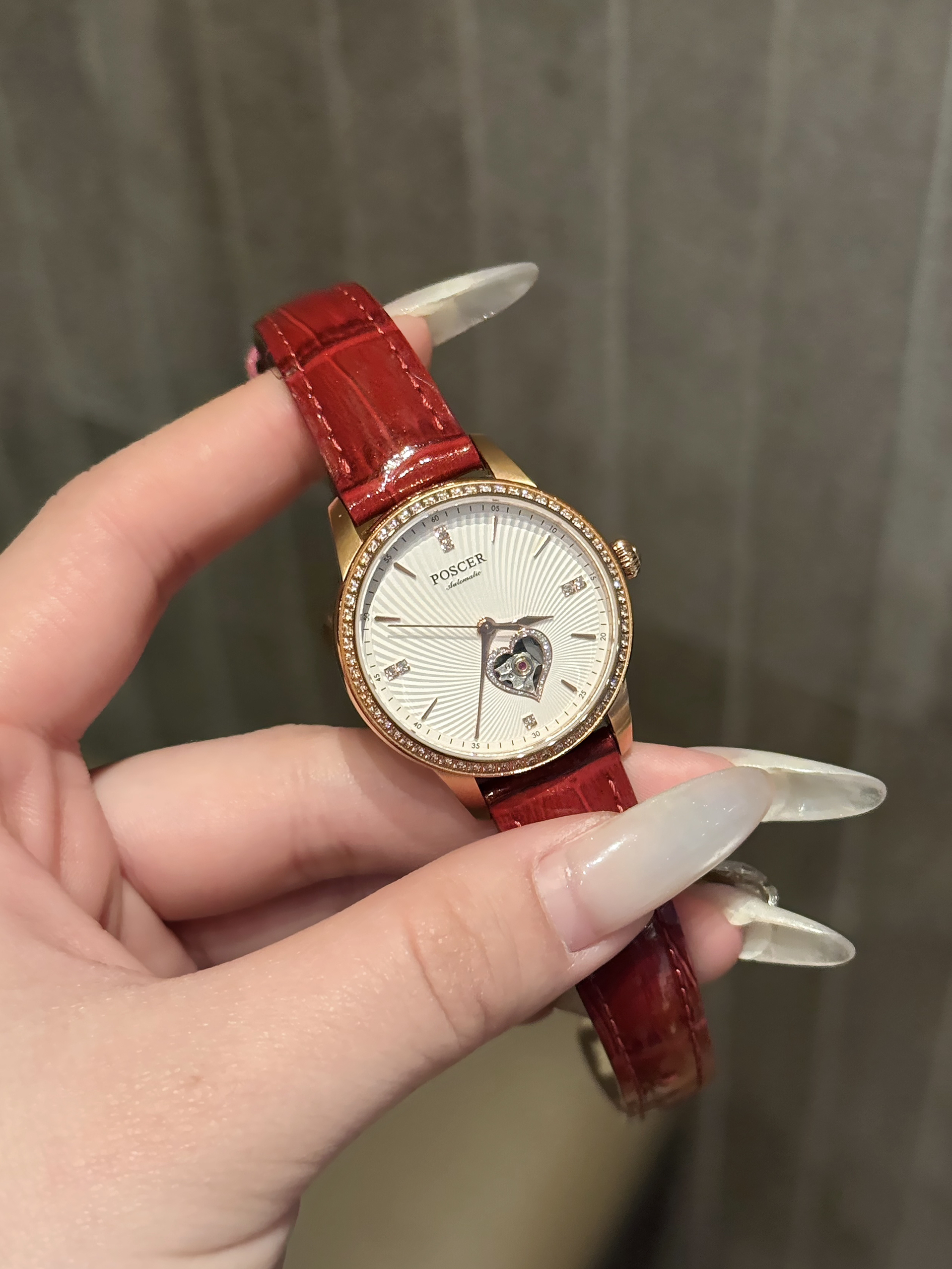本篇笔记关联了Poscer/宝时捷 防水镶钻轻奢爱心镂空机械女士手表 玫盘白面皮带 51022L等商品,为用户提供真实的使用体验和购买参考。