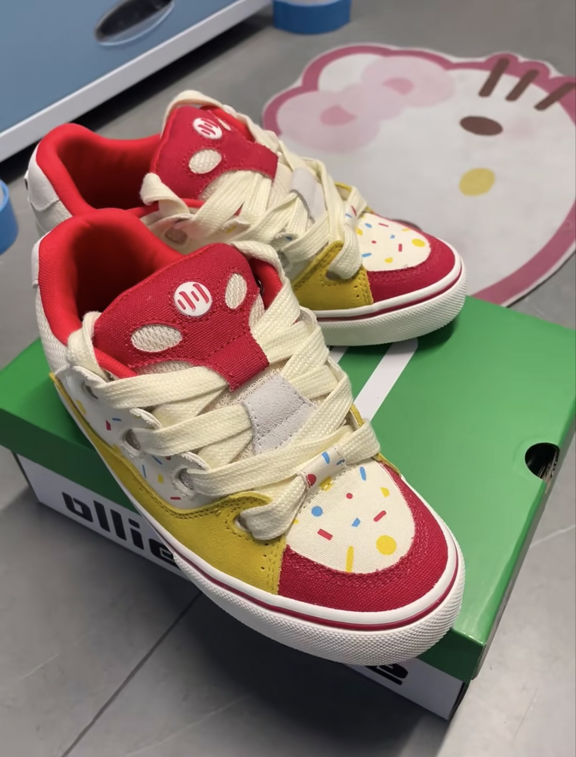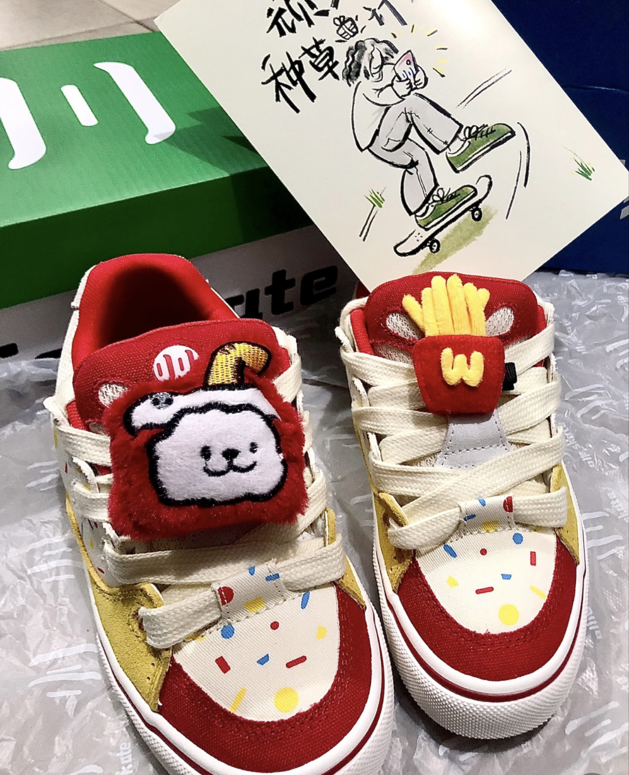 顽刻新出的这双芝士薯条配色的鞋子太太太好看了吧!!!好可爱的感觉,看官网图就是被配色吸引住的!这不就是我们stp一定会拿下的鞋子吗🥺而且还挺舒服的,这个鞋子配色鲜艳,很好搭配衣服,比较百搭!