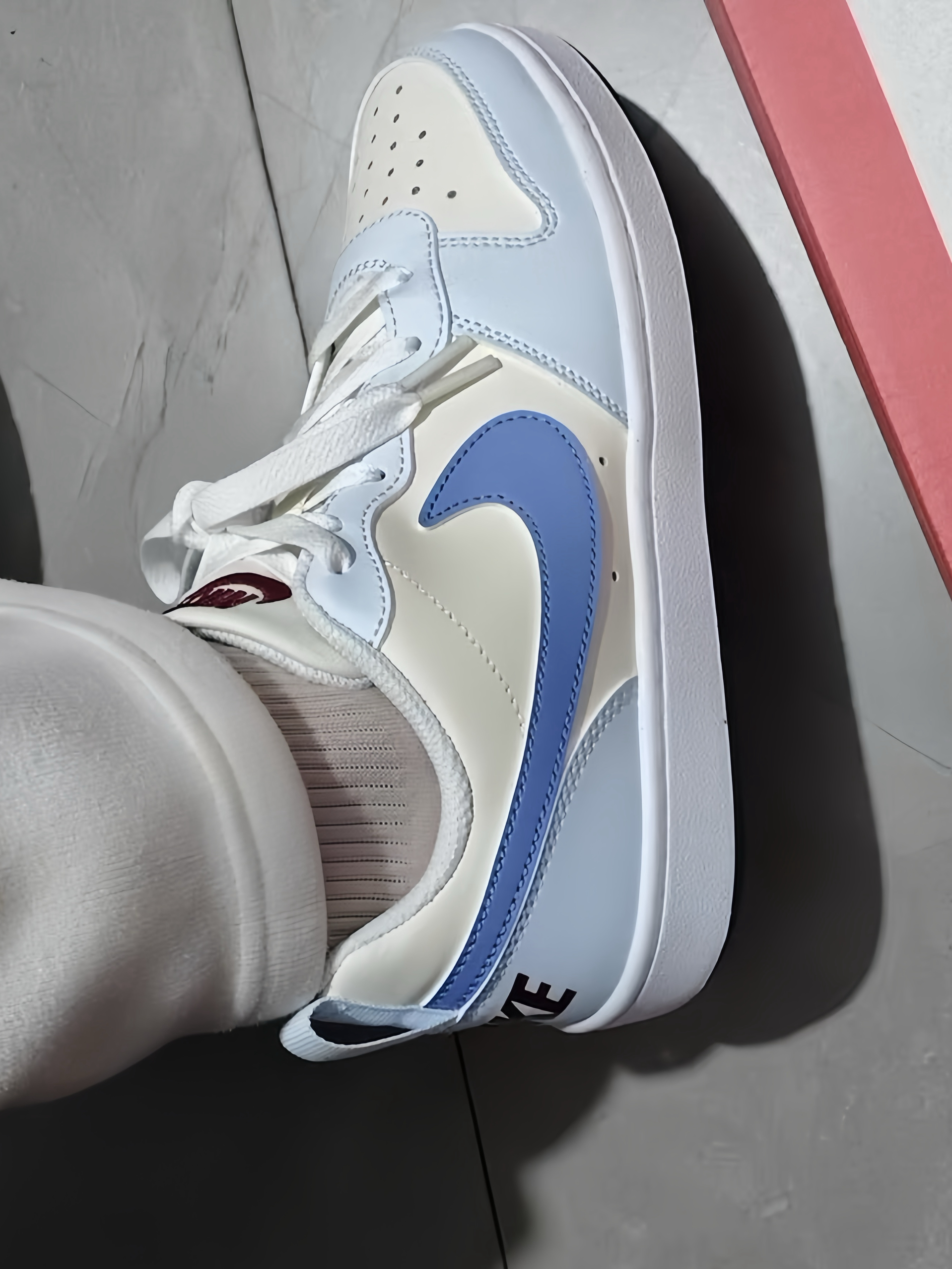 谁懂啊家人们!刚拆的这双Nike Court Borough,直接把我拿捏住了! 奶fufu的米白+清透的浅蓝拼接,就像把春天的奶油冰淇淋穿在脚上,温柔又干净。低帮的设计,配牛仔裤、运动裤、百褶裙都巨搭,校园感直接拉满。 上脚也很舒服,鞋底软软的,暴走一天都不磨脚。这个配色真的越看越爱,清新又不挑人,春天的氛围感直接焊在脚上了!