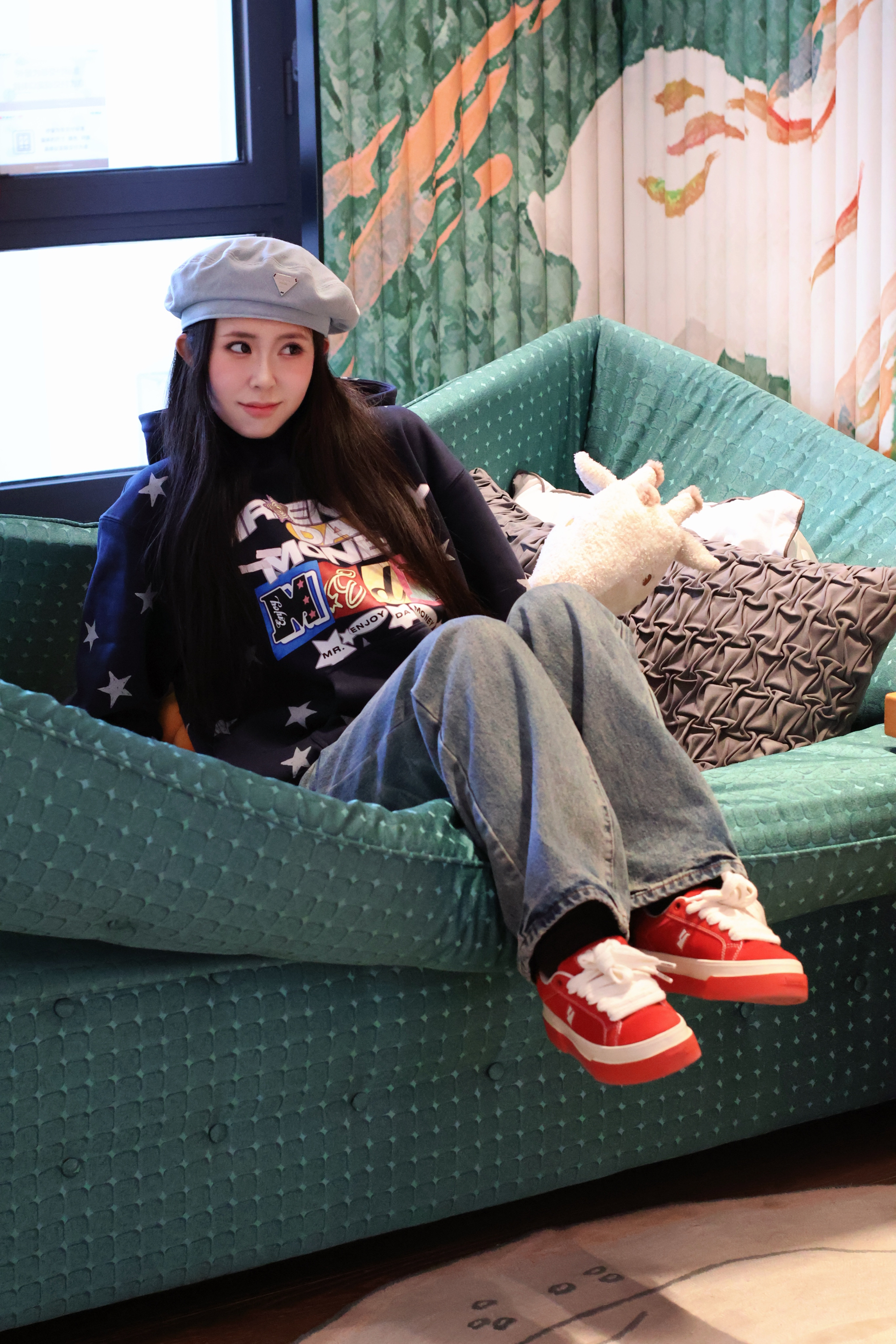 谁懂啊!马年本命红必须安排上! 这双红鞋真的是整身穿搭的灵魂✨ 藏青色星星卫衣低调又有细节,搭配宽松牛仔裤慵懒随性。 全靠这双小红鞋打破沉闷,瞬间点亮全身,显白度直接拉满! 新年穿红,寓意“红”运当头,自在出街,走路都带风~