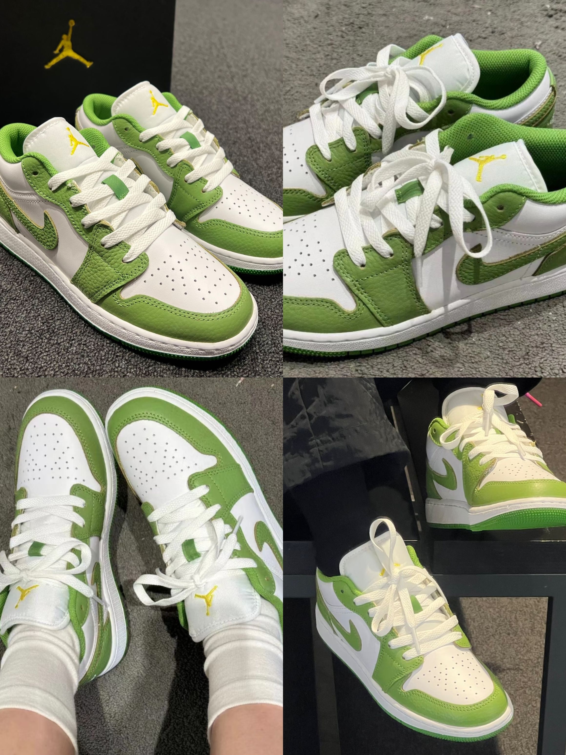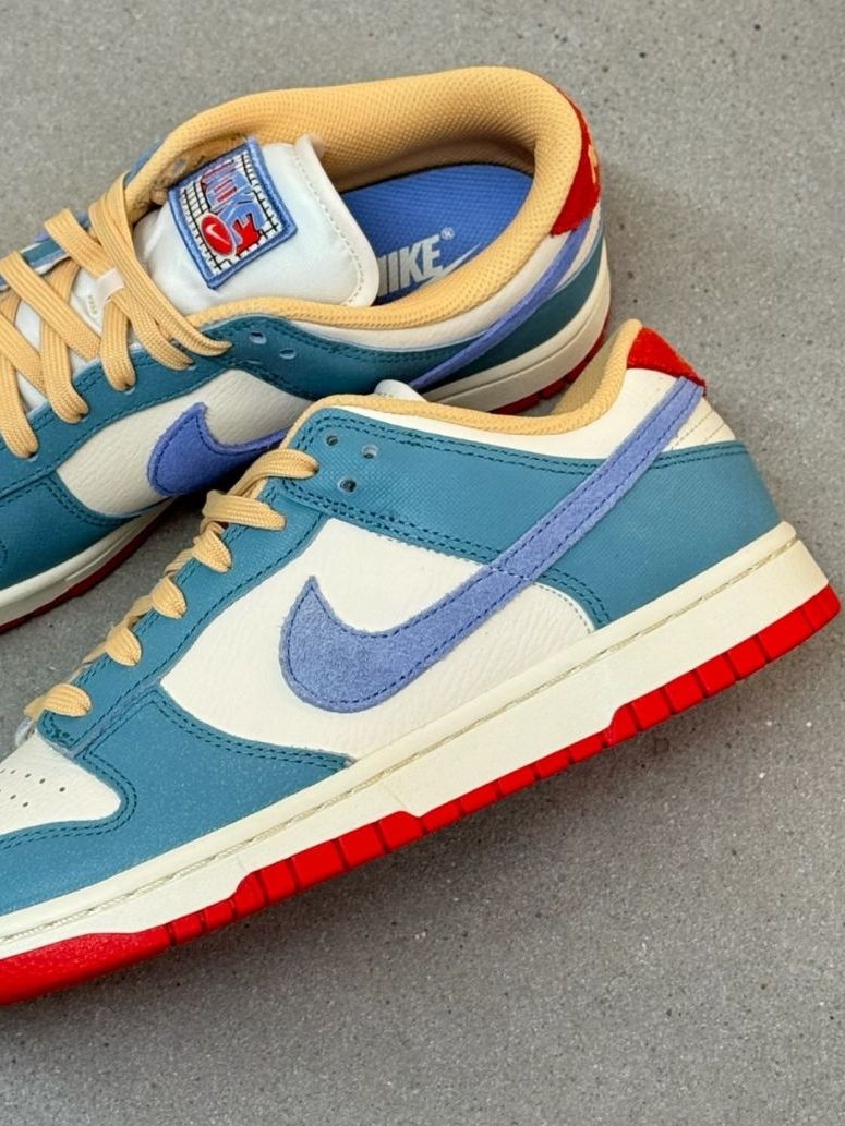 近期的两双心头好,配色都很戳日常穿搭,分享给同样爱球鞋的朋友。 第一双AJ1的青提绿太适合春天了,白绿撞色干净又清爽,低帮版型不挑裤型,牛仔裤、运动裤随便搭都出片,皮质手感也很舒服。 另一双Dunk的复古撞色很有质感,蓝白为主调,搭配浅紫勾子和红色外底,细节感拉满。脚感偏舒适,日常通勤走路也不累,复古风穿搭直接拿捏✨。 都是颜值和实用性在线的款,没有花里胡哨的设计,日常穿完全不突兀。