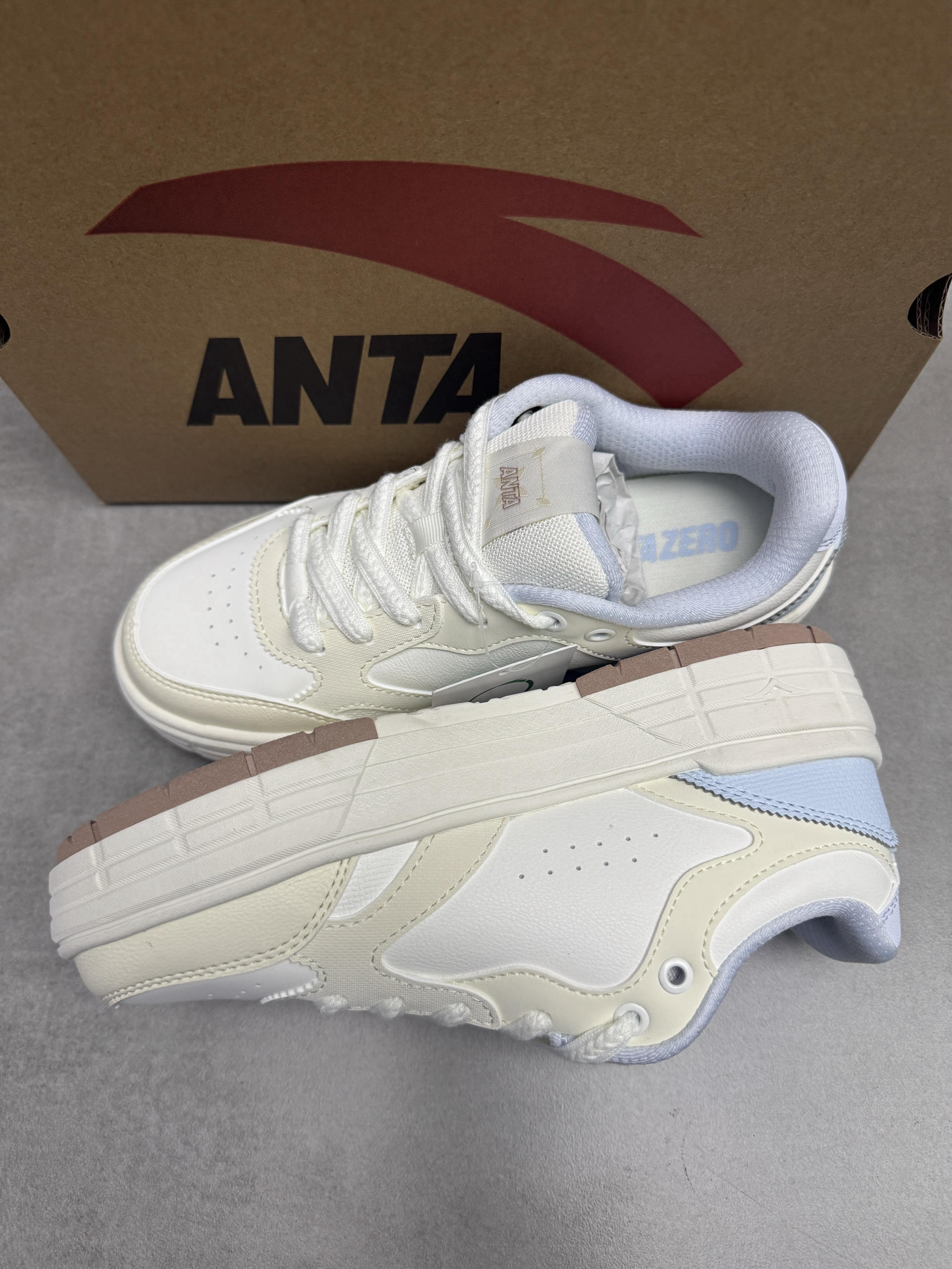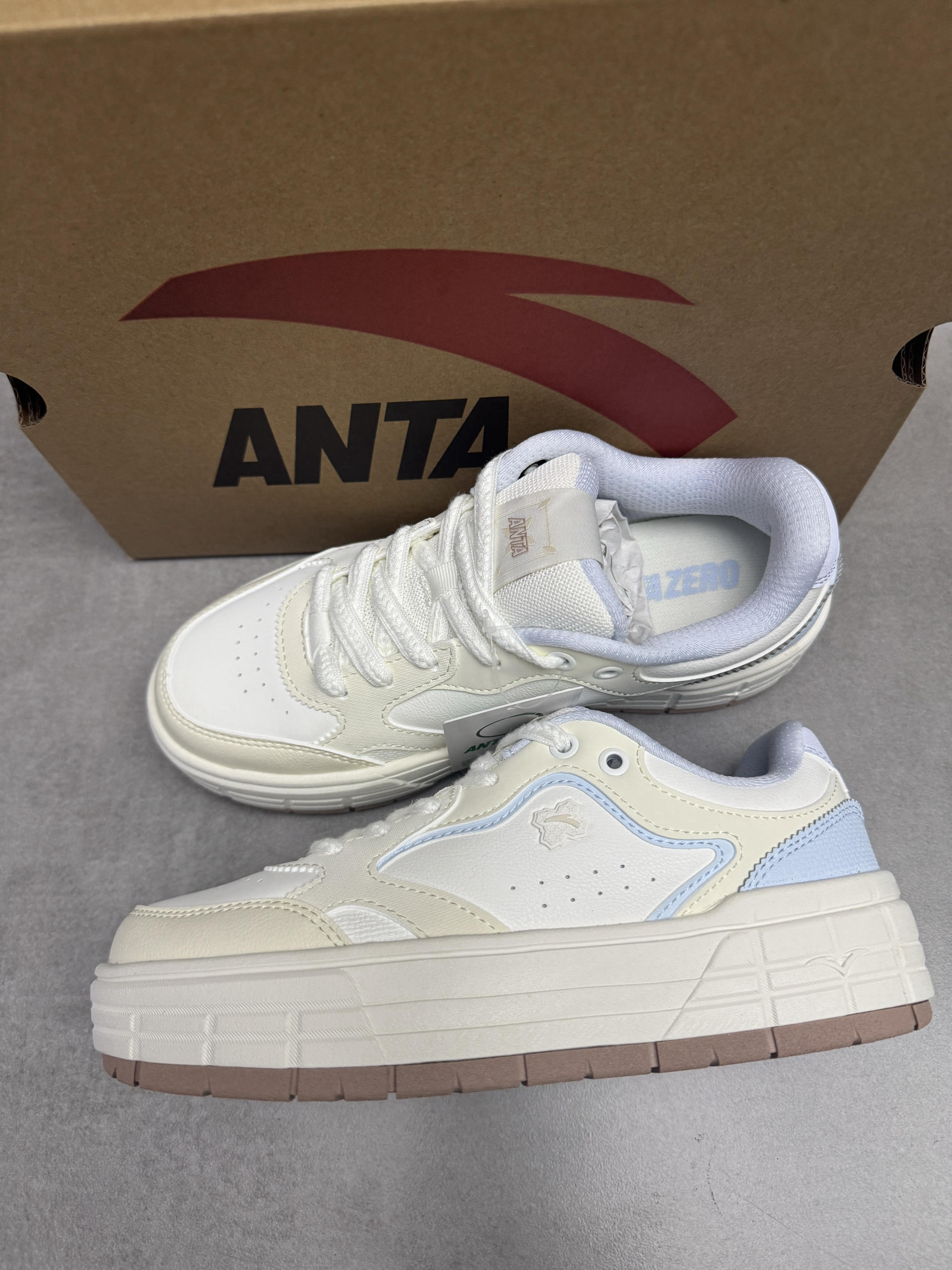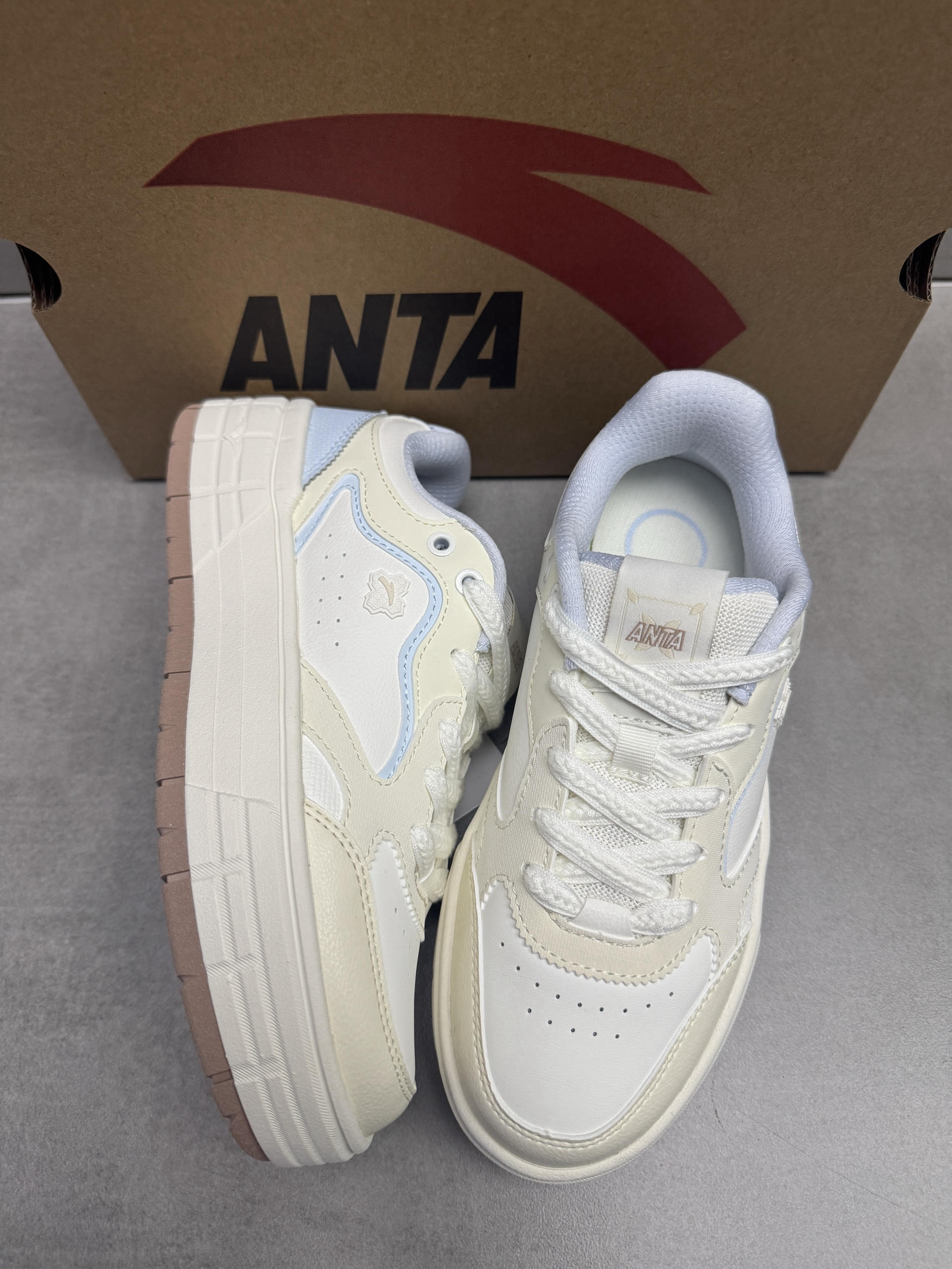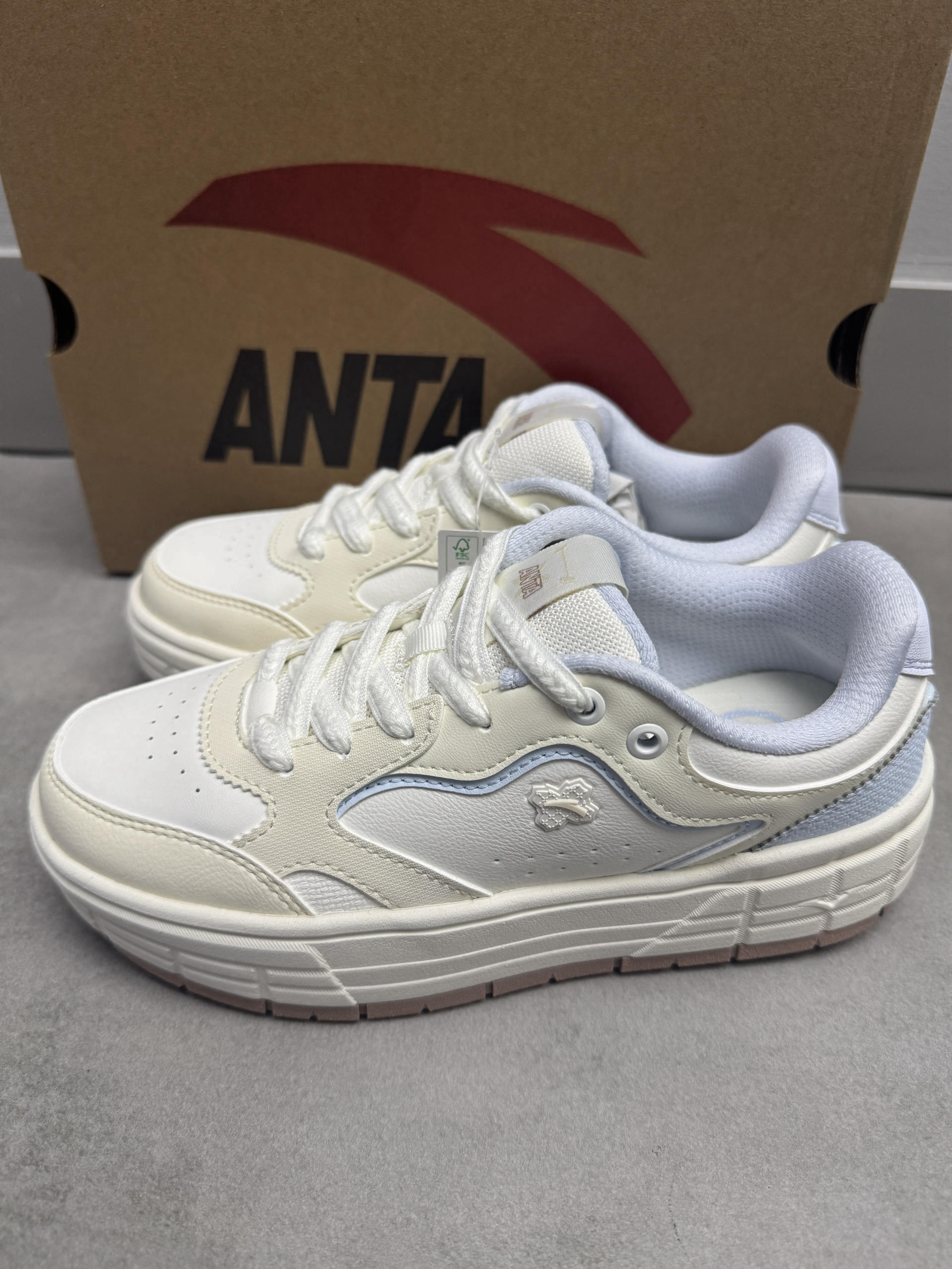 安踏的这双皎月板鞋真的很难不爱哦! 配色鞋型看上去就很可爱,鞋子很轻盈,上脚舒服贴脚,还很好搭配衣服裤子! 我先入手了👍